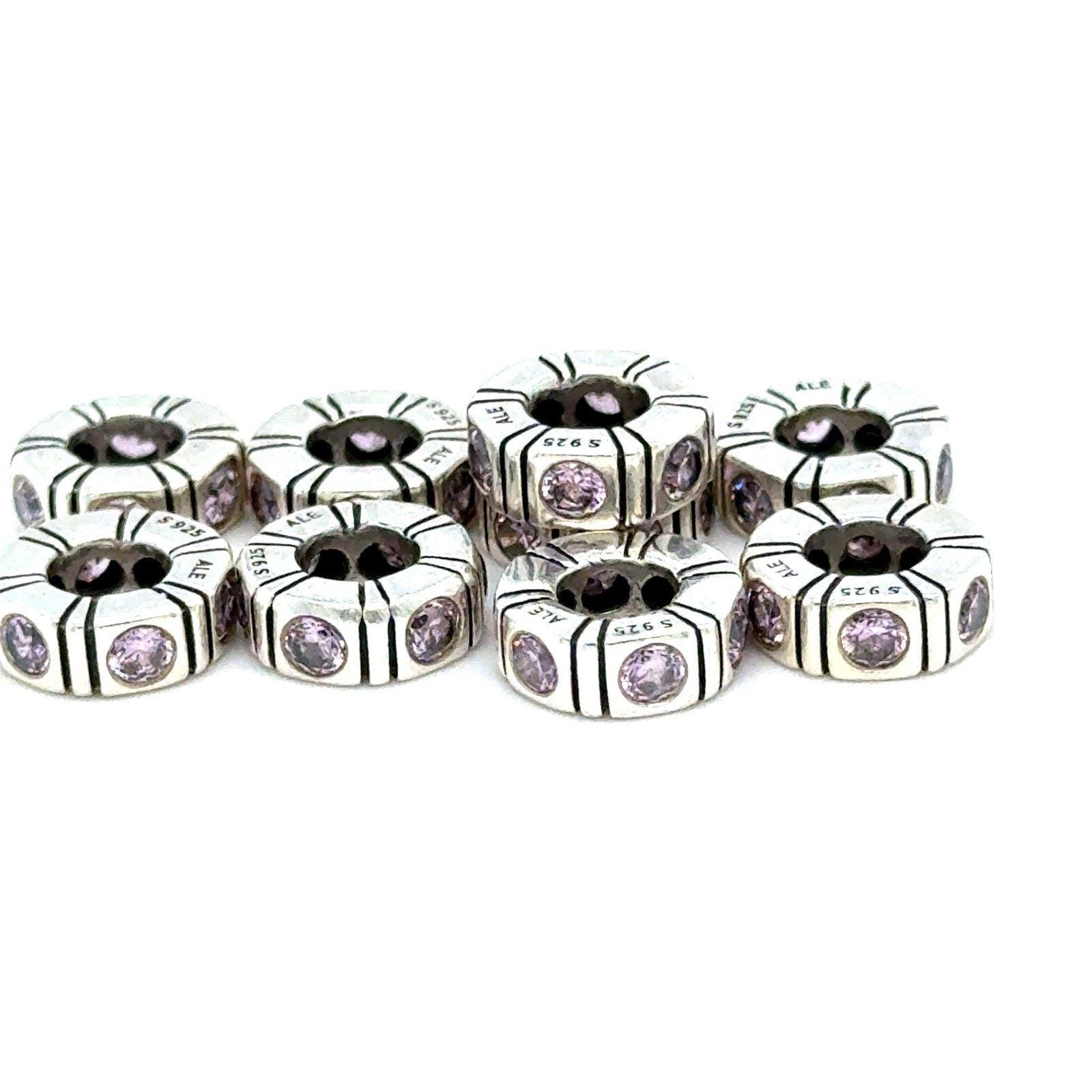 Silver and Authentic Pandora Pink Cz Spacer Charm.