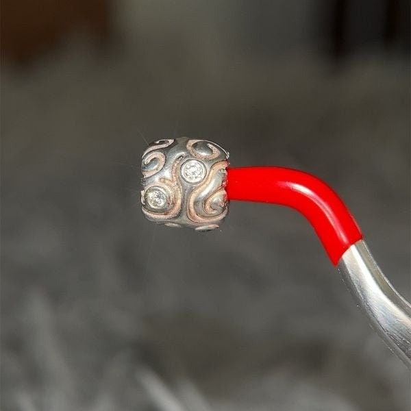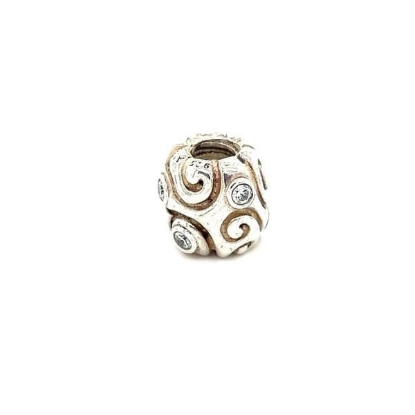 Silver and Authentic Pandora Scroll Clear Cz Charm.