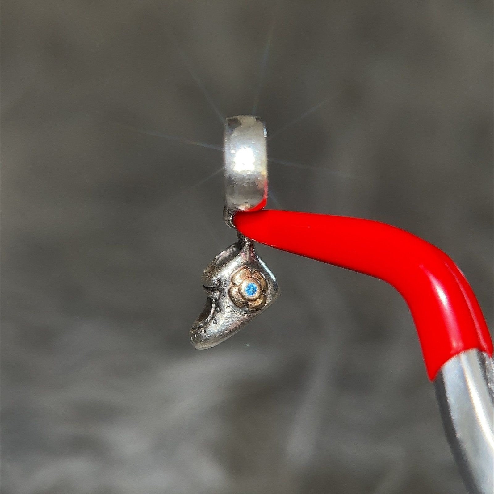 Authentic Pandora Two-Tone Blue Cz Baby Shoe Dangle Charm. No Pandora Pouch or Box.