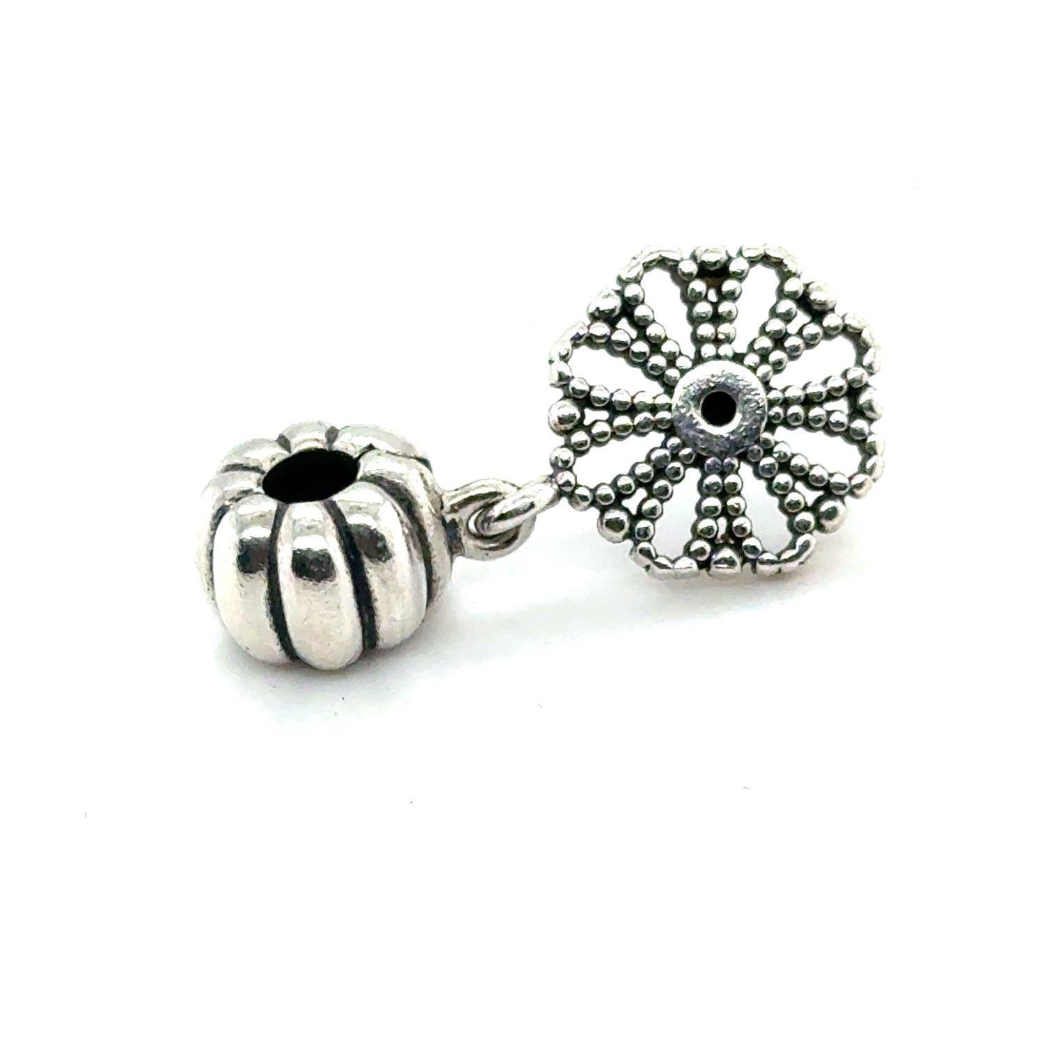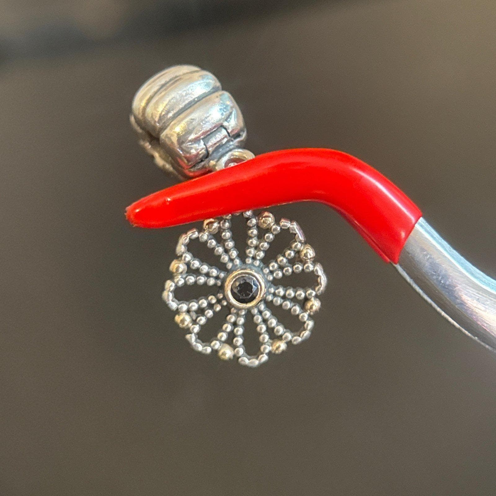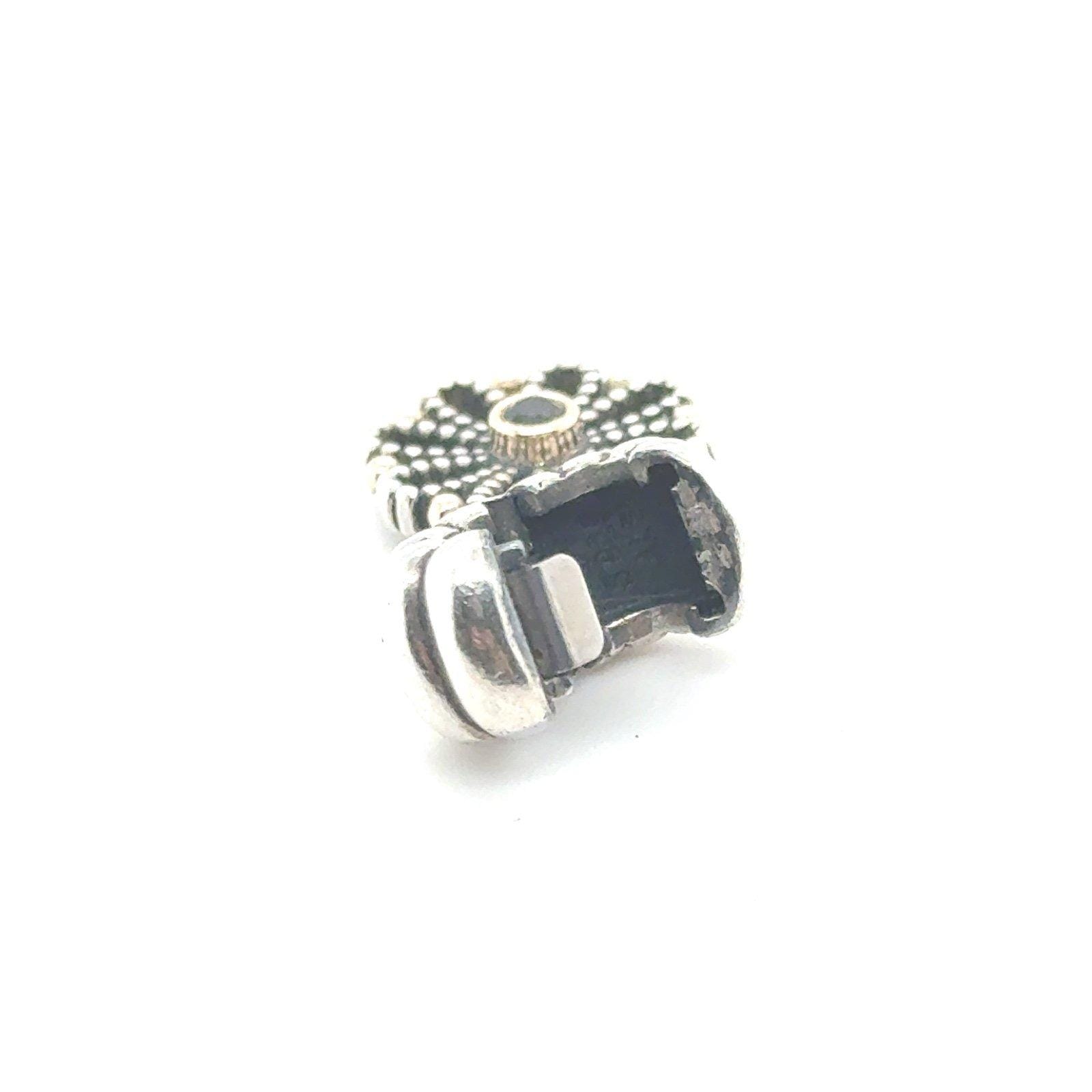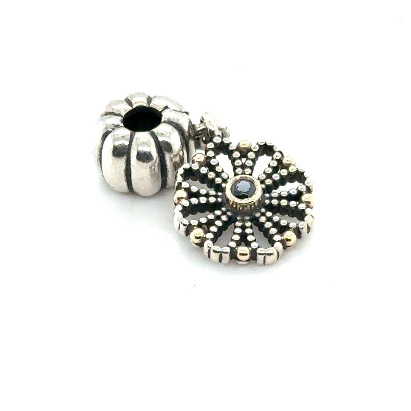 Authentic Pandora Two Tone Onyx Flower Marigold Clip Dangle Charm