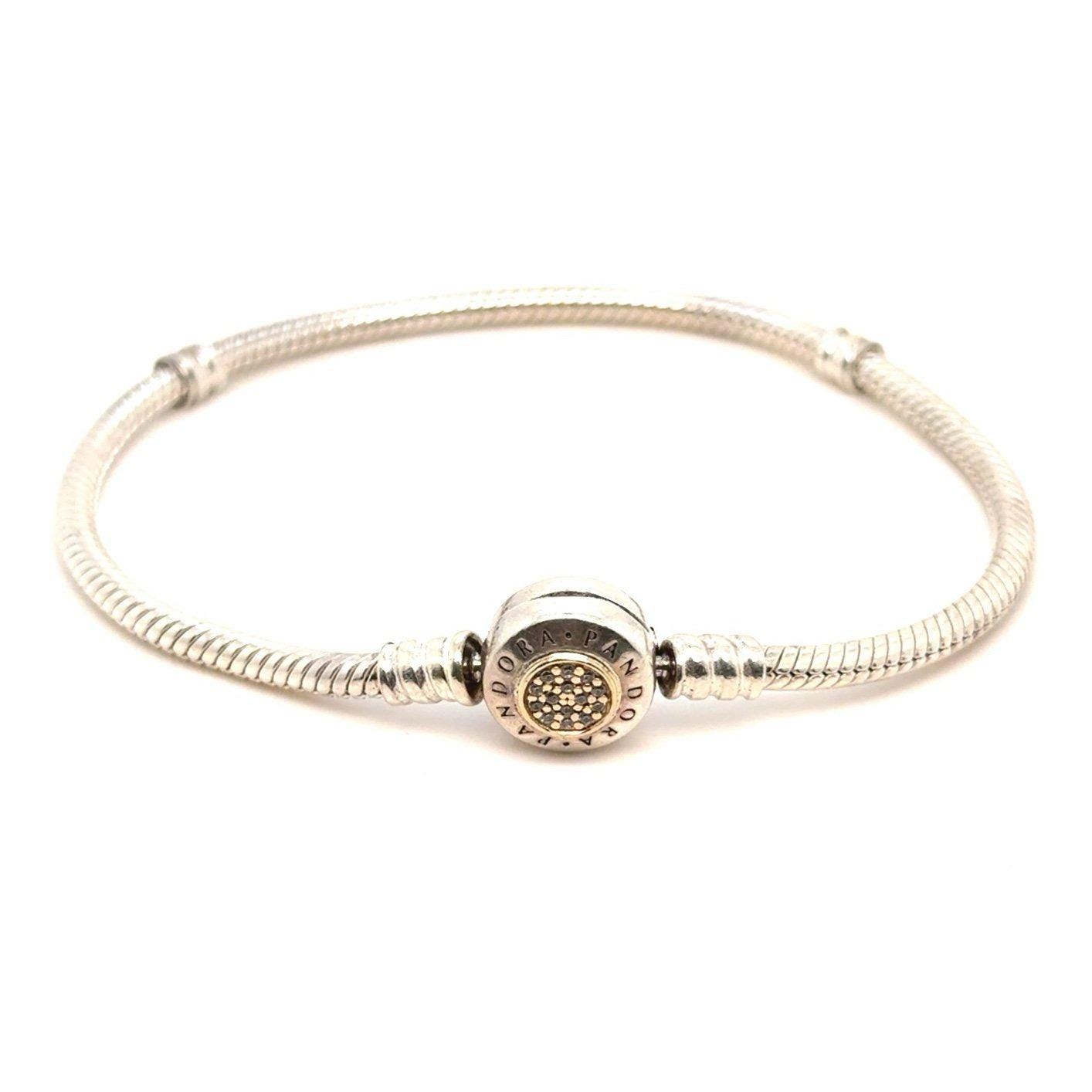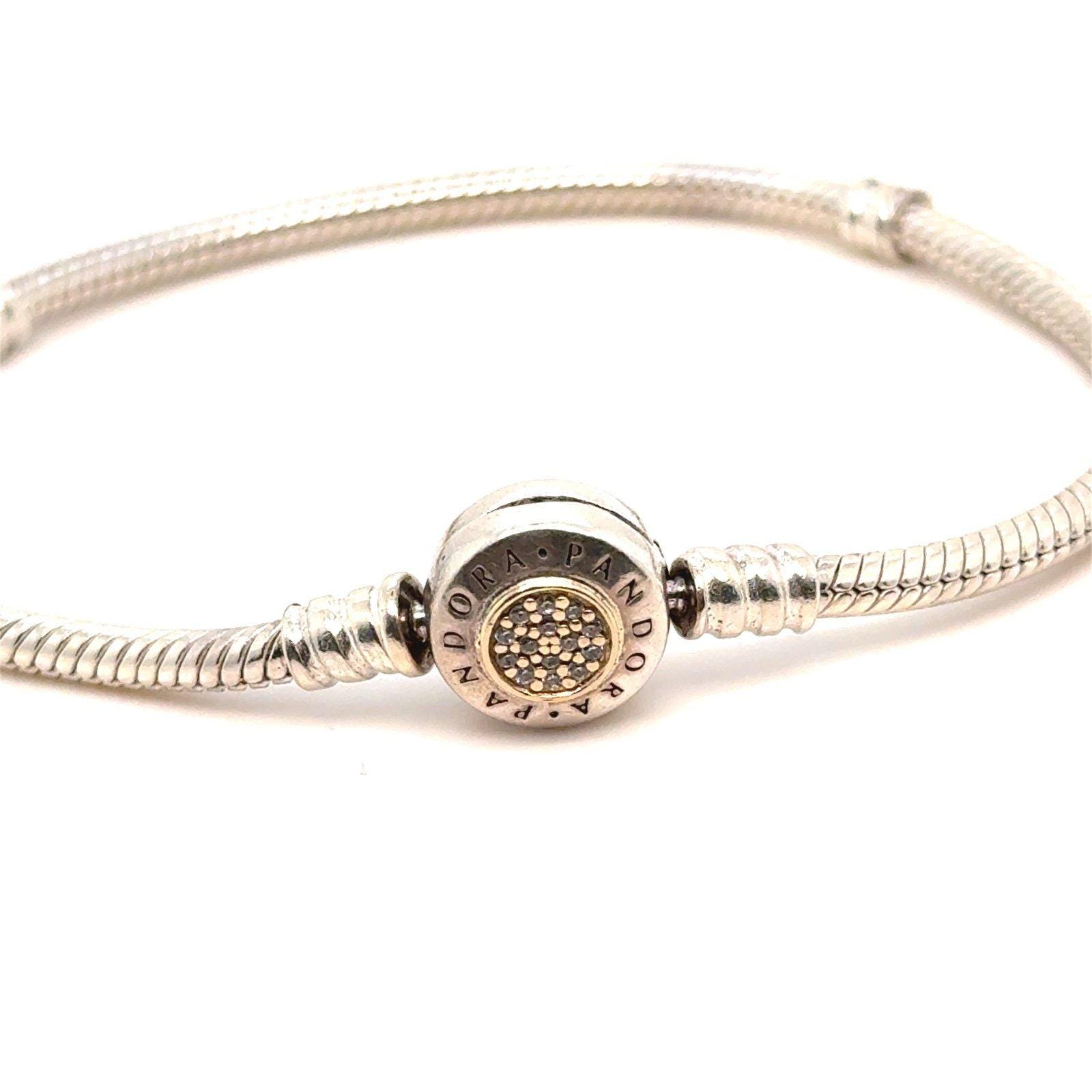 Authentic Pandora Two Tone Silver and 14k Gold Pave Cz Bracelet.