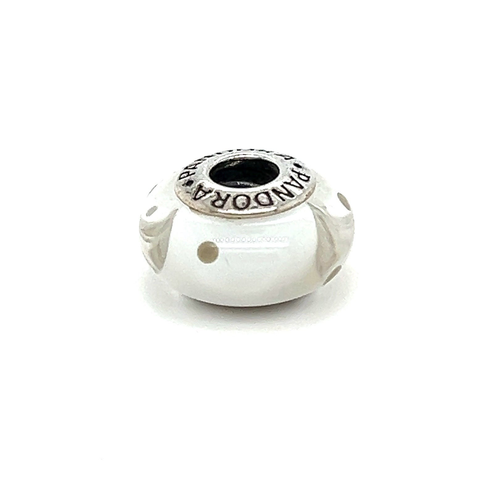 Authentic Pandora White Polka Dot Murano Glass Charm.