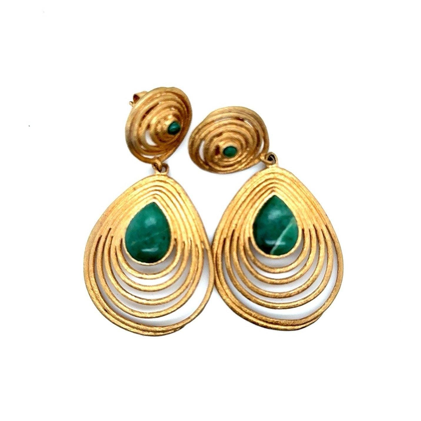 Be the first to review “Pear Shaped Green Stone Matte Gold Earrings”