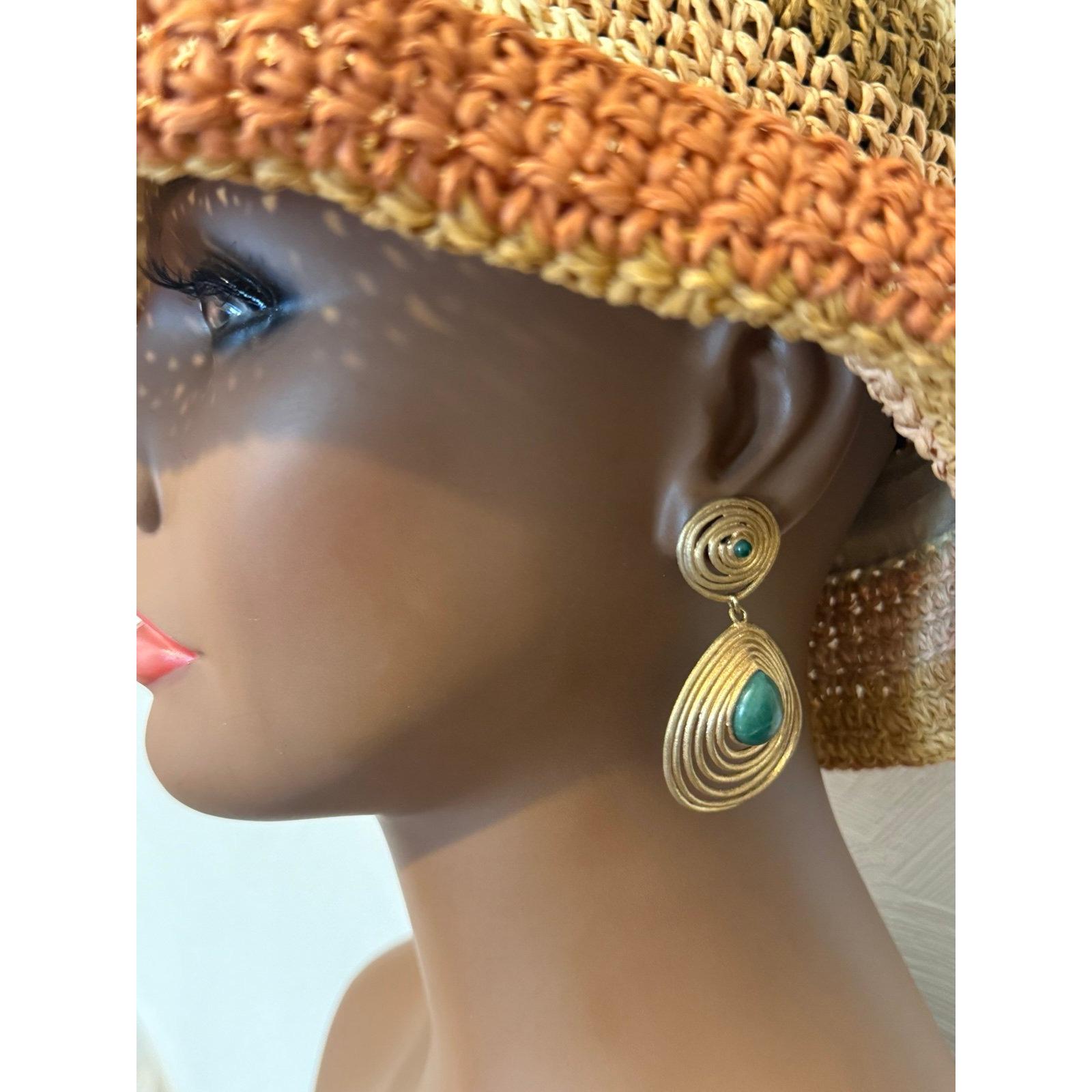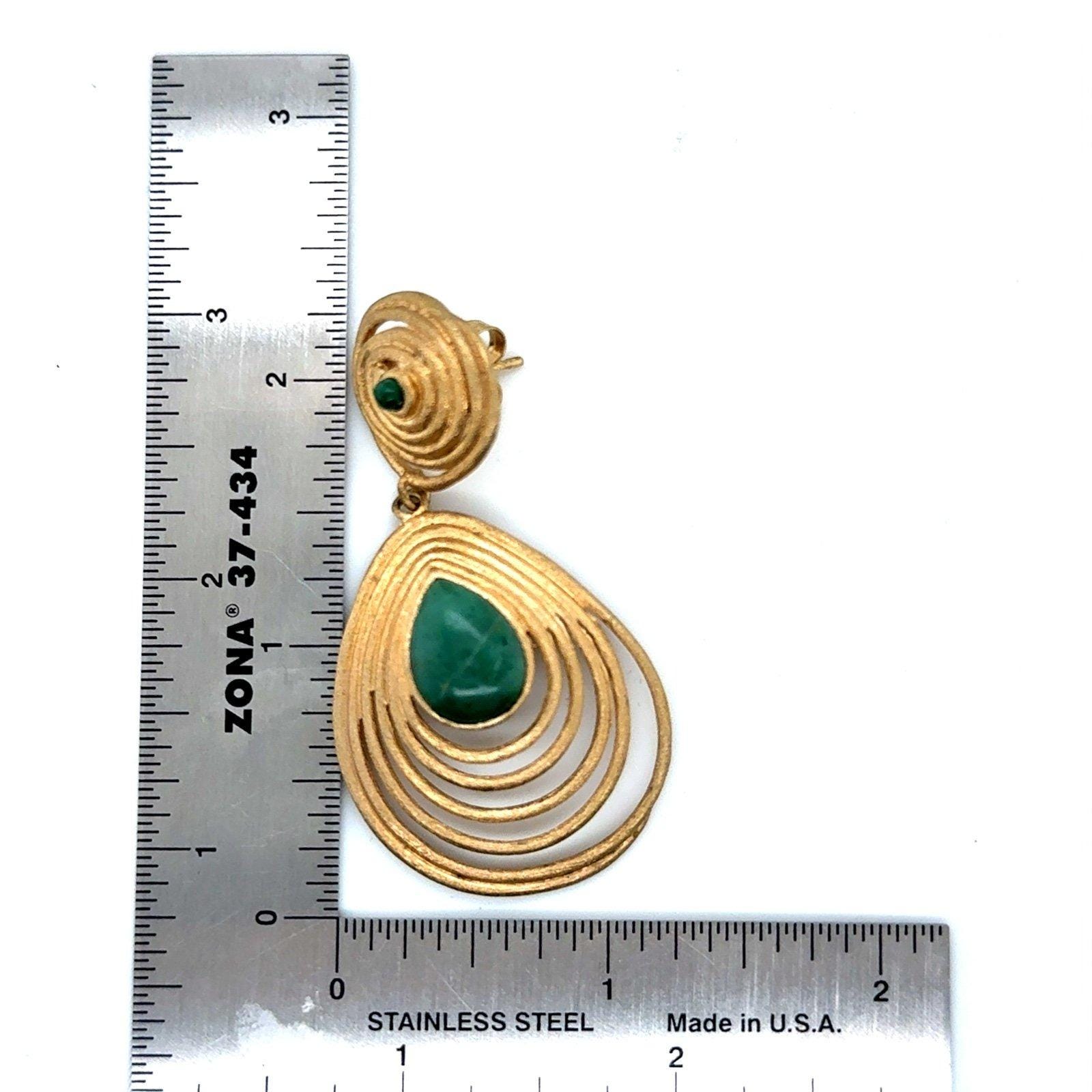 Pear Shaped Green Stone Matte Gold Earrings