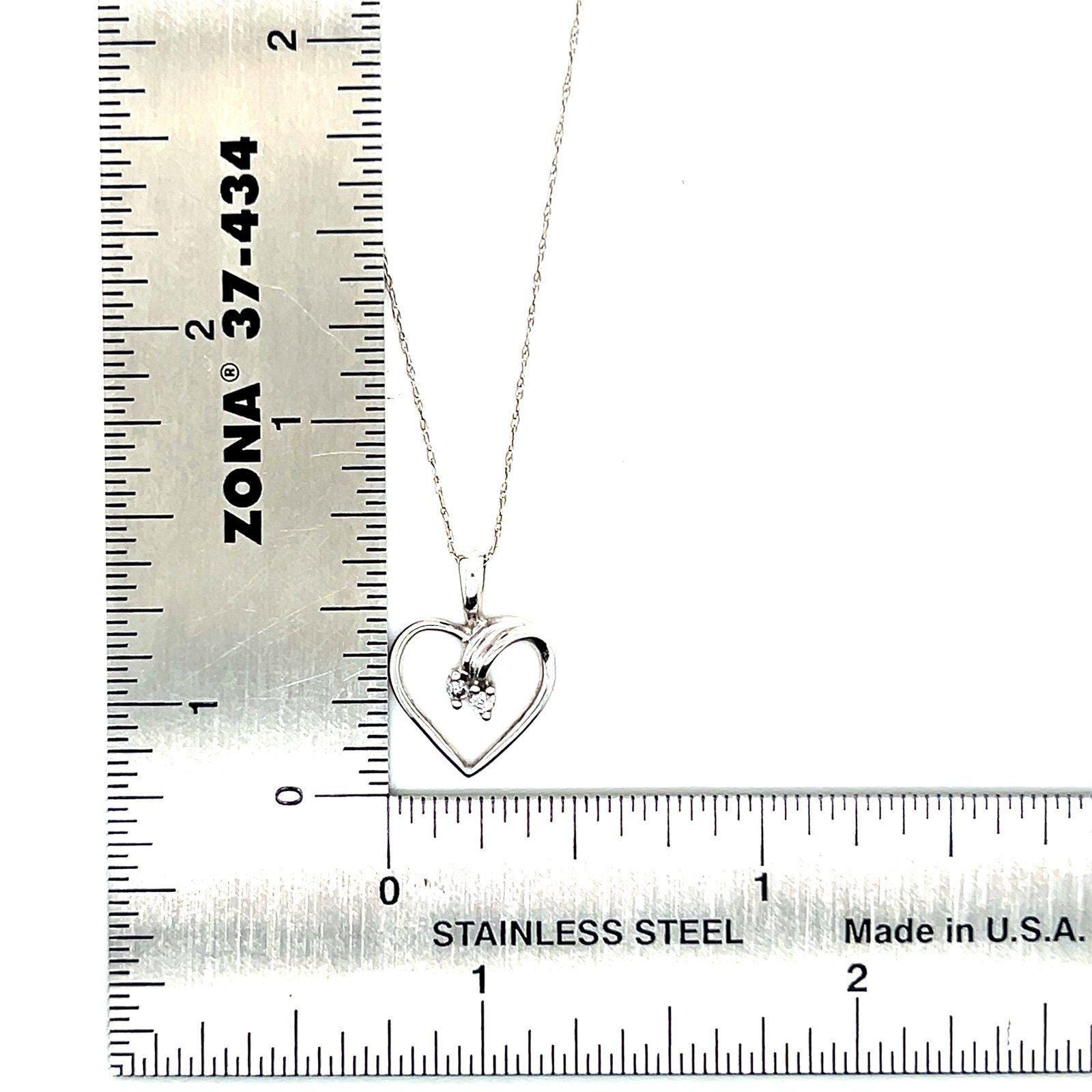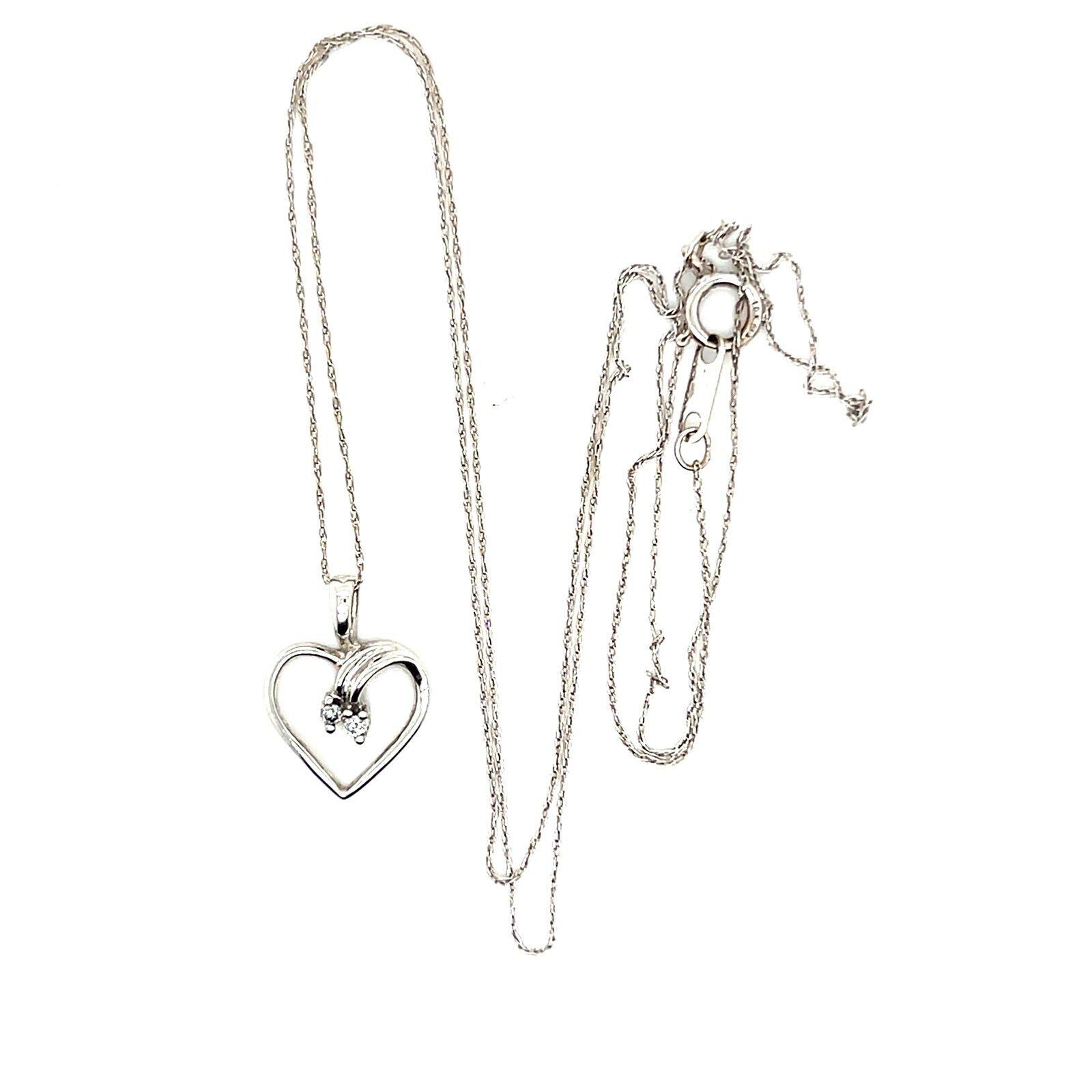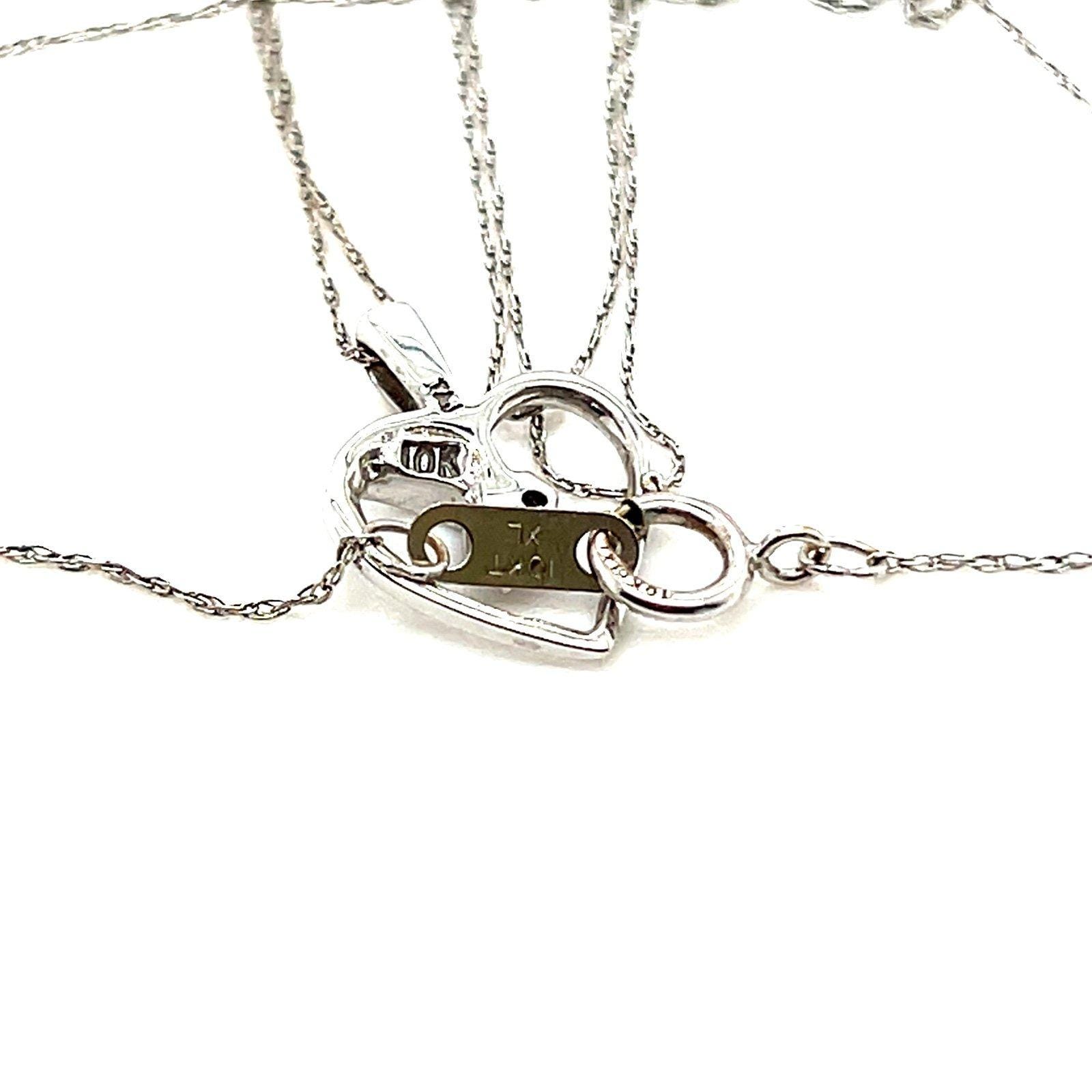 Real 10K White Gold Necklace with 2 Small Real Diamond Heart Pendant, NOT GOLD PLATED OR GOLD FILLED.