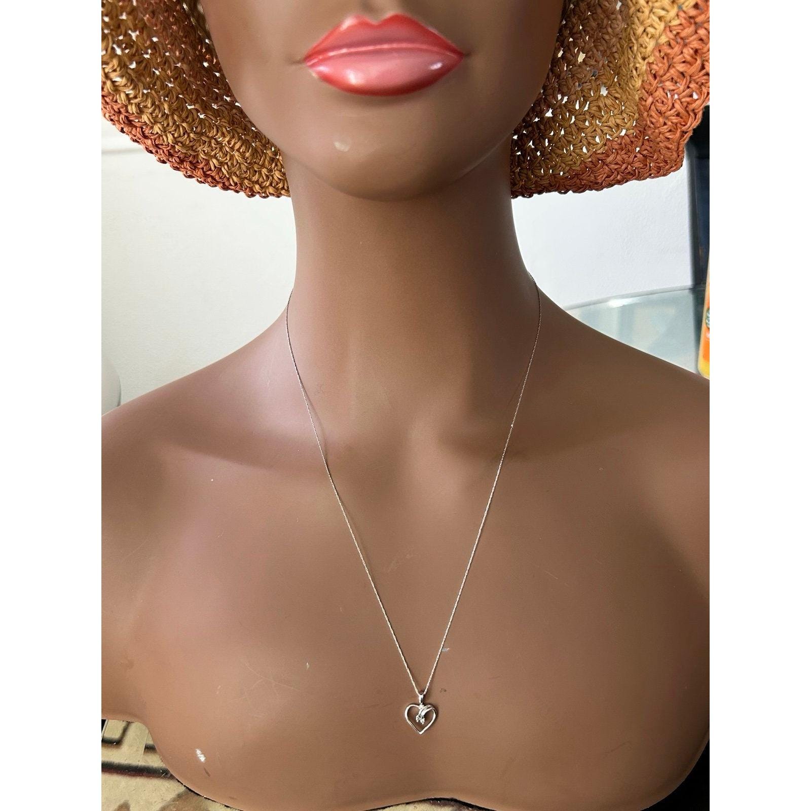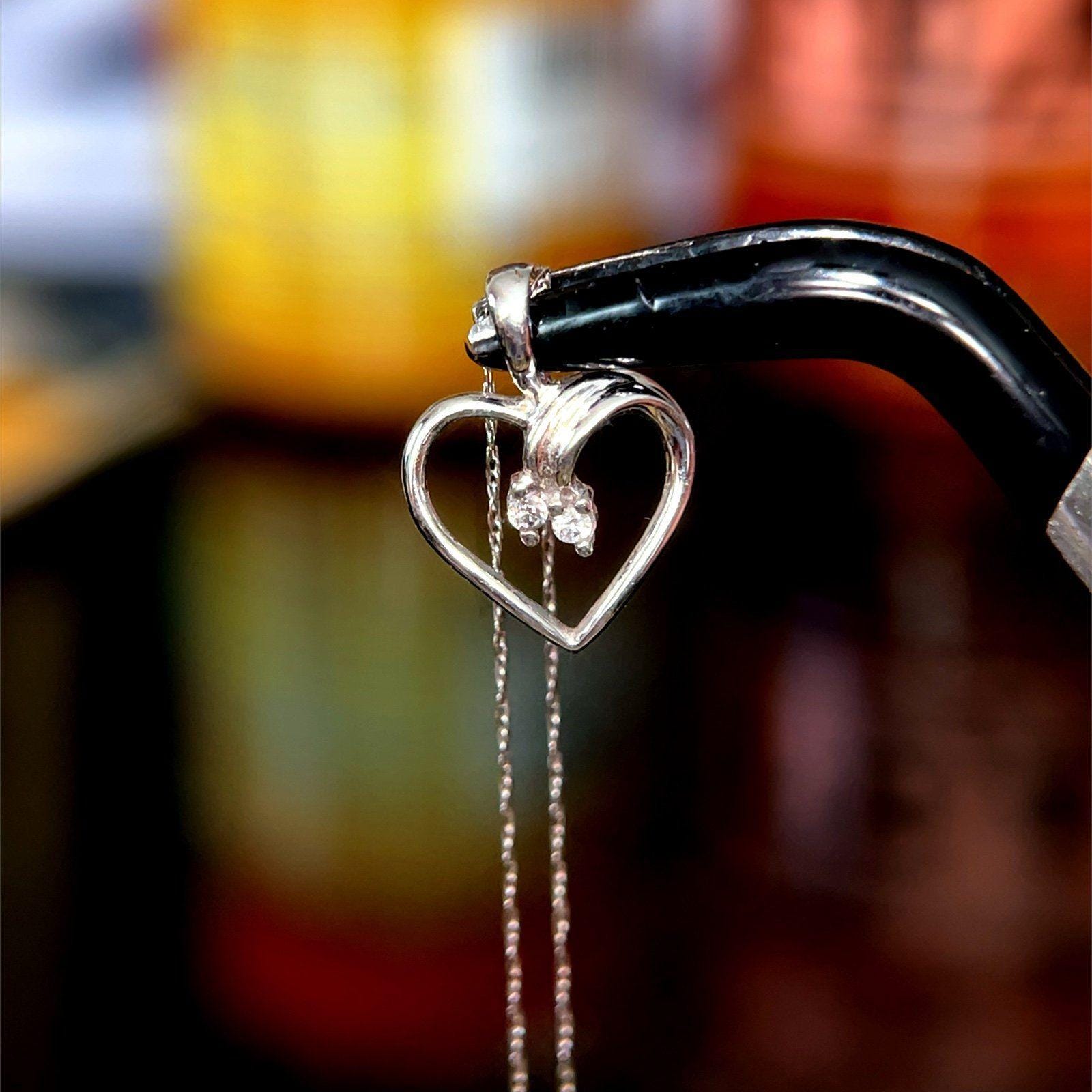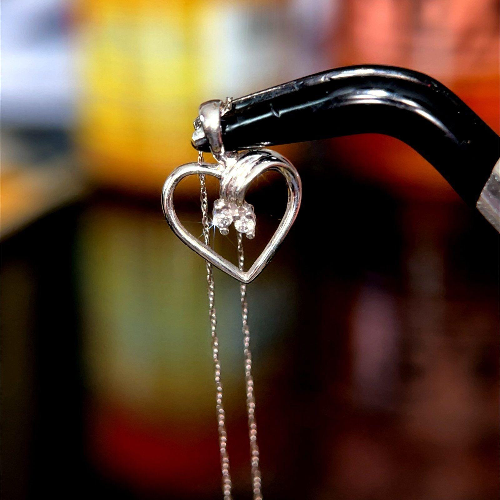 Real 10K White Gold Necklace with 2 Small Real Diamond Heart Pendant, NOT GOLD PLATED OR GOLD FILLED.