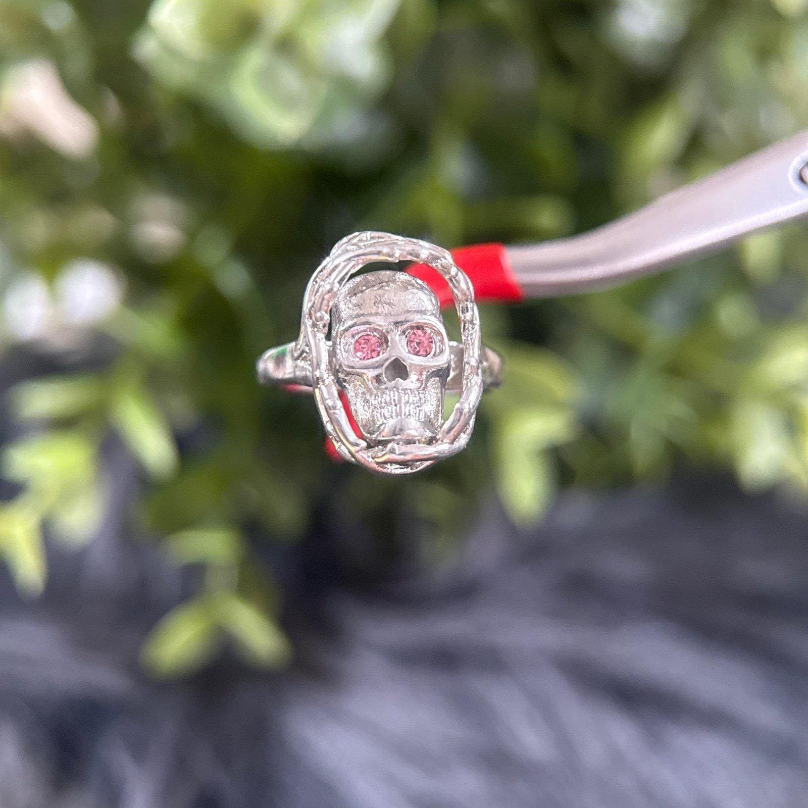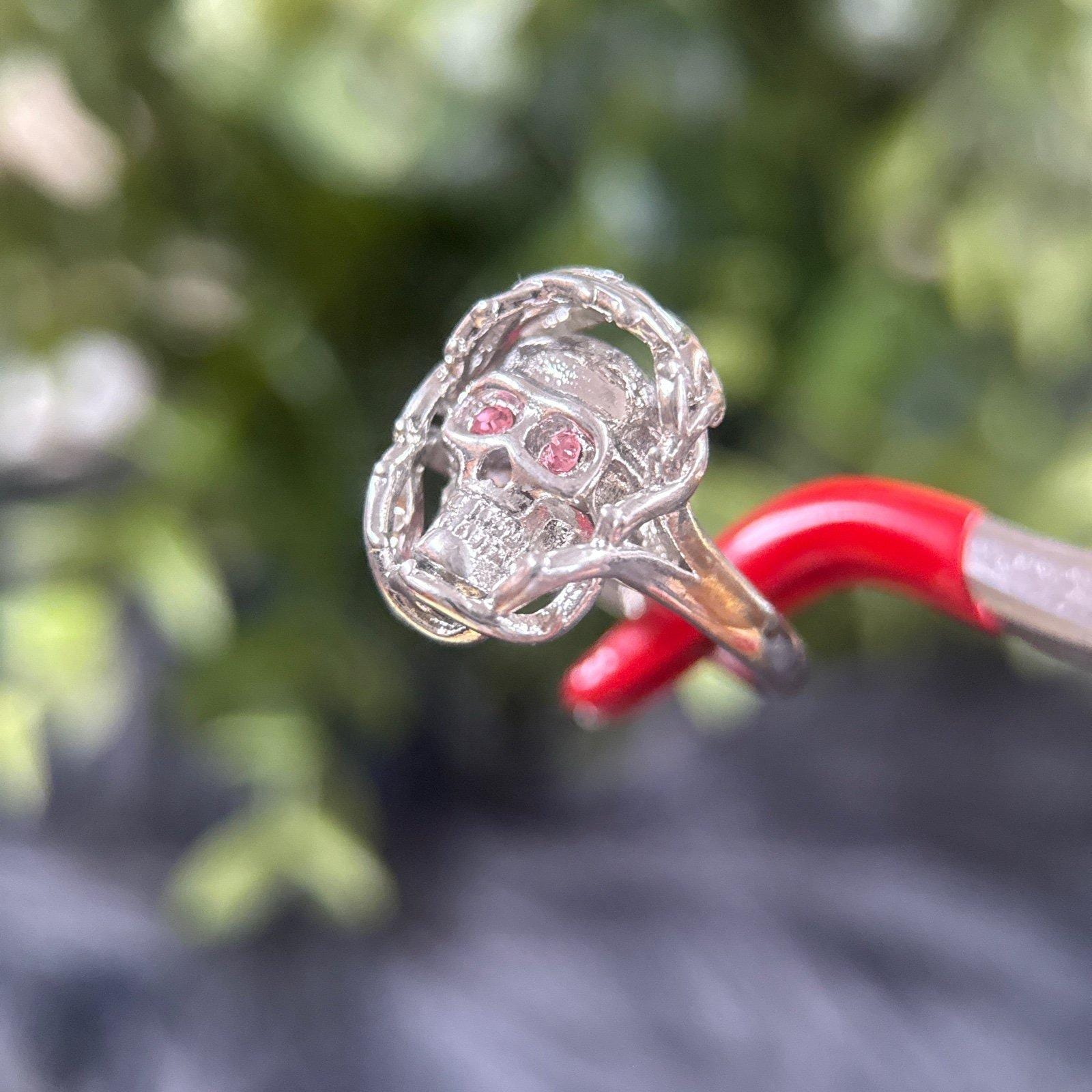 *Silver tone ring *Not real silver *Pink Eyes Small Skull ring *Size 7 *Excellent condition