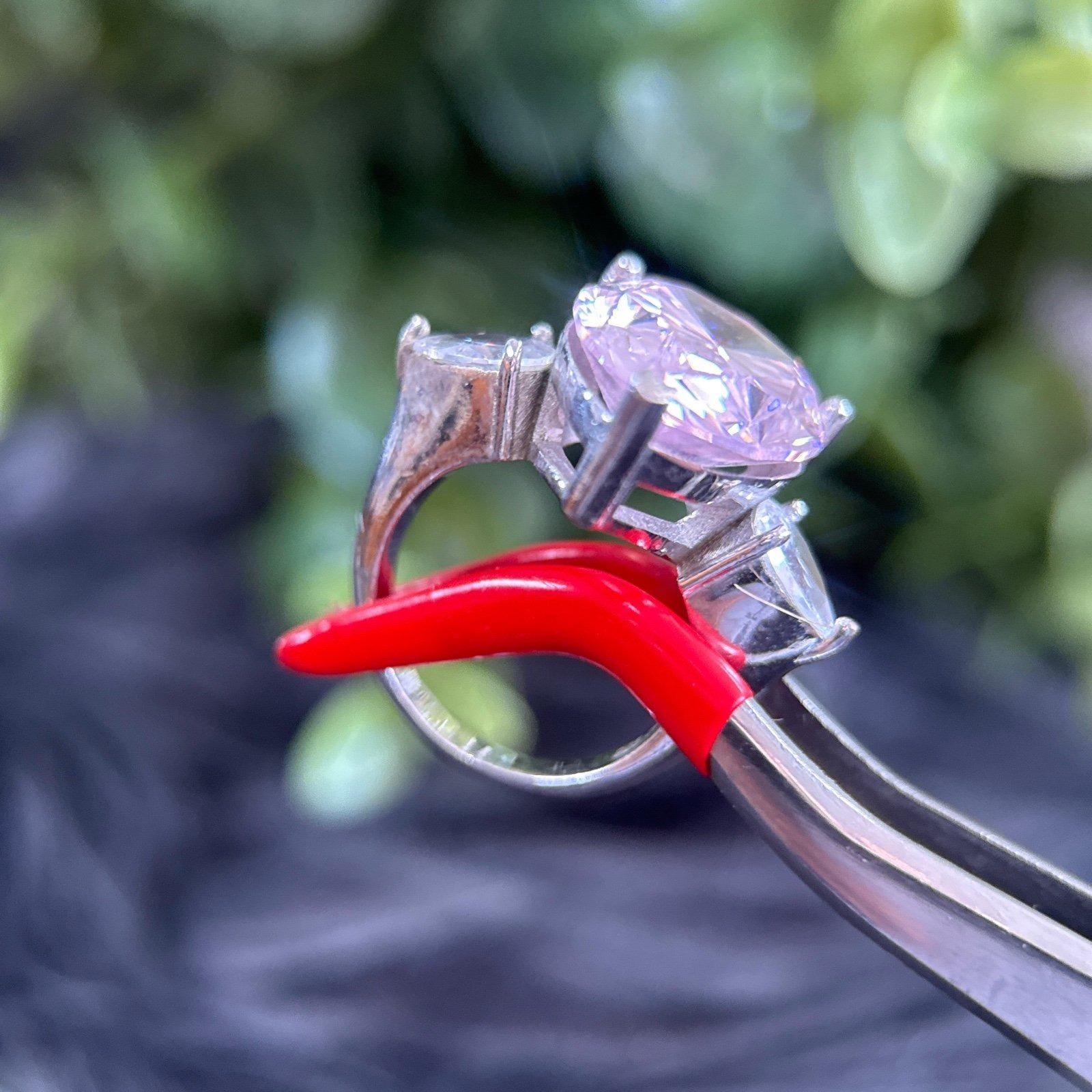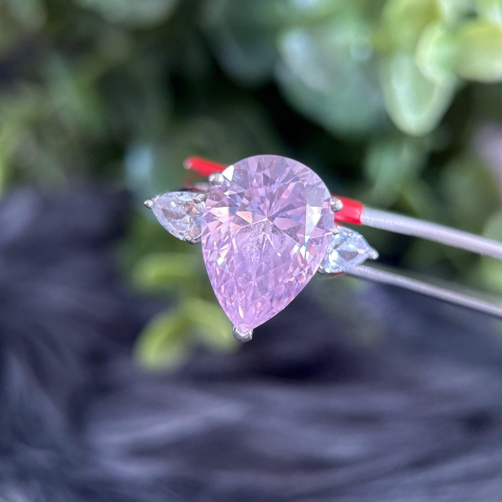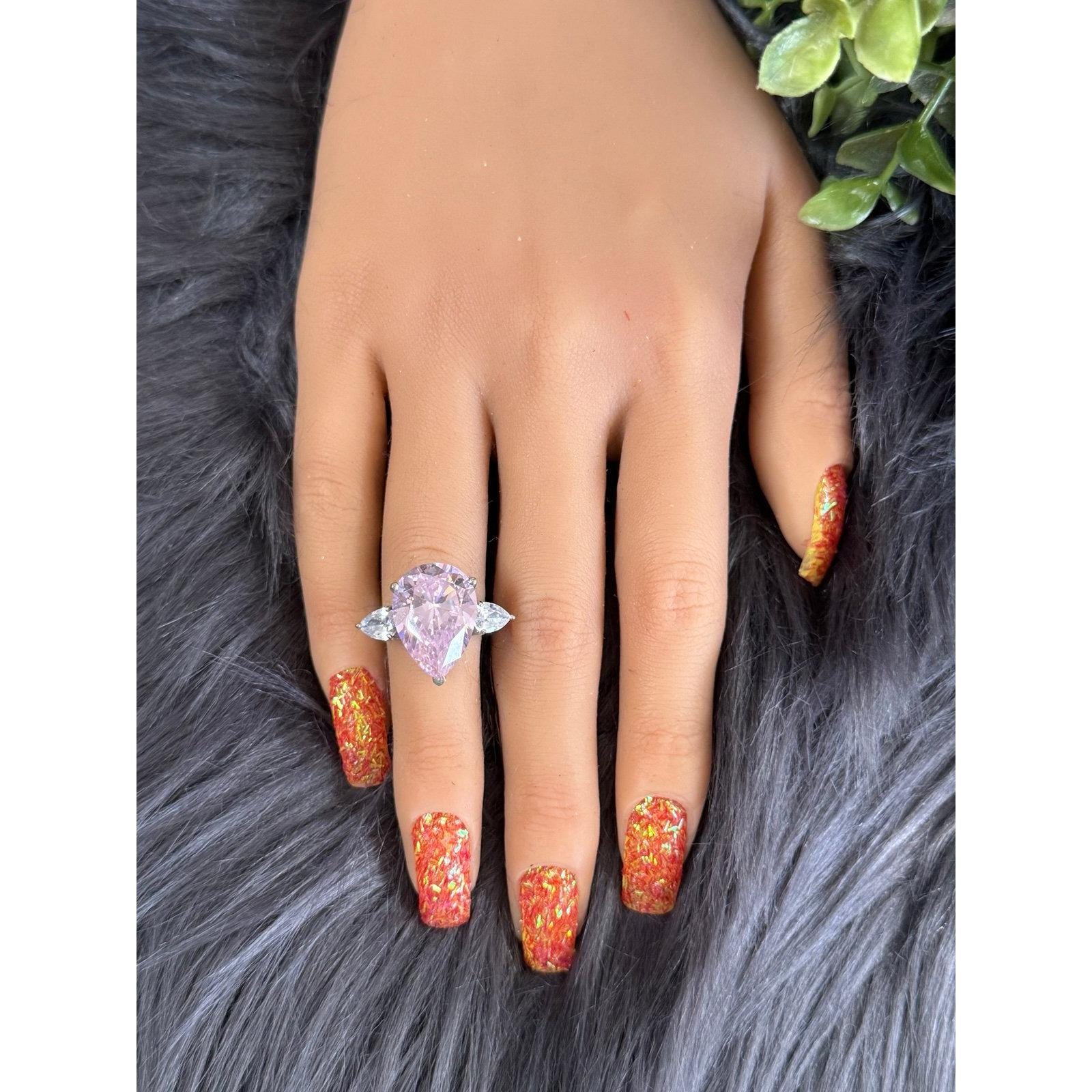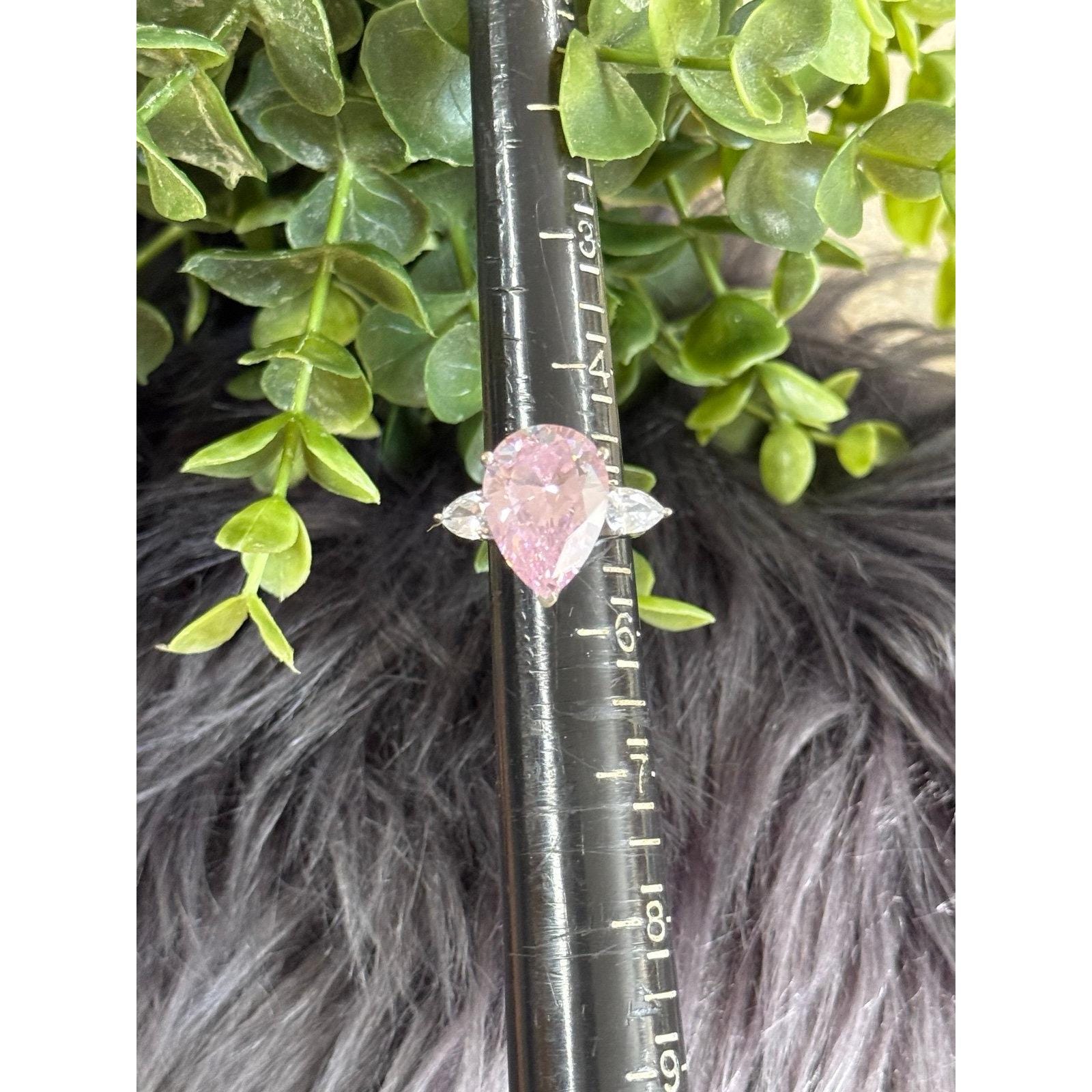 925 Silver 3 Teardrop Shaped Pink Stones Ring.