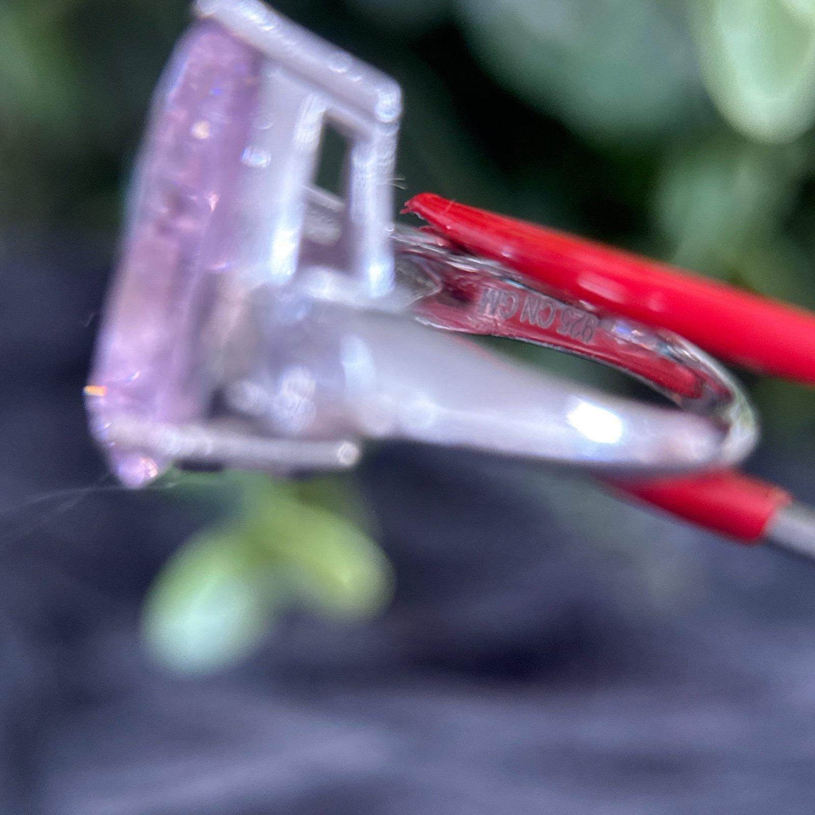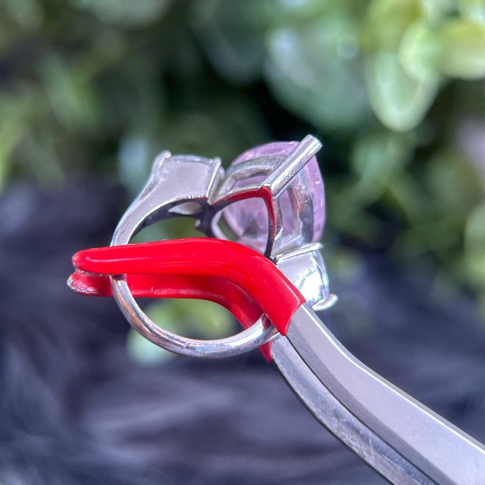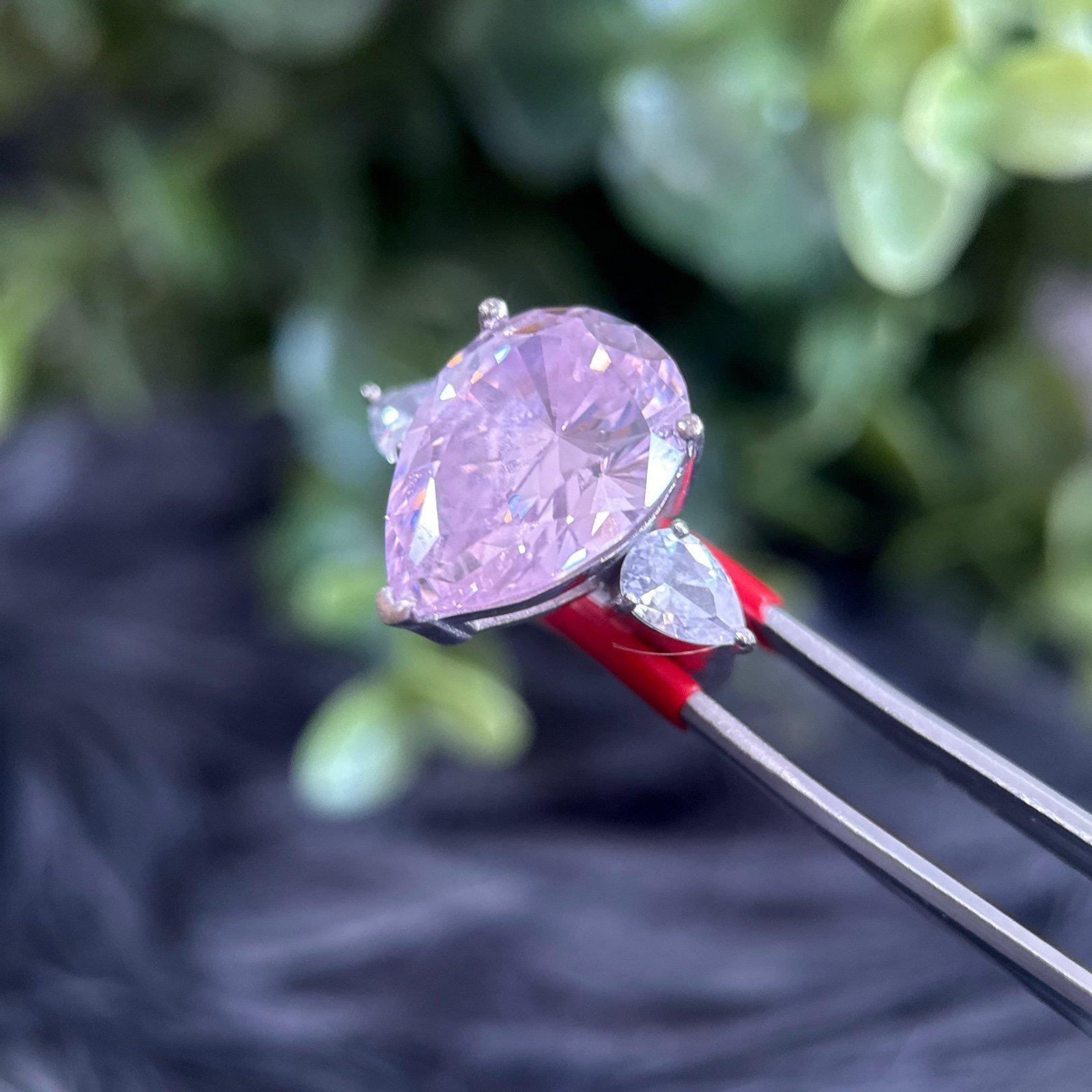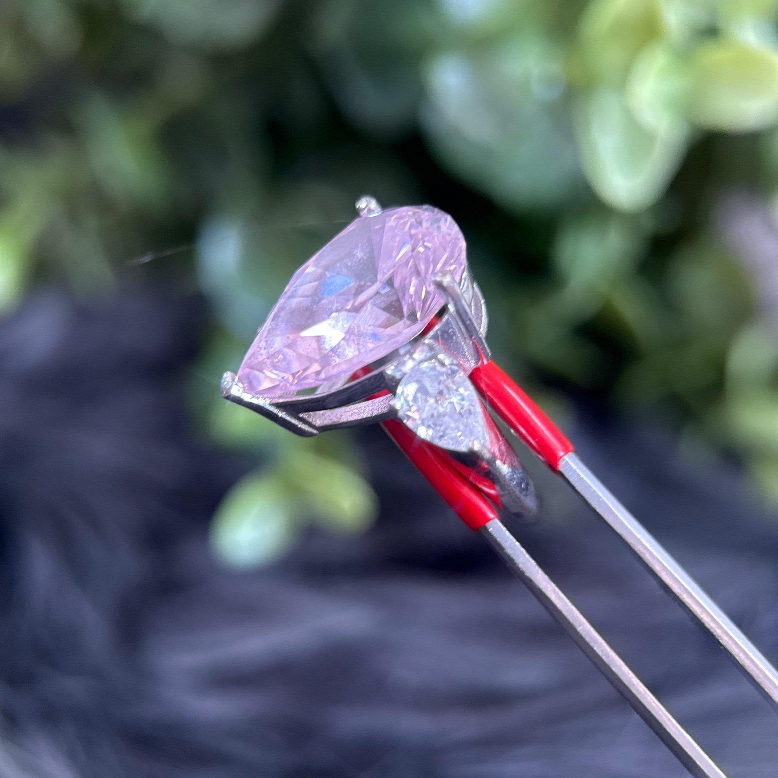 925 Silver 3 Teardrop Shaped Pink Stones Ring.