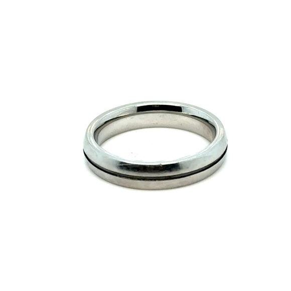 Polished Silver-Tone Band Ring with Center Accent Stone