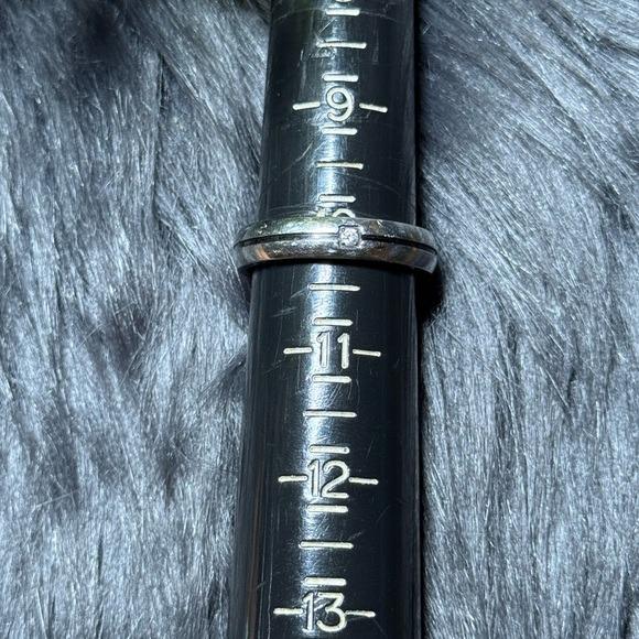 Sleek silver-tone band ring with a subtle center accent stone. Modern, minimalist design perfect for everyday wear. Comfortable fit and polished finish highlight the silver color.
