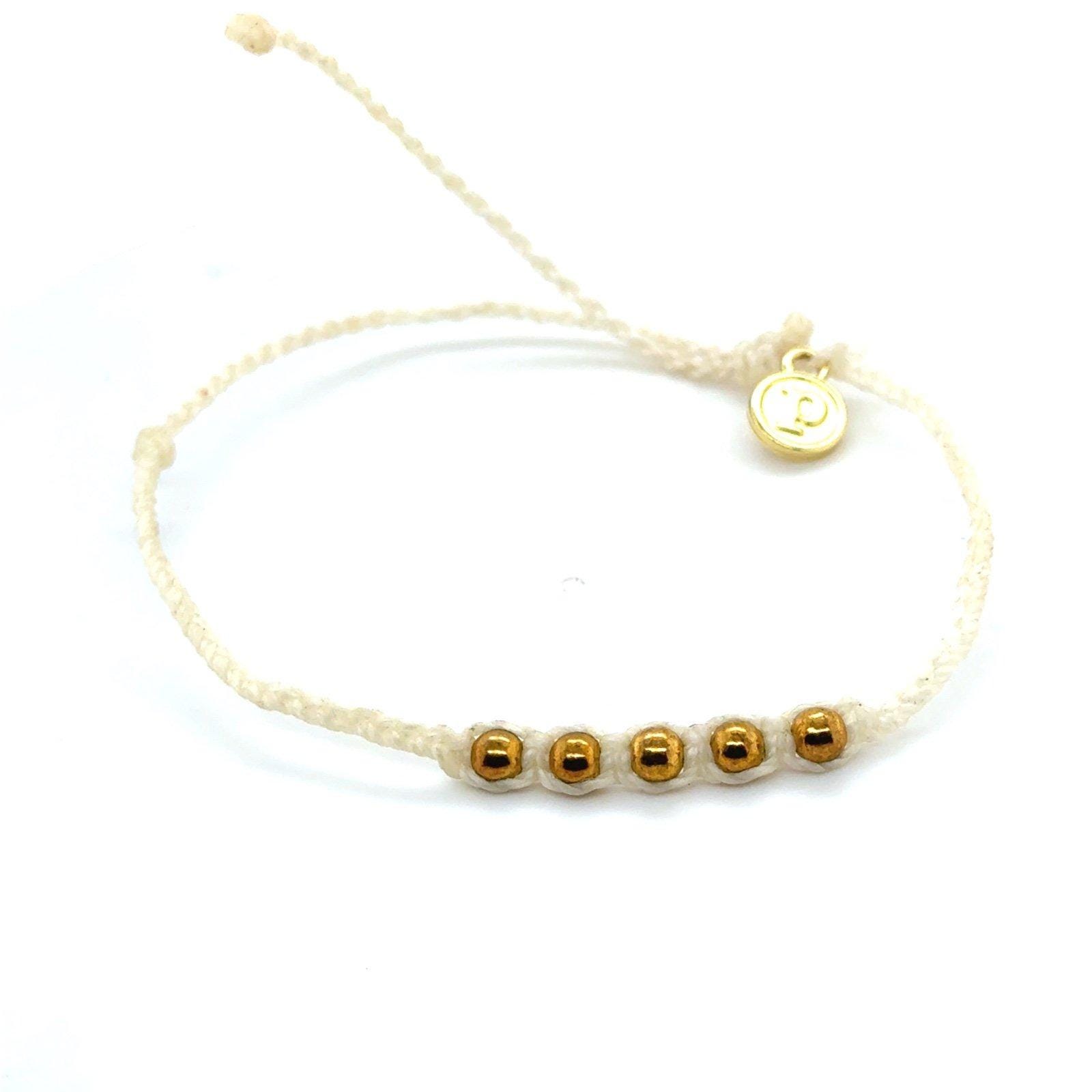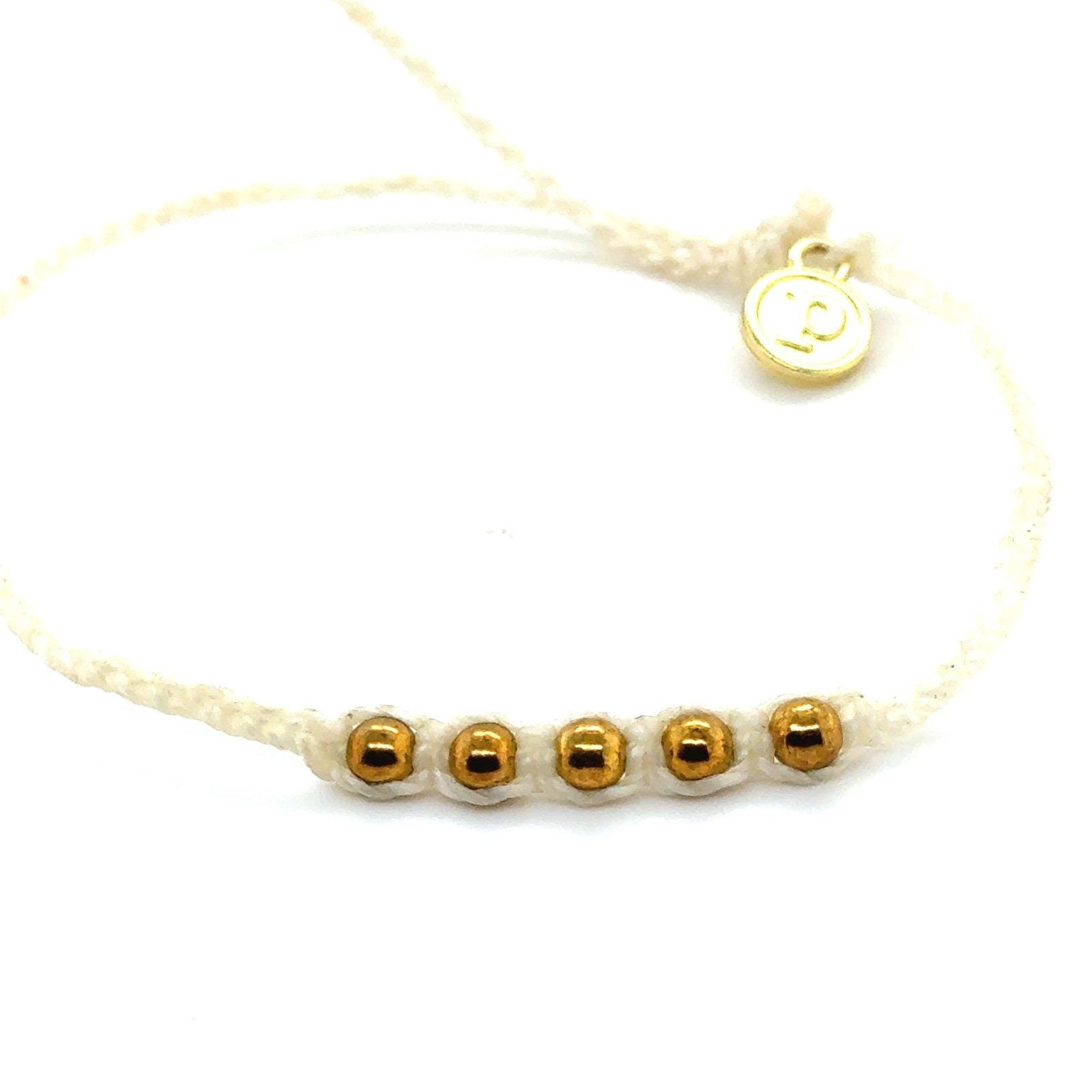 Pura Vida White Braid with 5 Gold Beads Bracelet