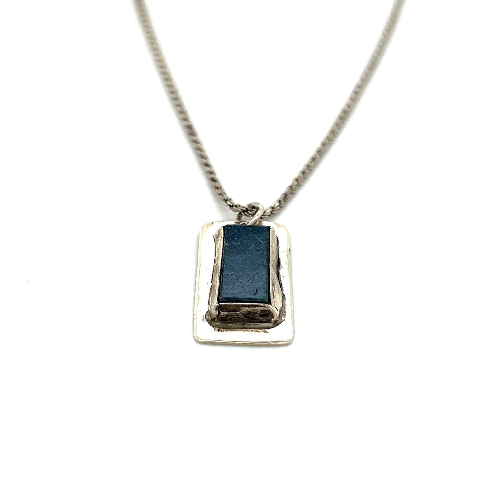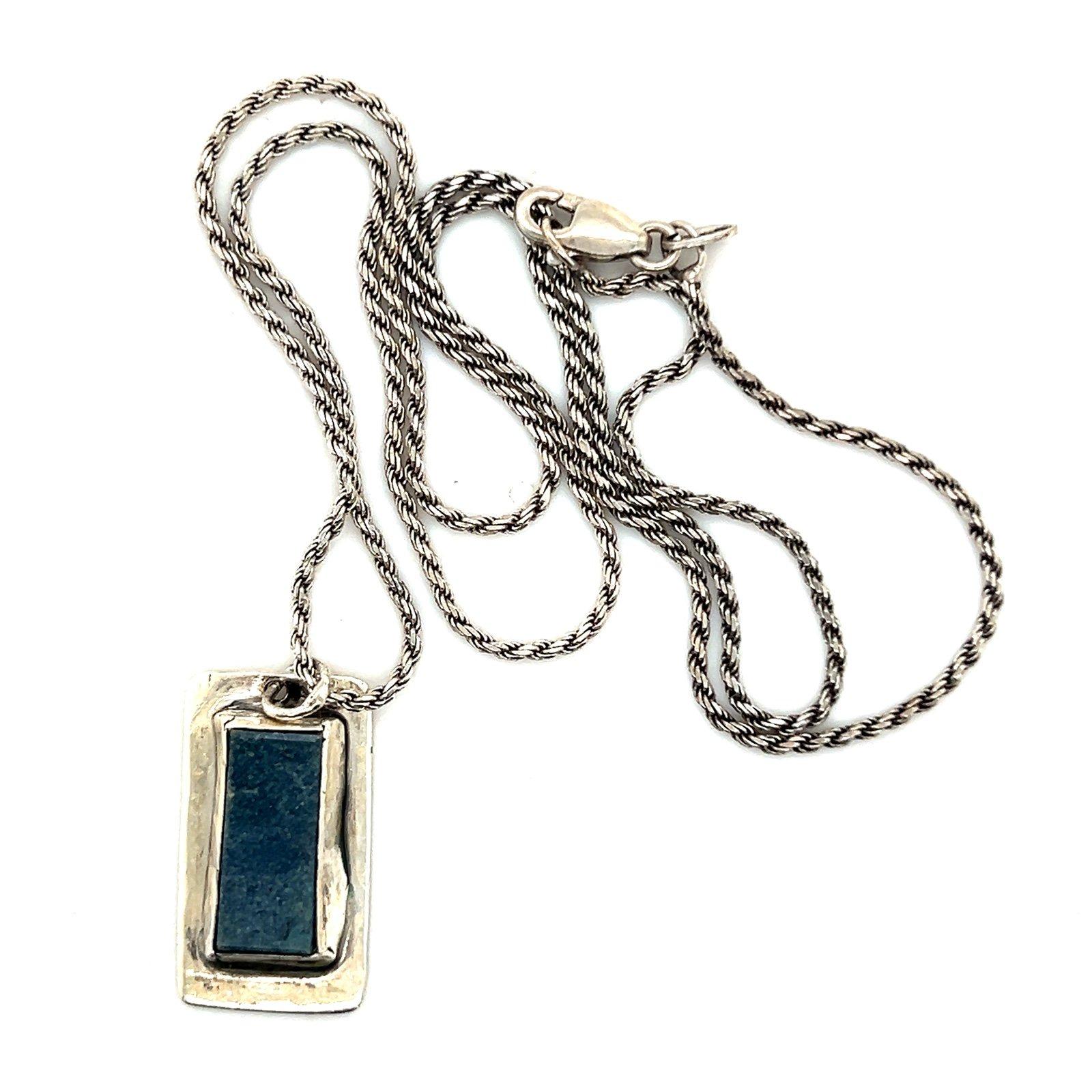 Sterling Silver Blue Stone Pendant Rope Necklace