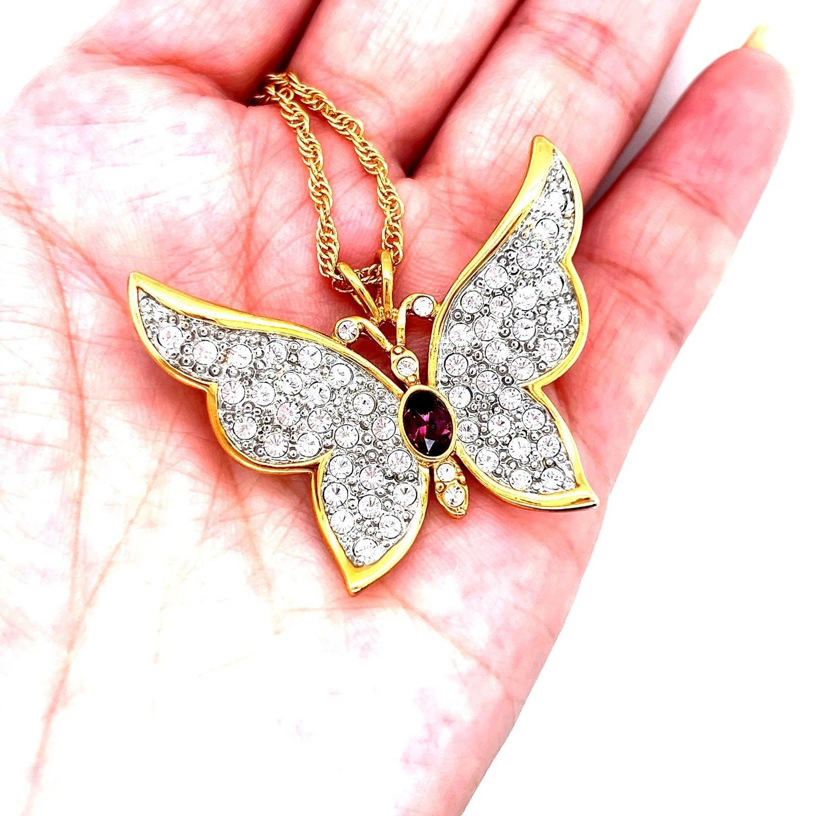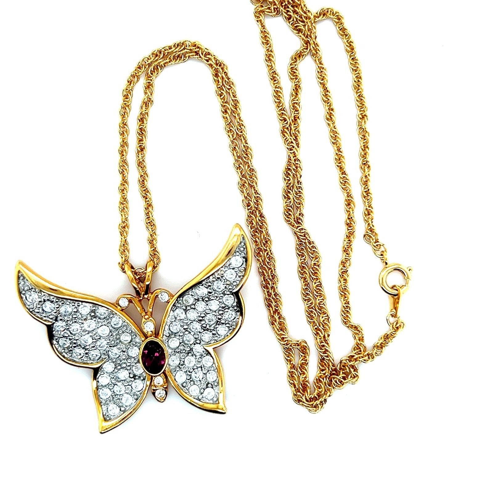 Butterfly Rhinestones Necklace with faux tourmaline Chain is 24” long In excellent condition