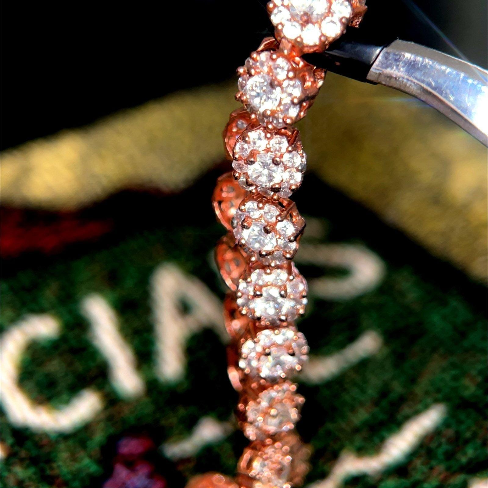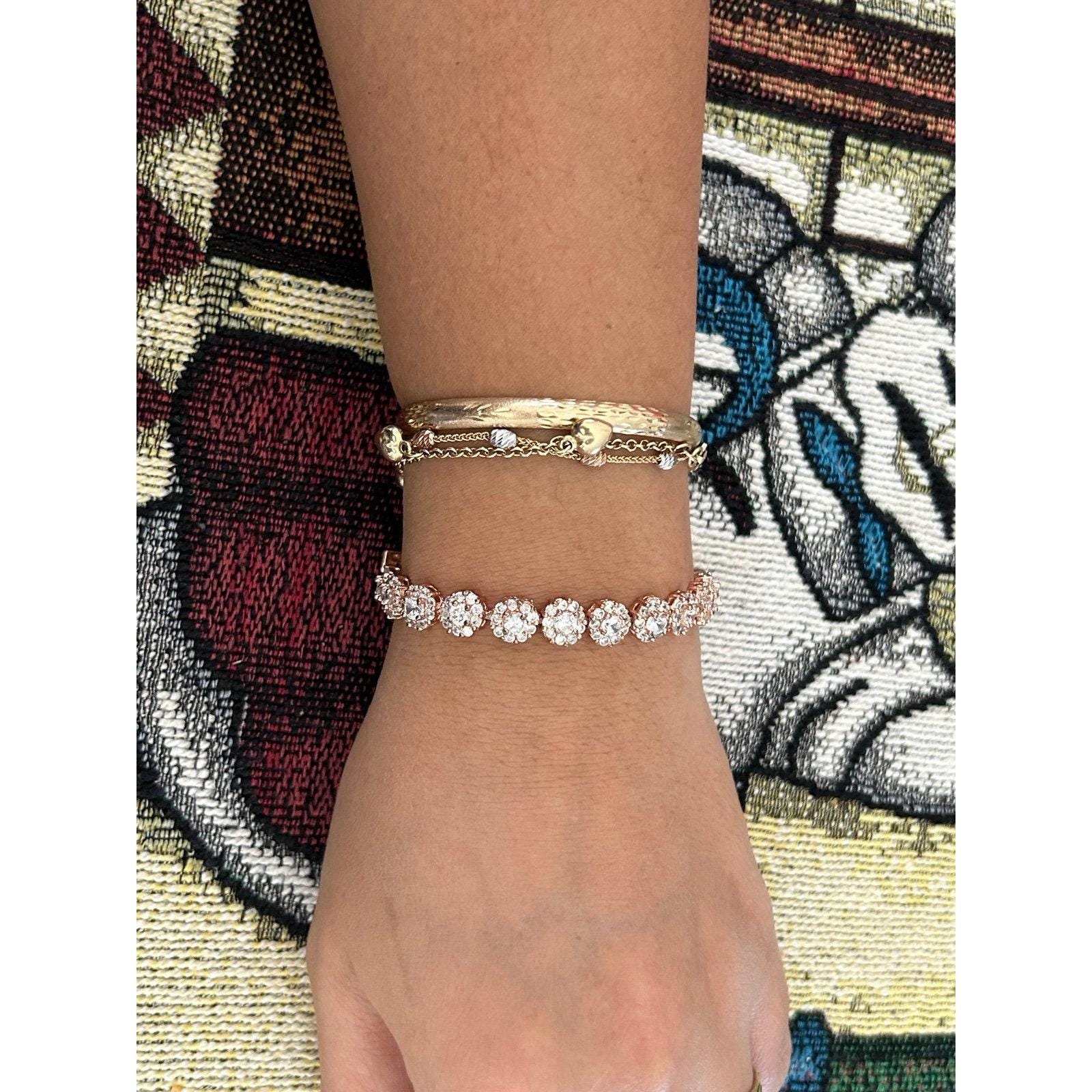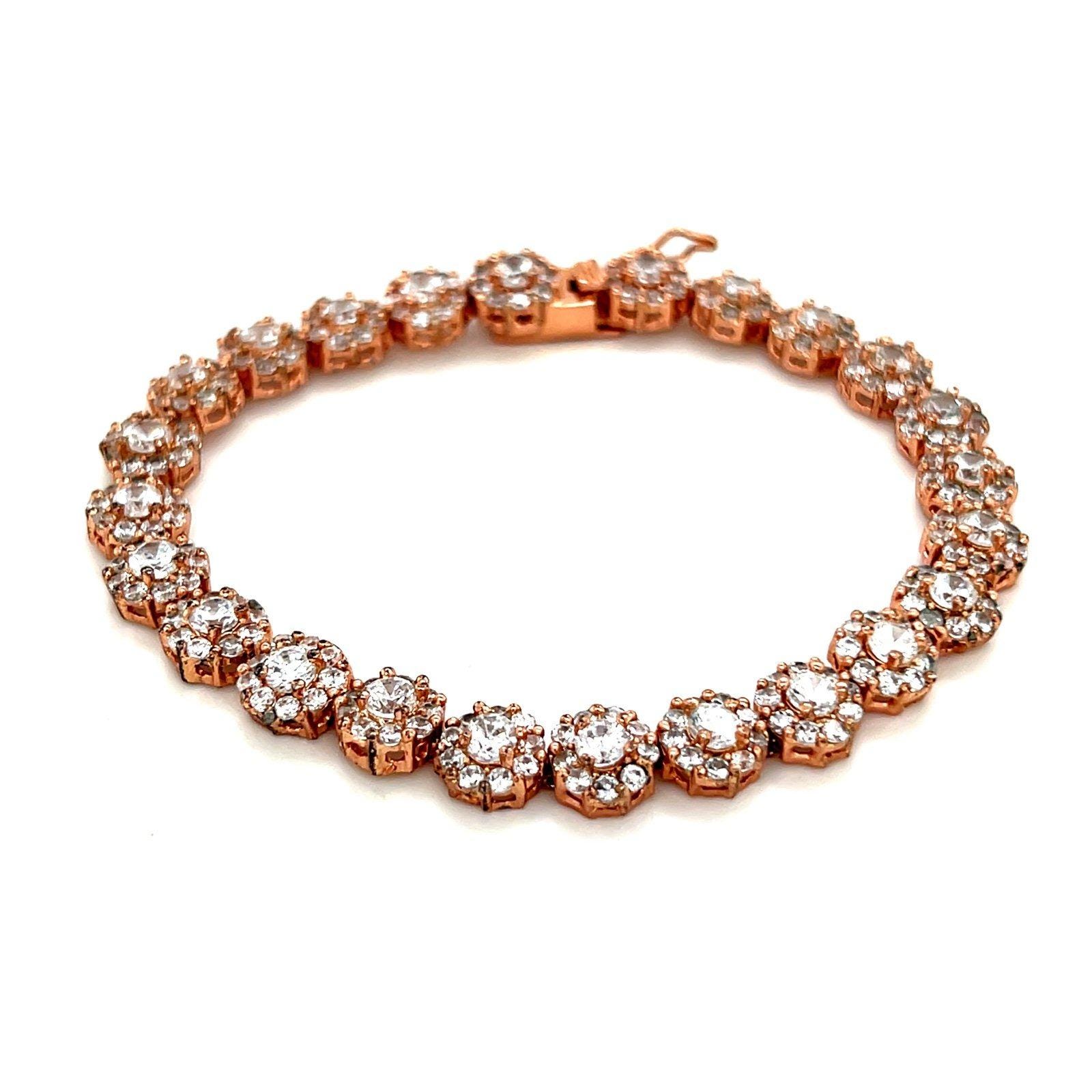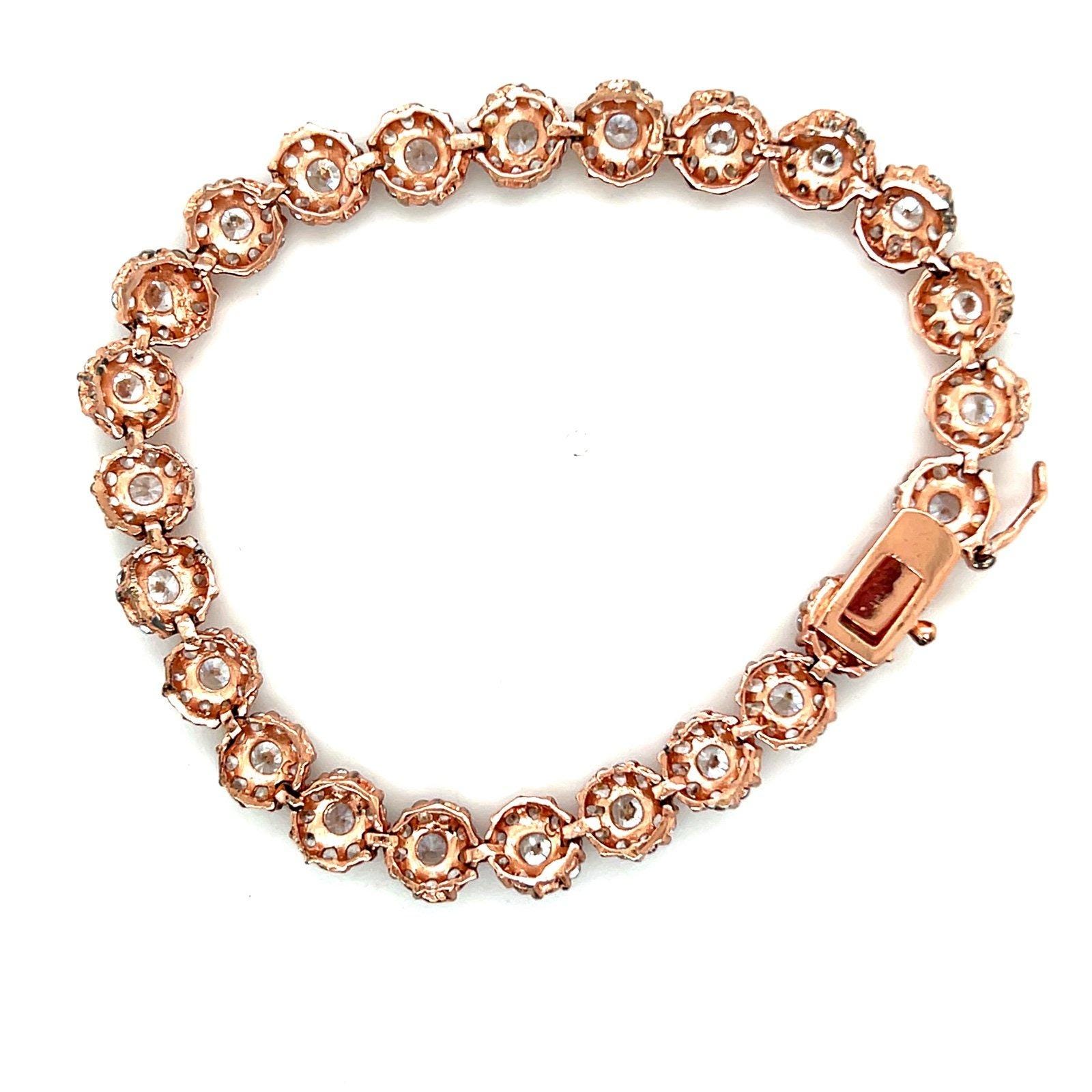 Rose gold flower Cz bracelet Missing 1 stone Measures 7.5” L Preowned