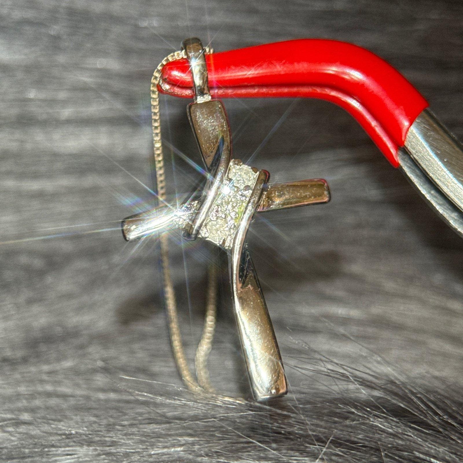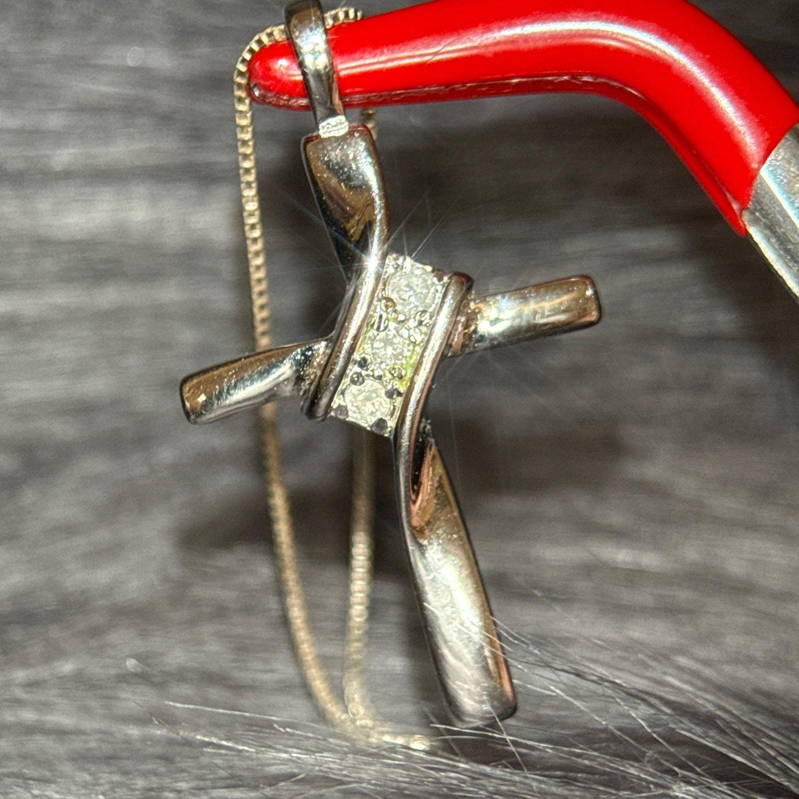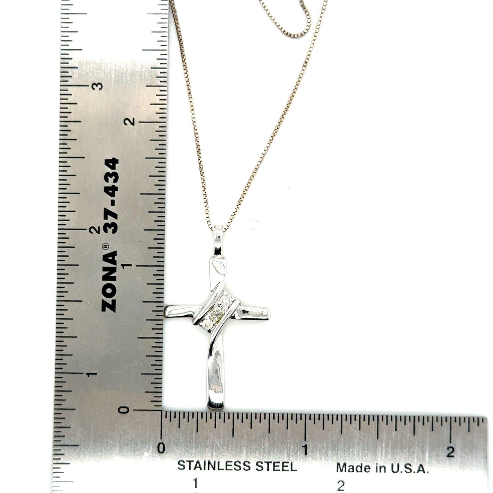 Sterling Silver 925 Cross Necklace with 3 Real Small Diamonds.