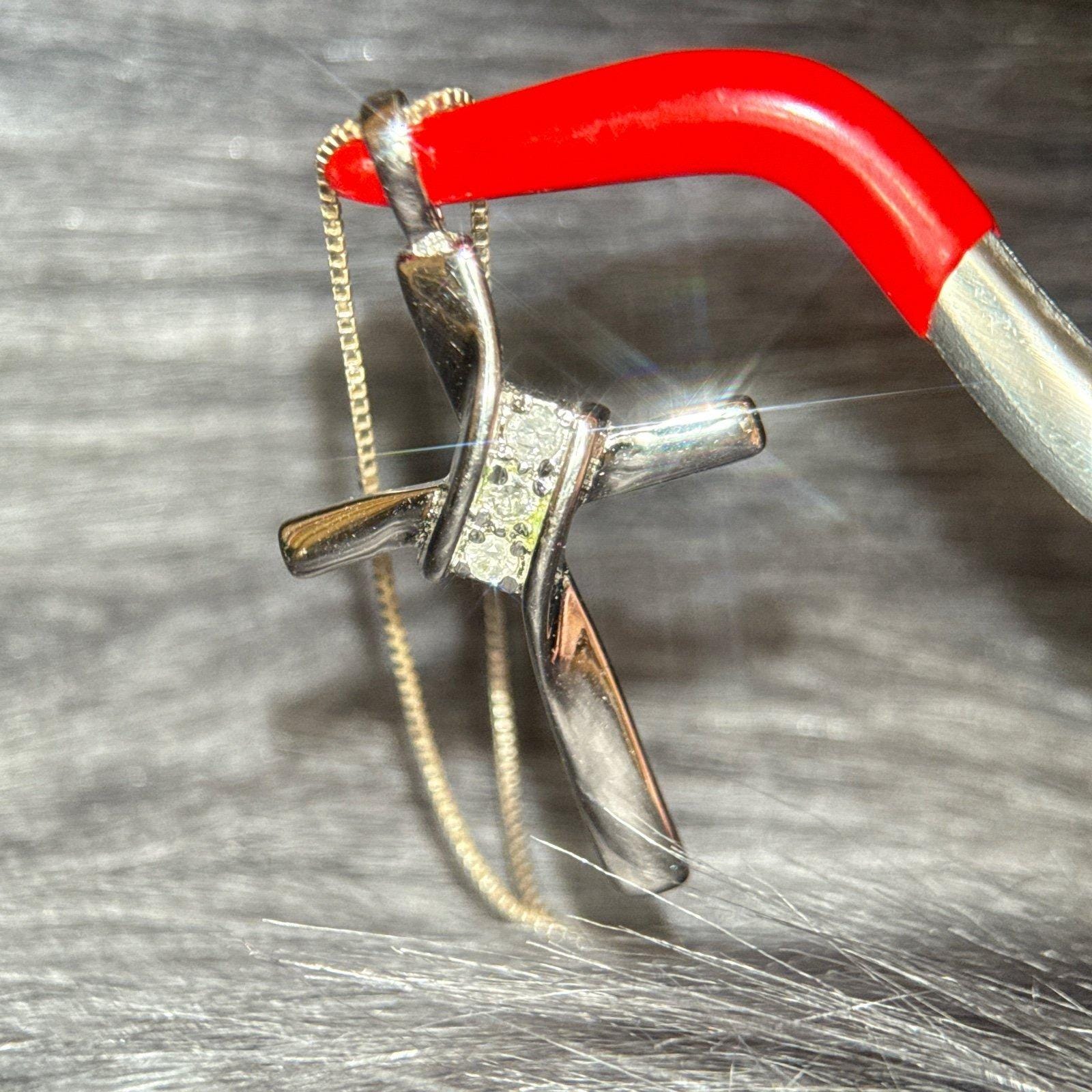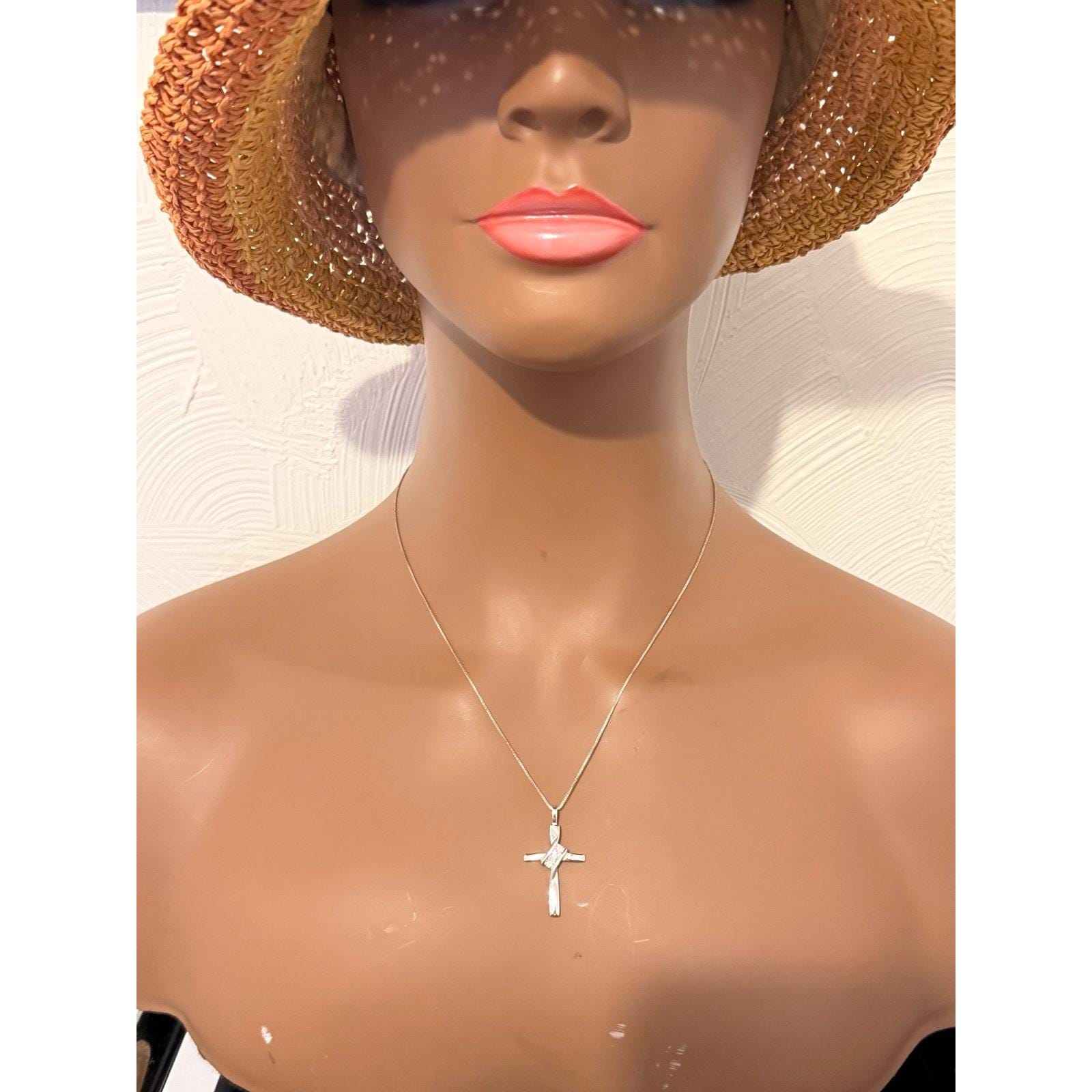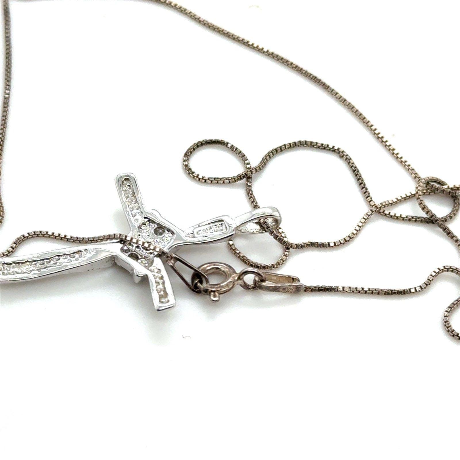 Sterling Silver 925 Cross Necklace with 3 Real Small Diamonds.