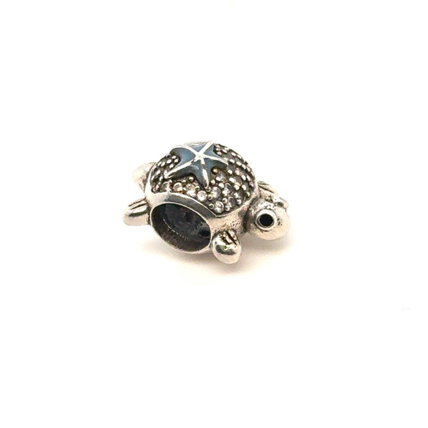 *Sterling Silver 925 Pave Turtle with Black Eyes Charm