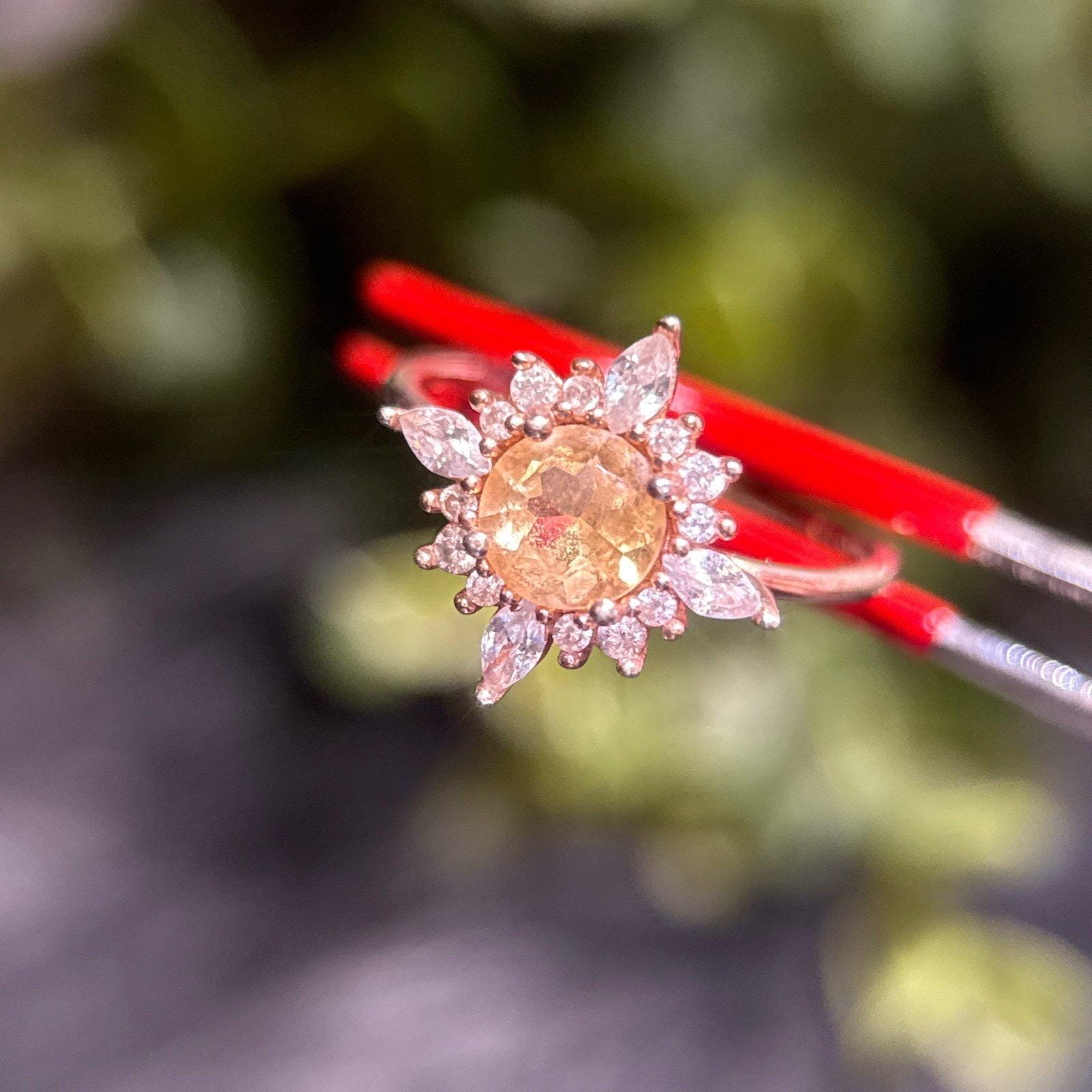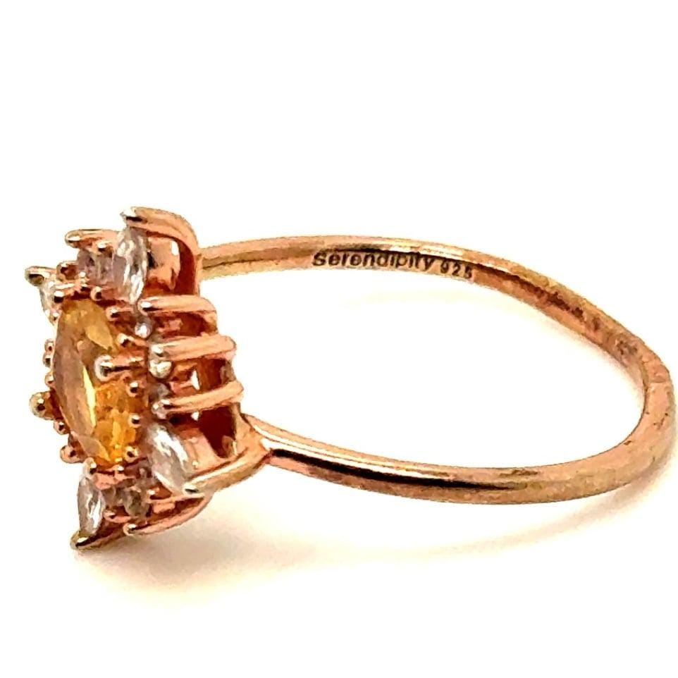 *Serendepity 925 Rose Gold Stone Ring *Band shows tarnishing and scratches *Size 7 *Preowned