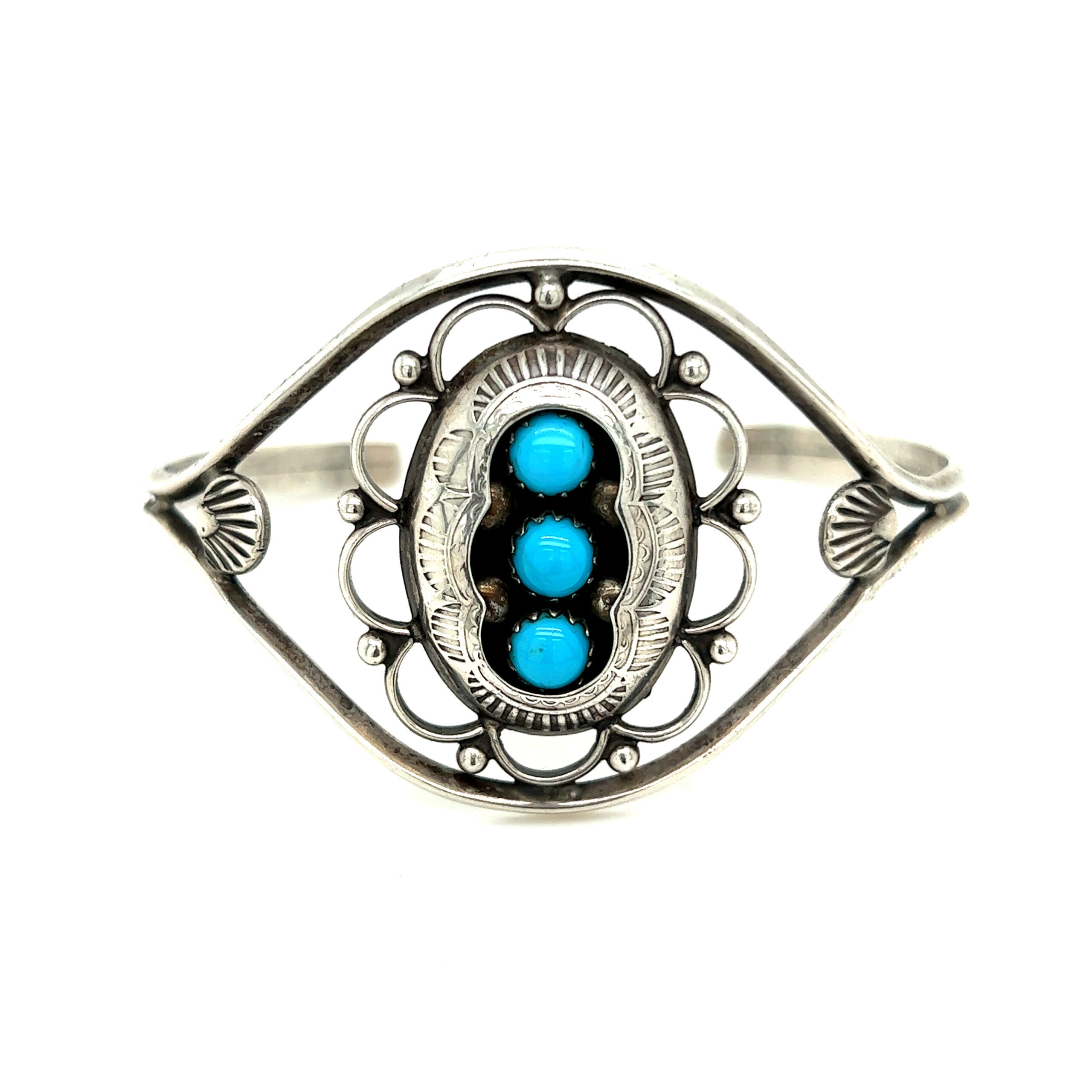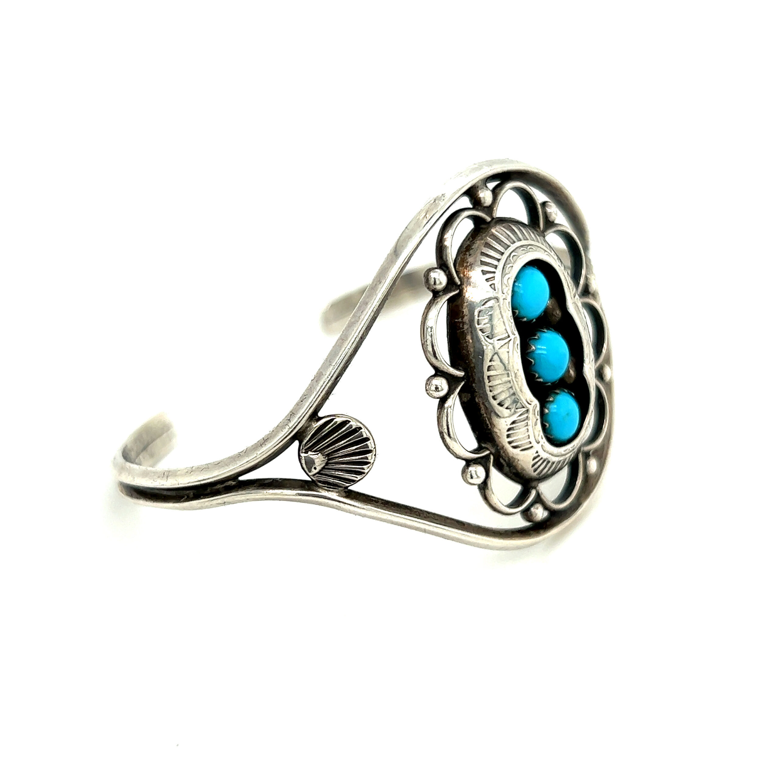 3-Turquoise Cuff Bracelet Meant for small wrists Signed CH