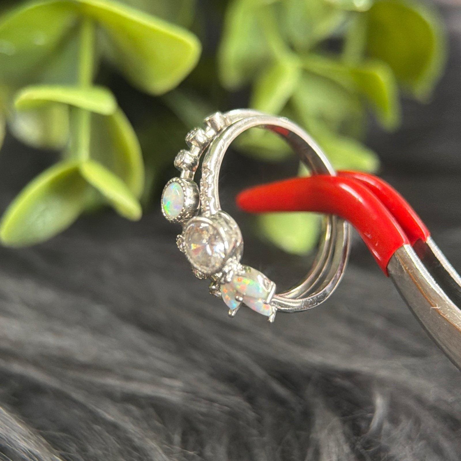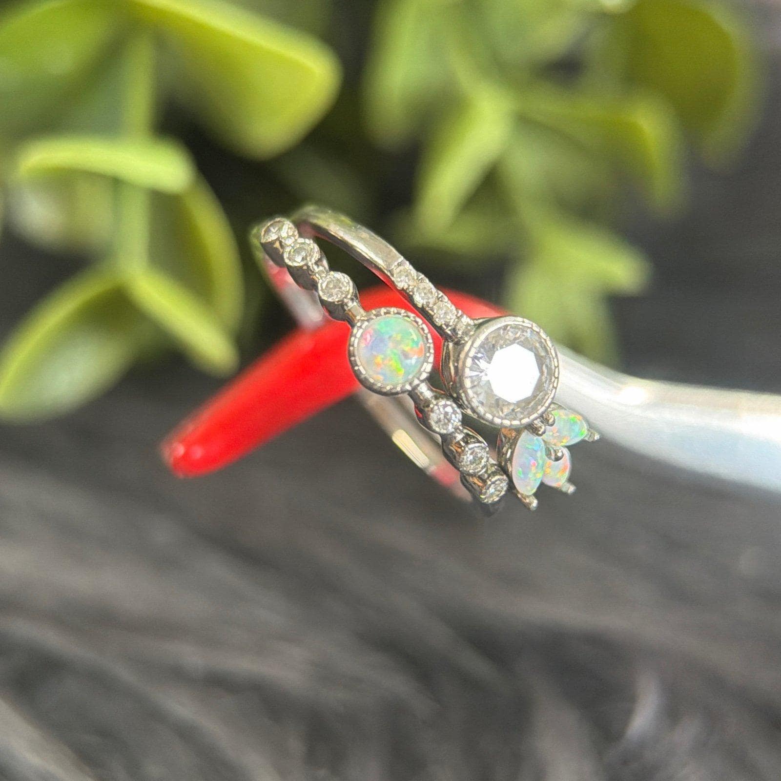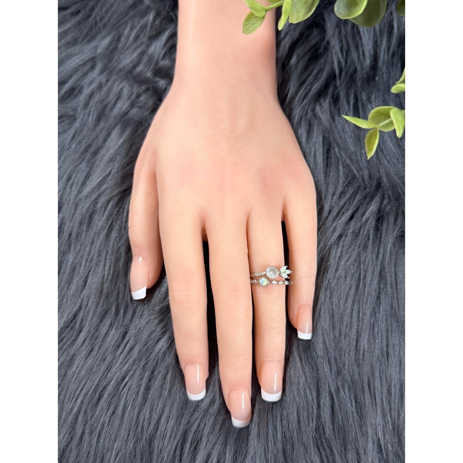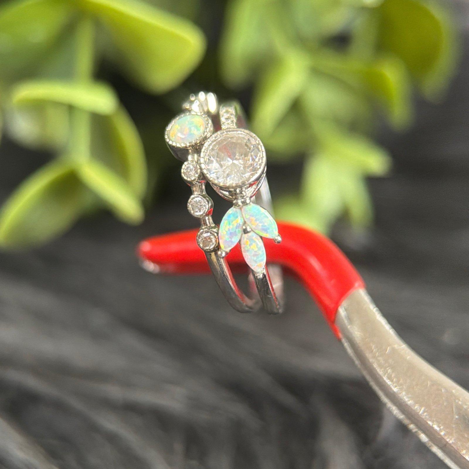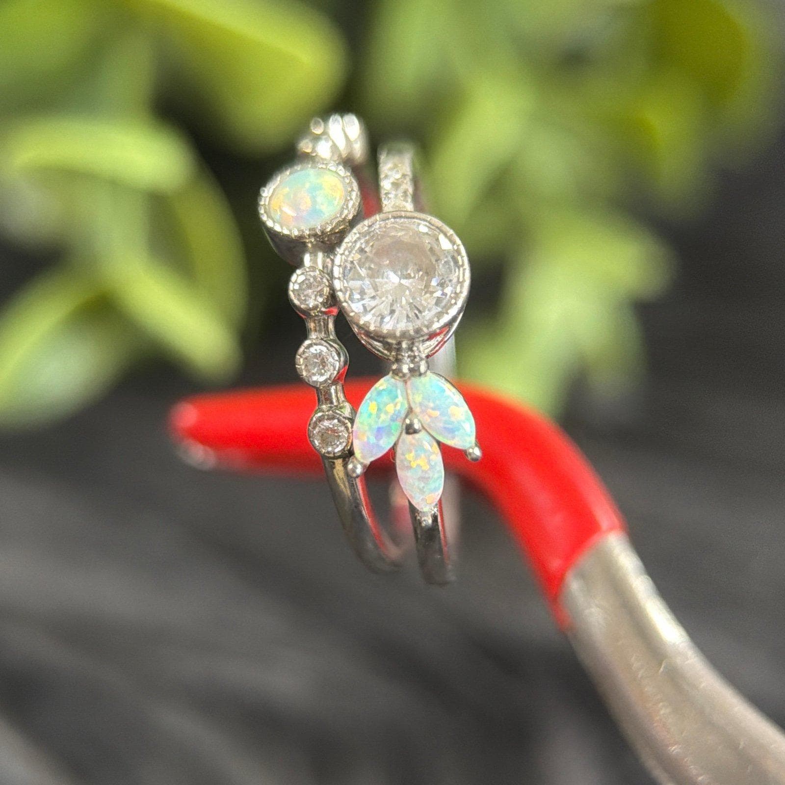 Sterling Silver 925 2-Piece Set Opal Rings. Both rings are delicate.