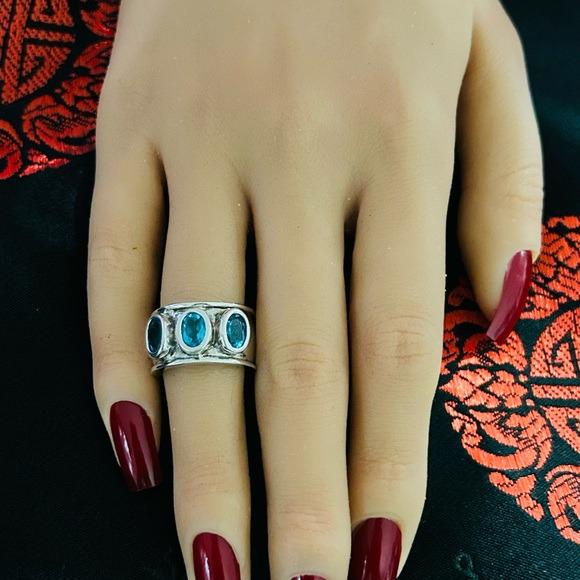 Silver 925 3-Blue Stones Ring.