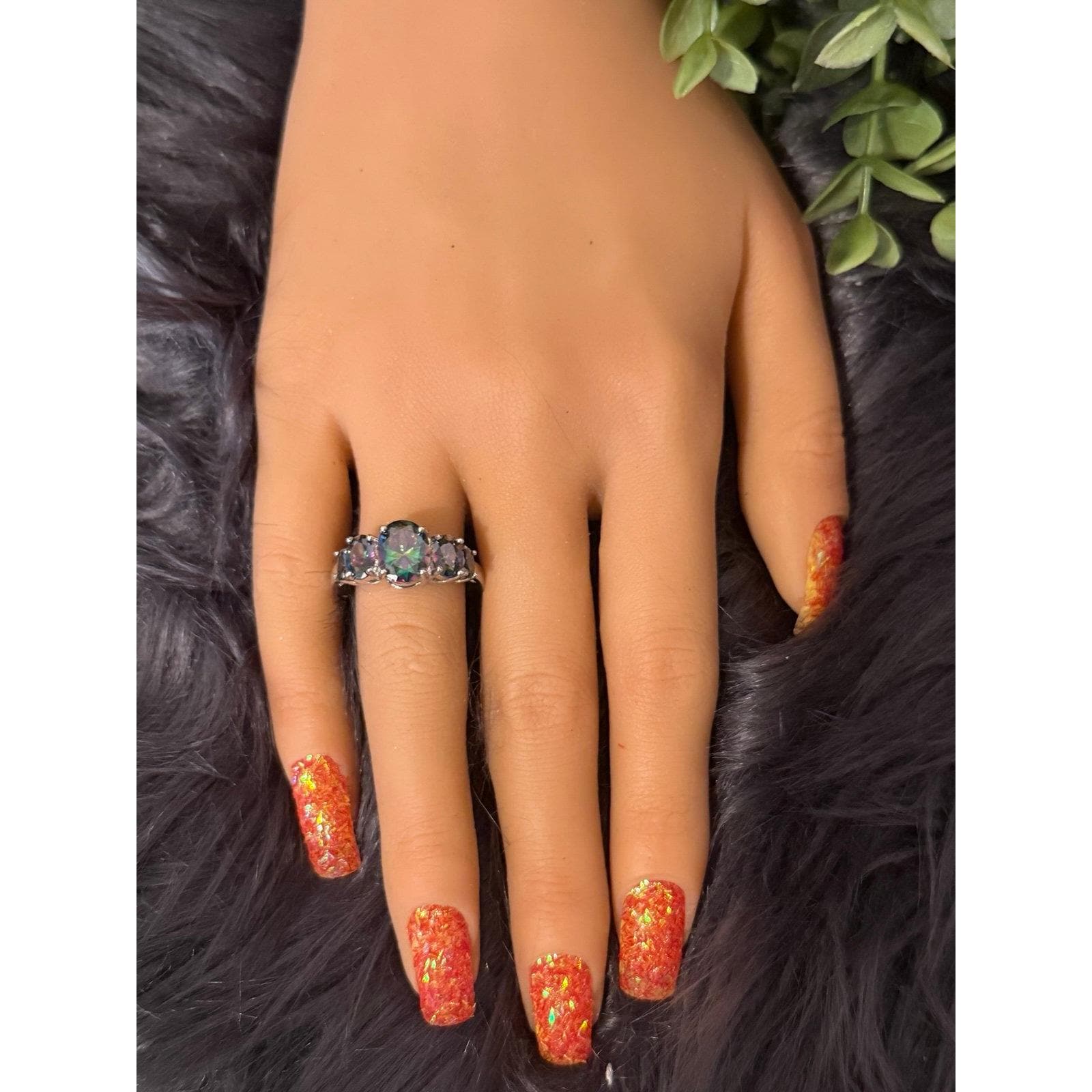 Lovely and Sophisticated 4 Mystic Topaz Ring in Sterling silver 925 setting.