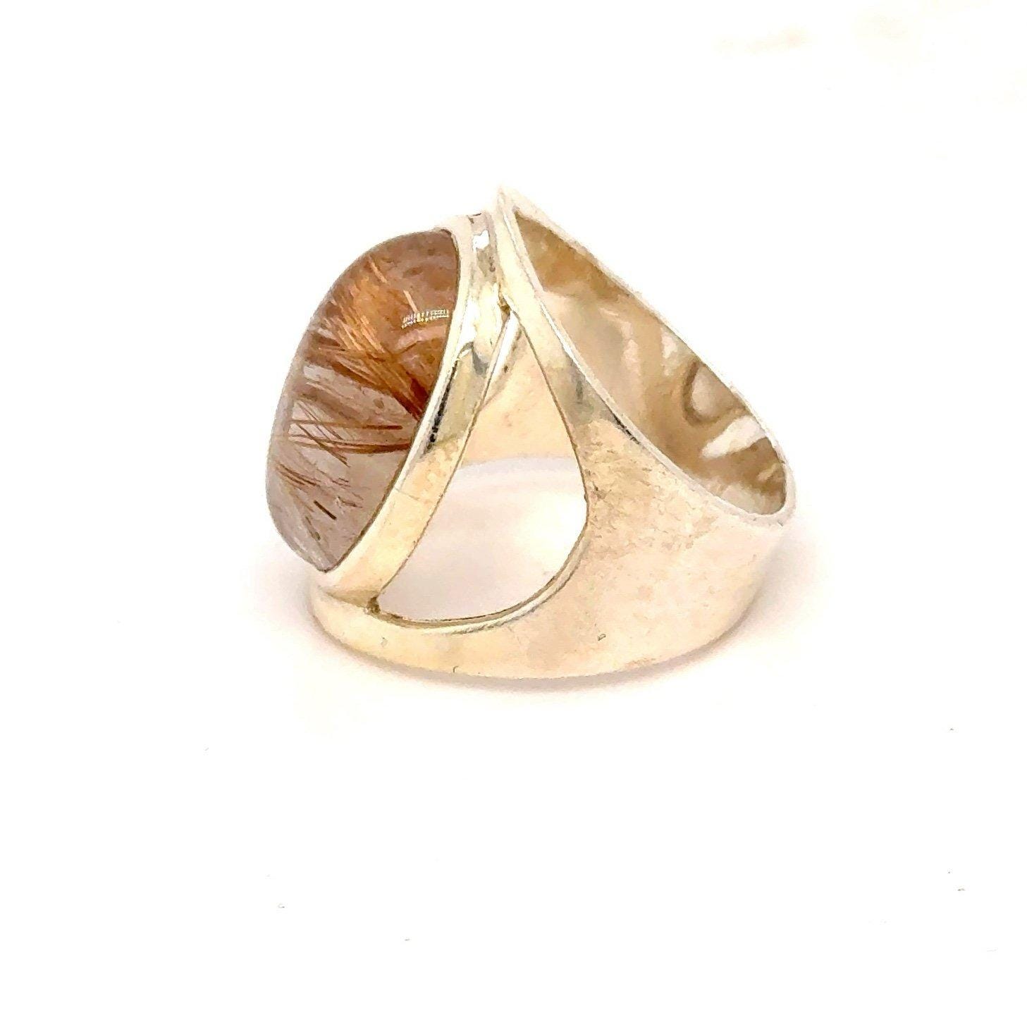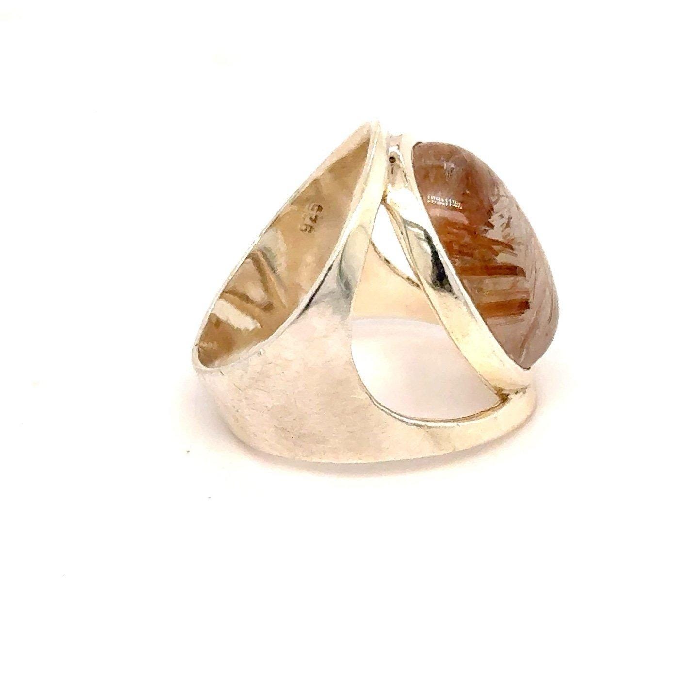 Sterling Silver 925 Brown Oval Stone Ring.