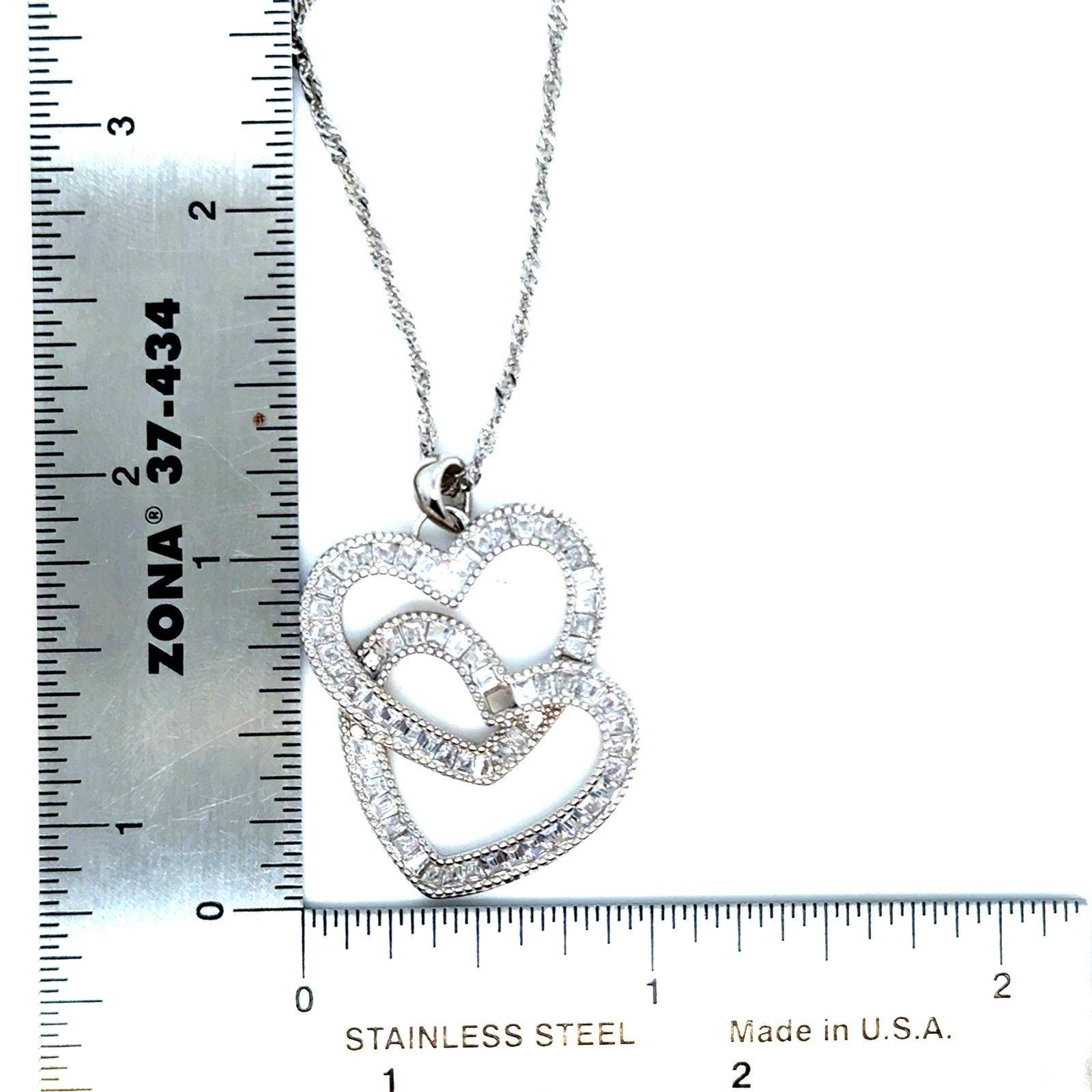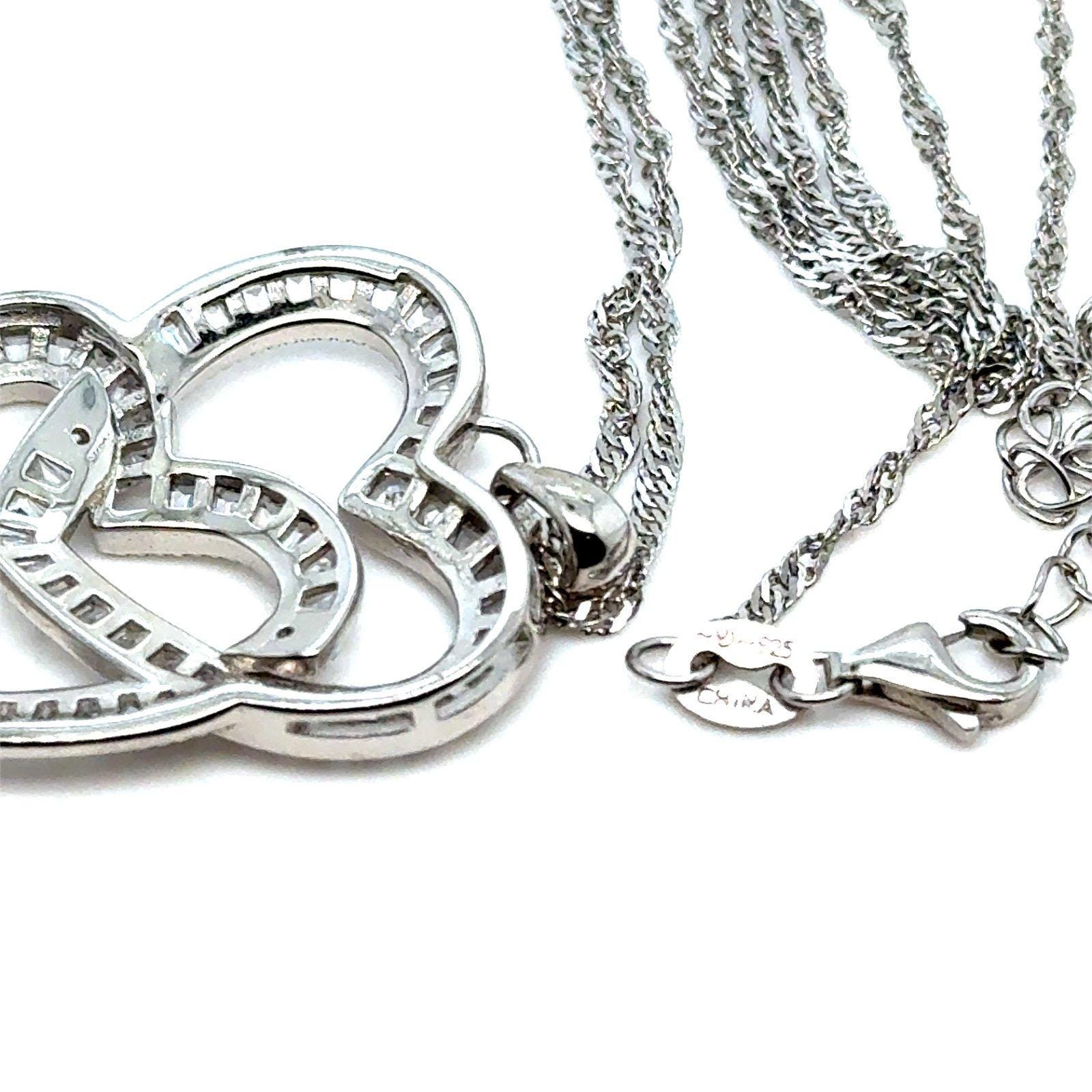 Sterling Silver Baguette Cz Interlink Heart Necklace.