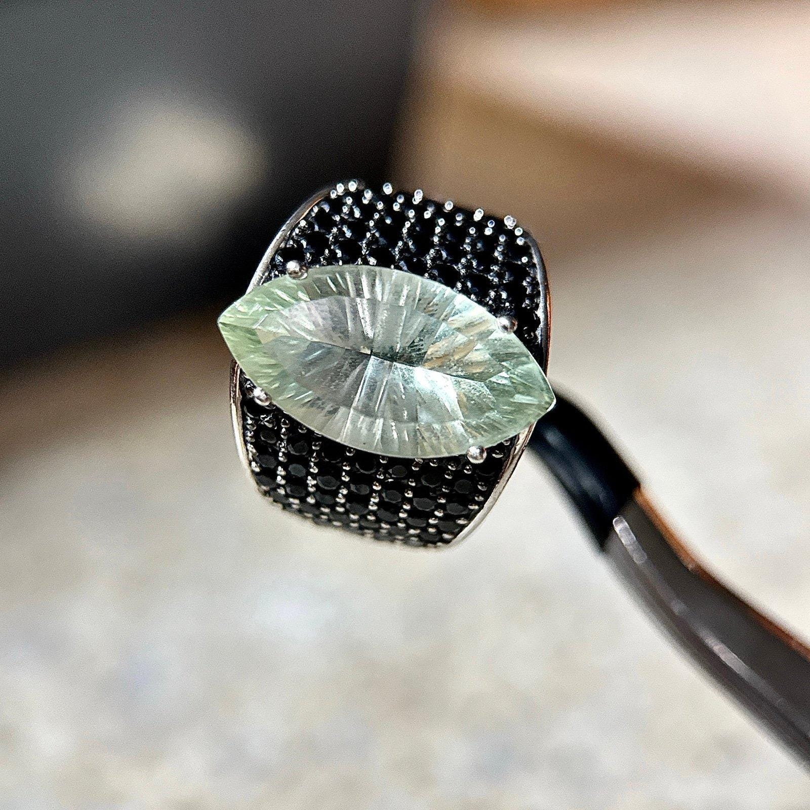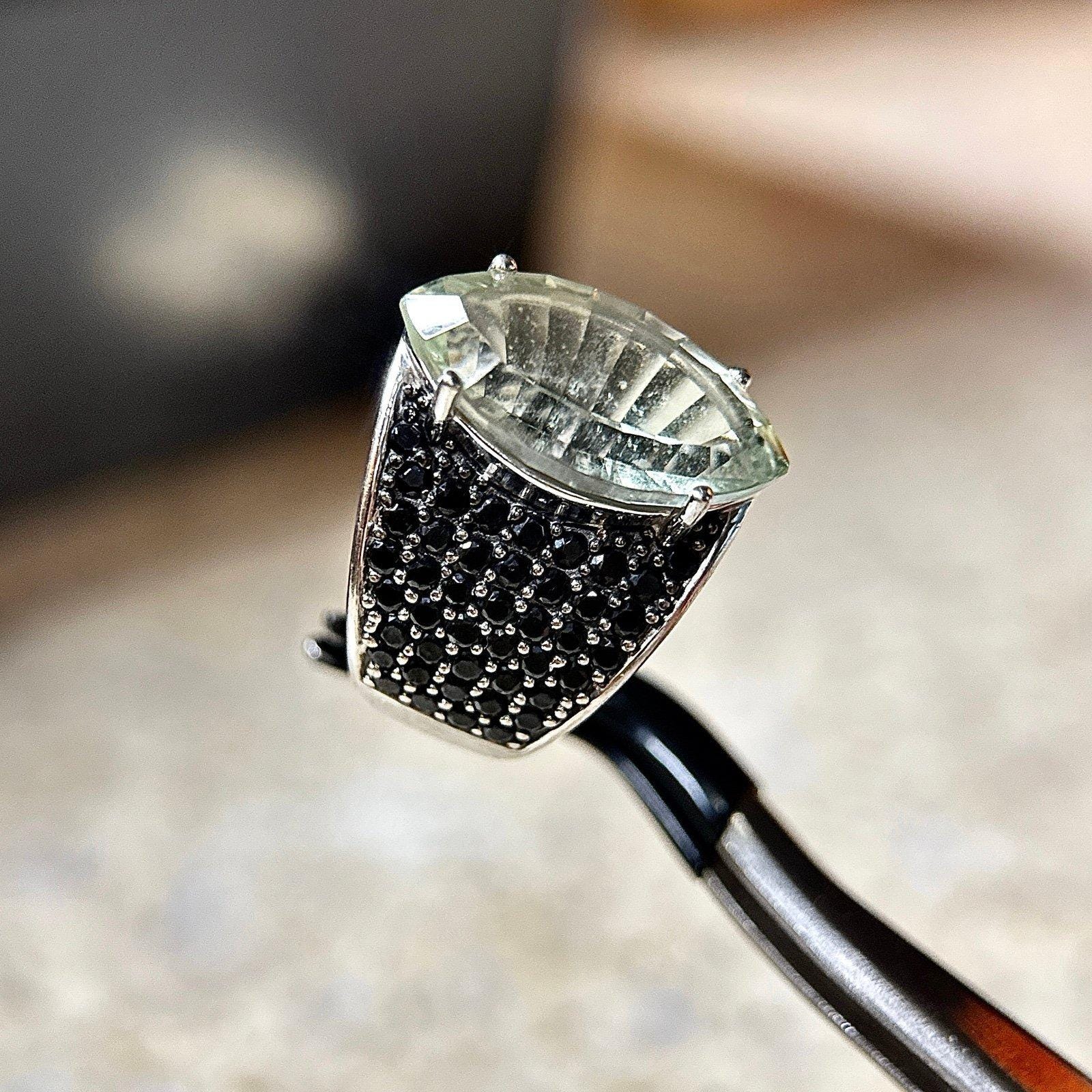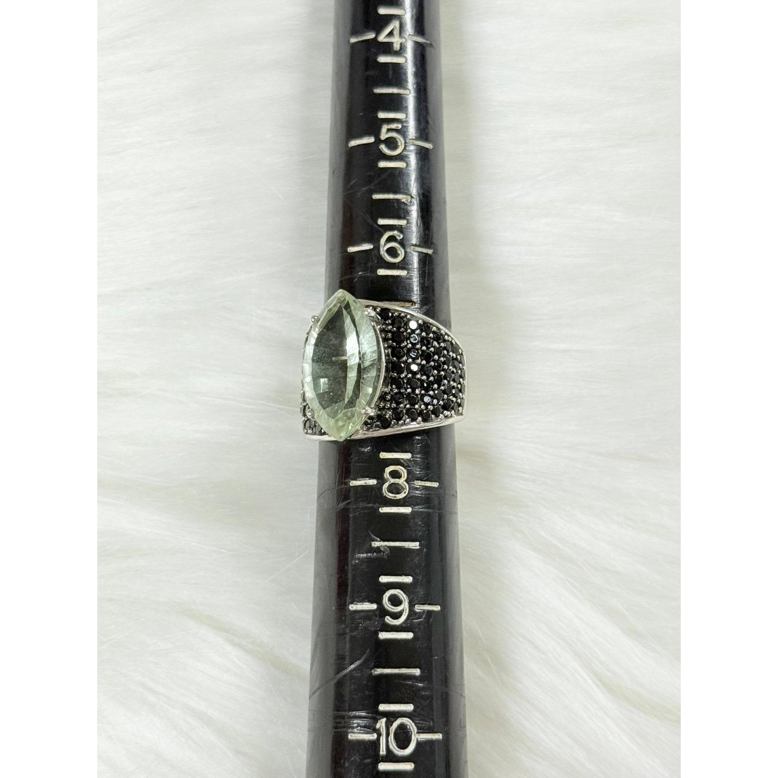 Sterling Silver 925 Green with Black Side Stones Ring. Stunning piece!!