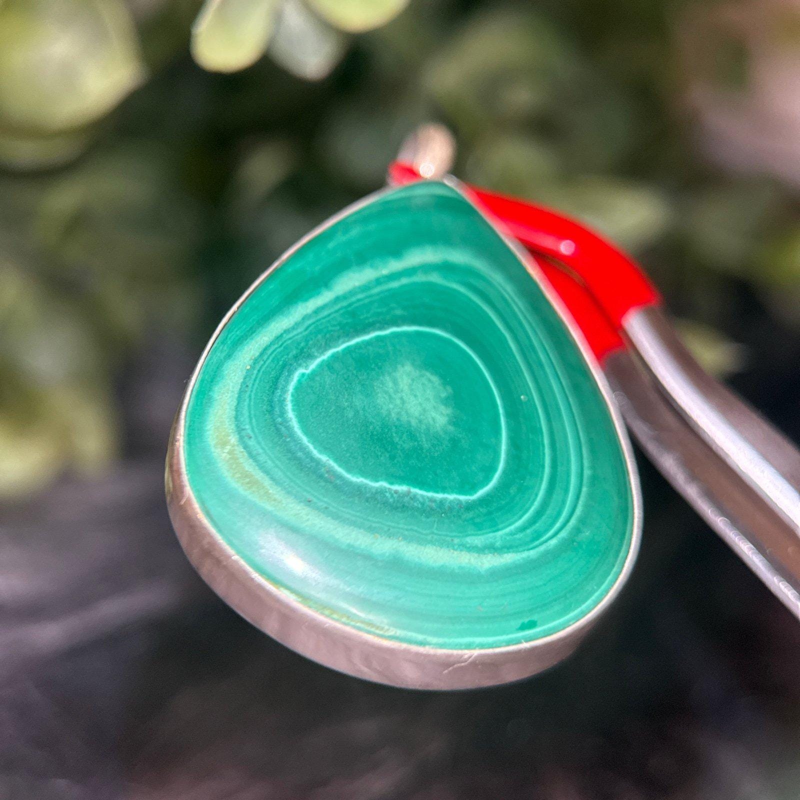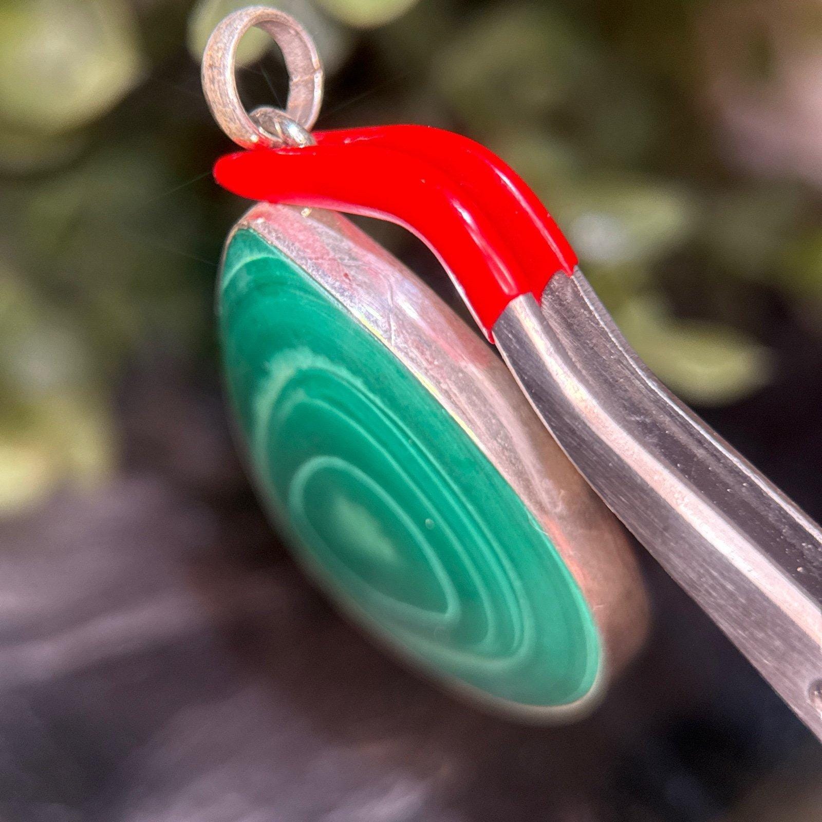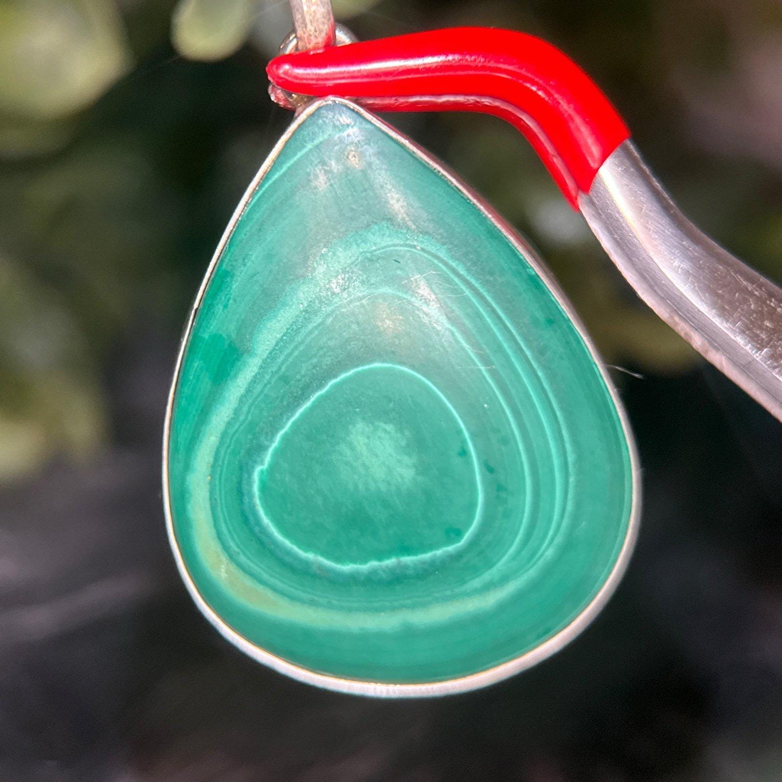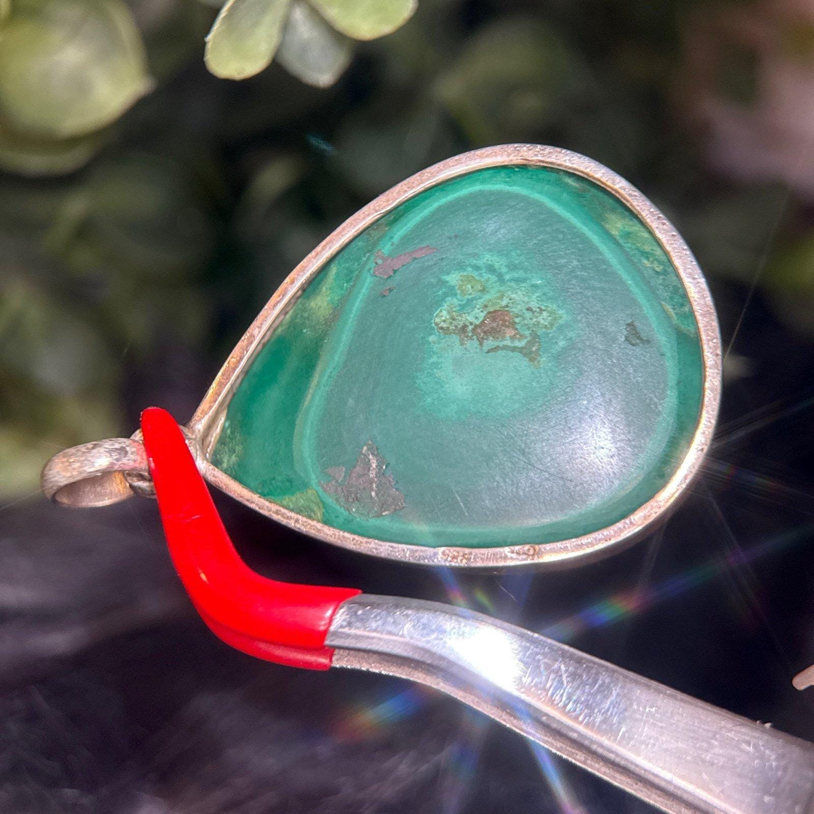 Sterling Silver 925 Large Malachite Pendant.