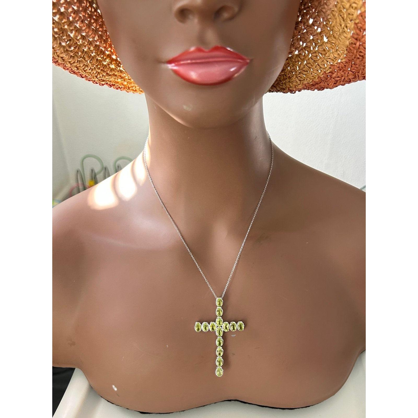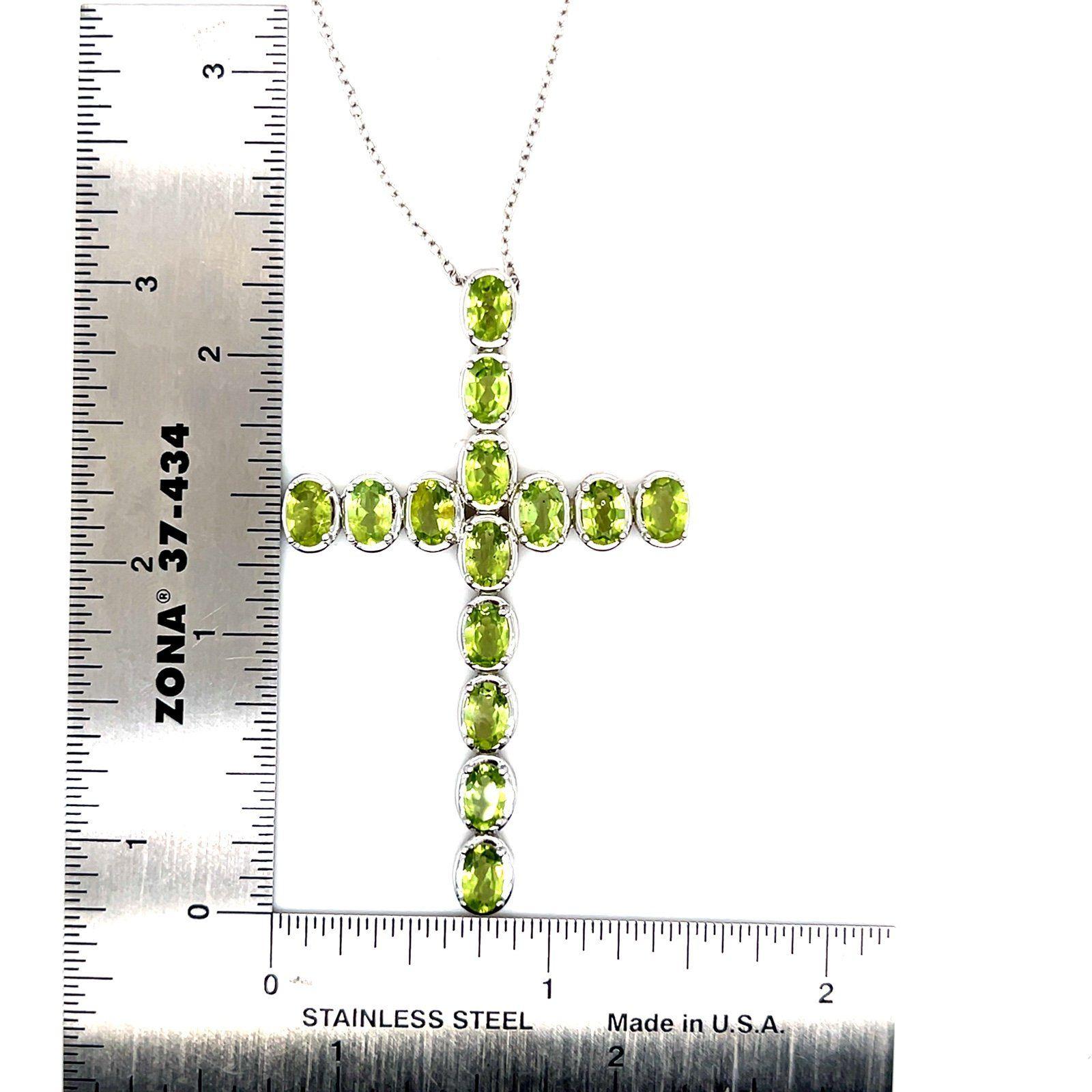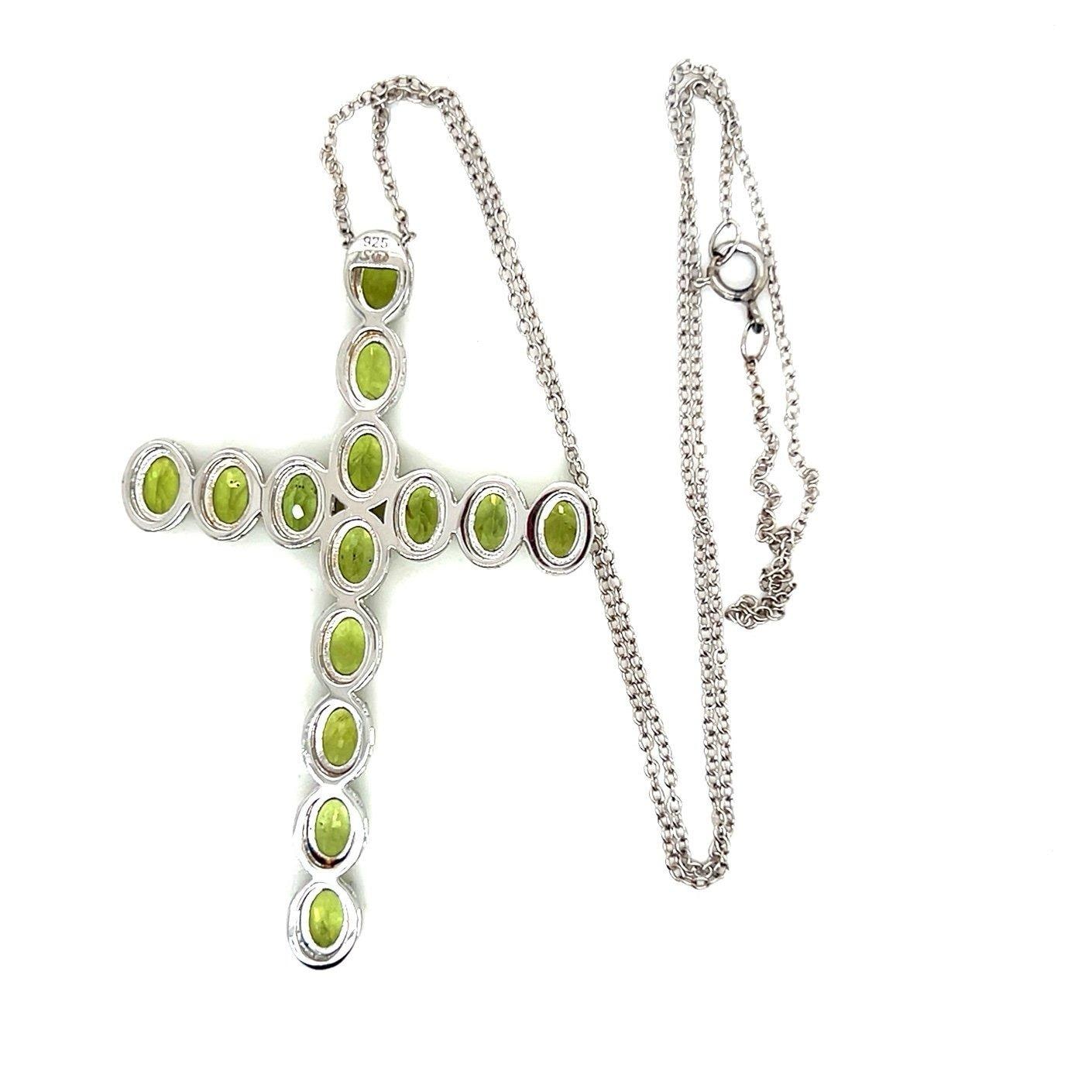 Sterling Silver 925 Large Cross Peridot Necklace.