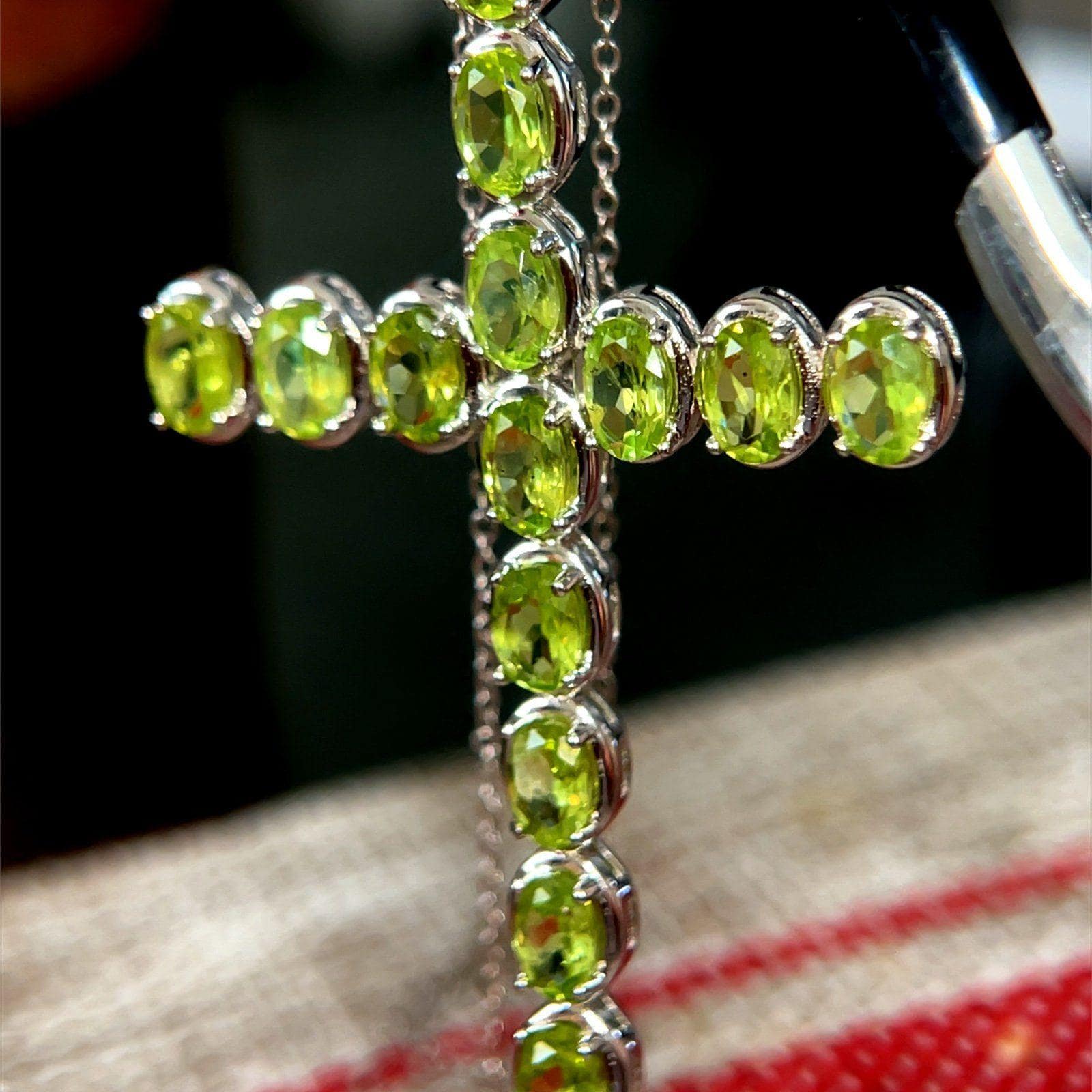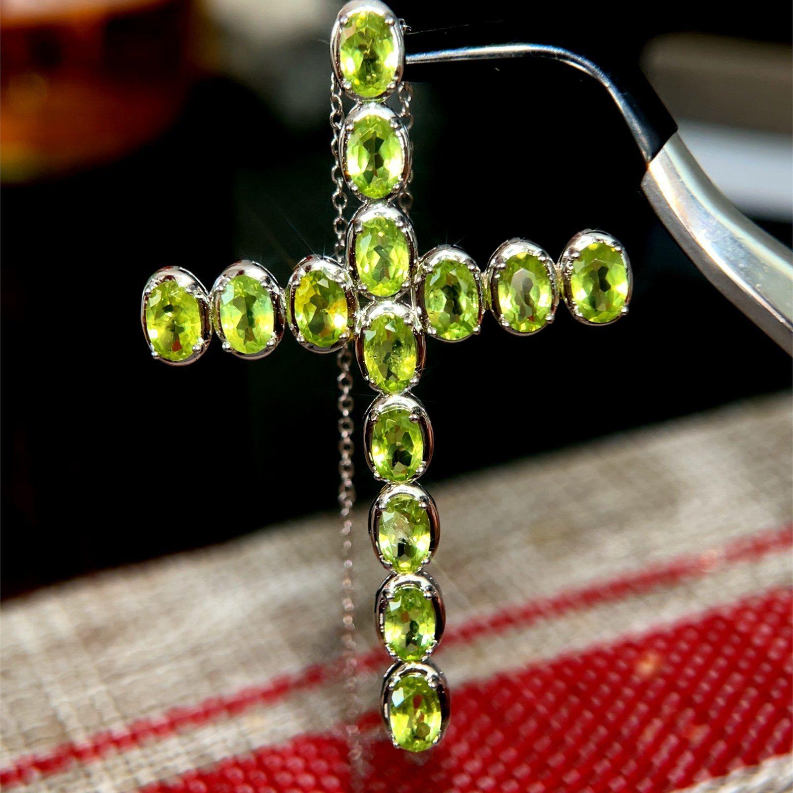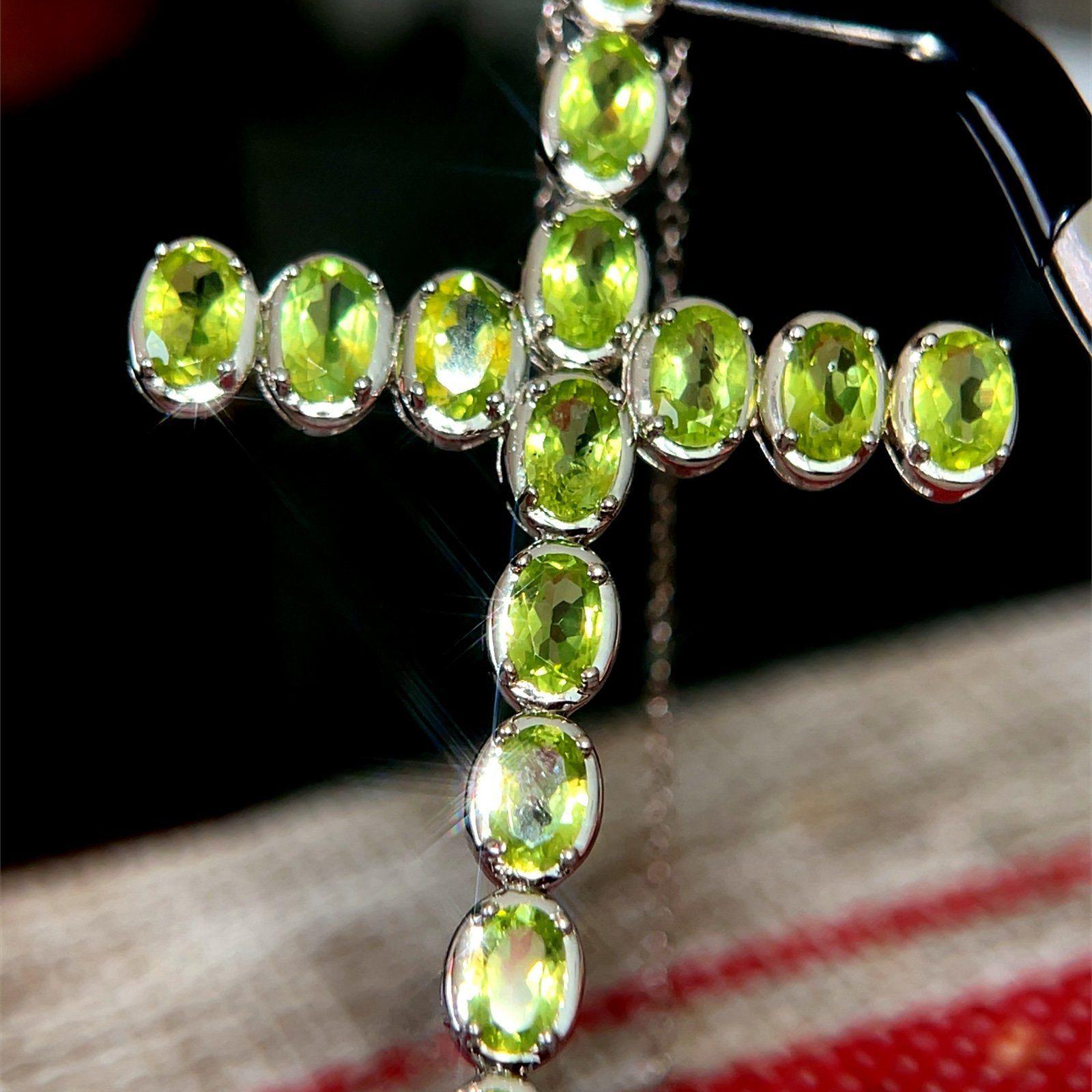Sterling Silver 925 Large Cross Peridot Necklace.