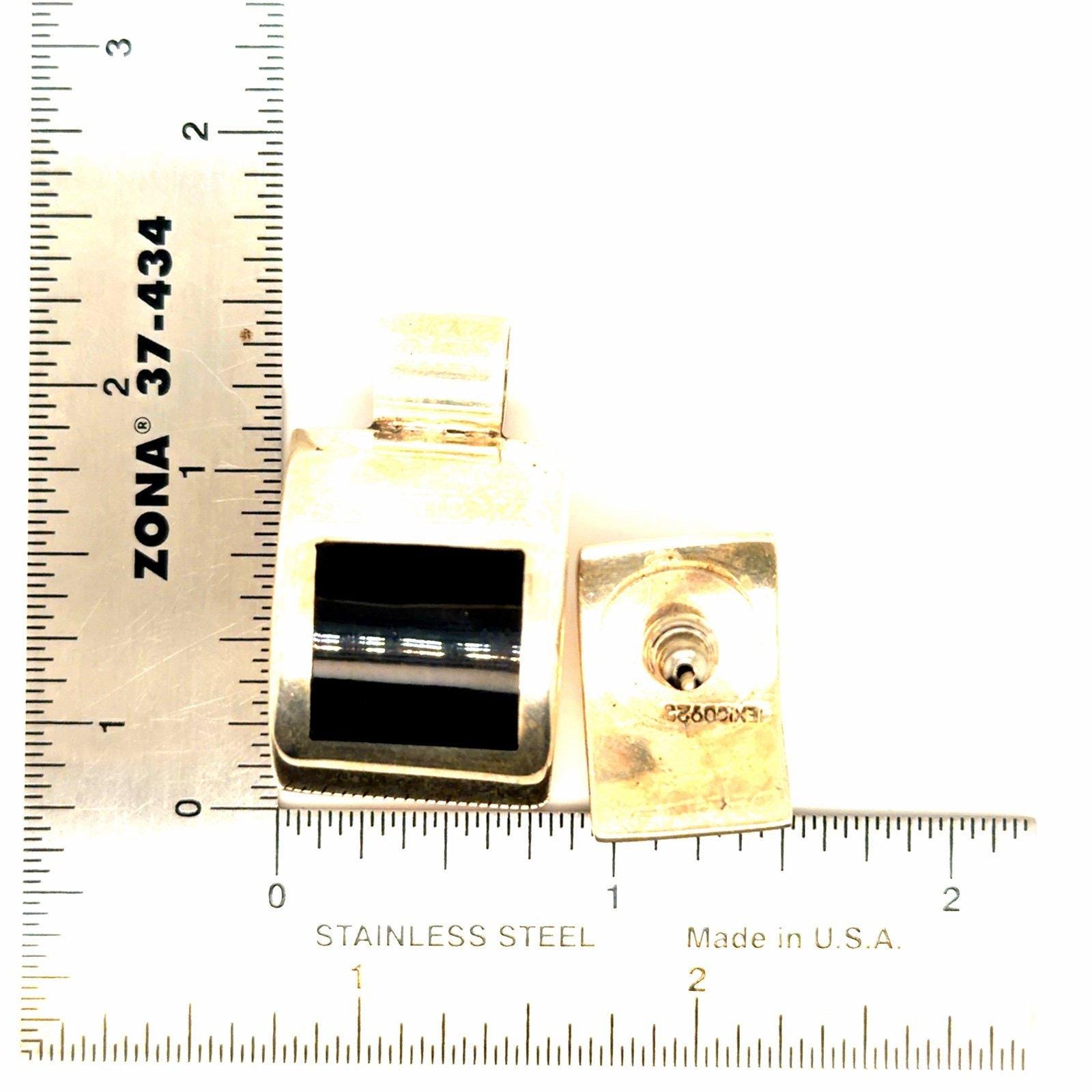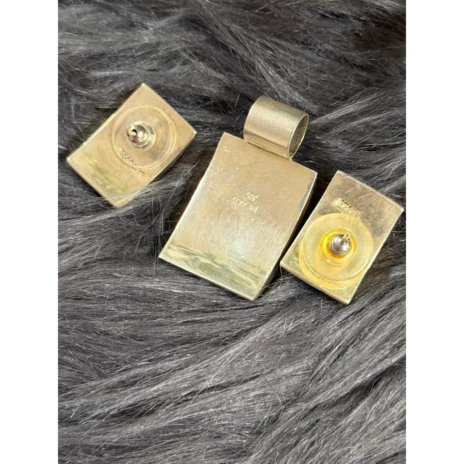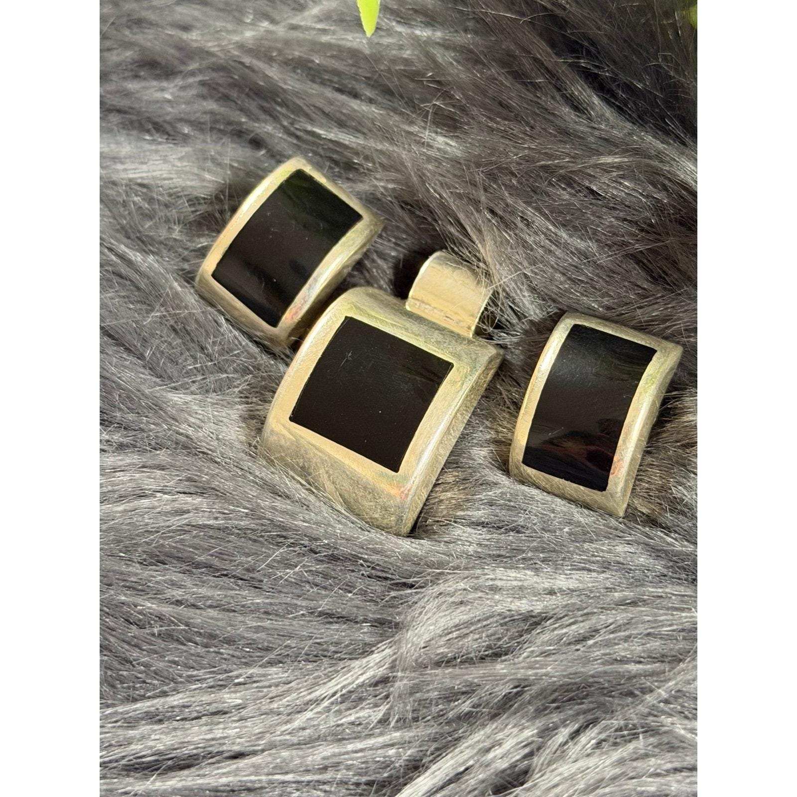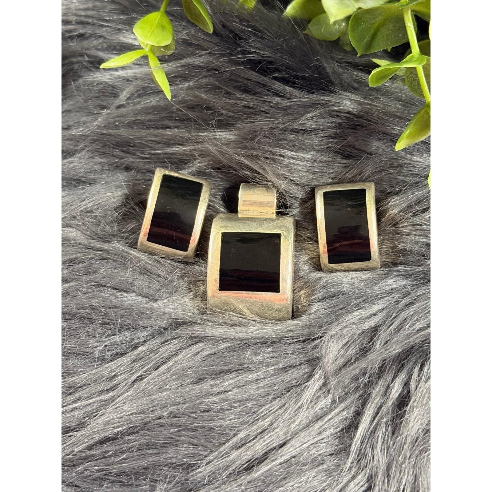 Sterling Silver 925 Mexico Black Square Pendant & Earrings Set.