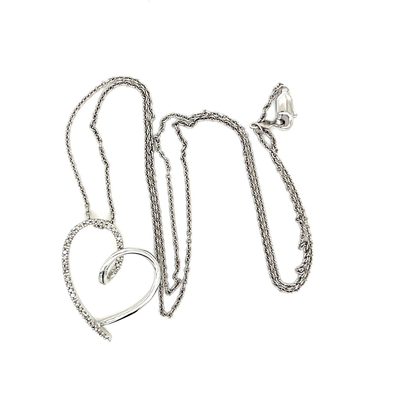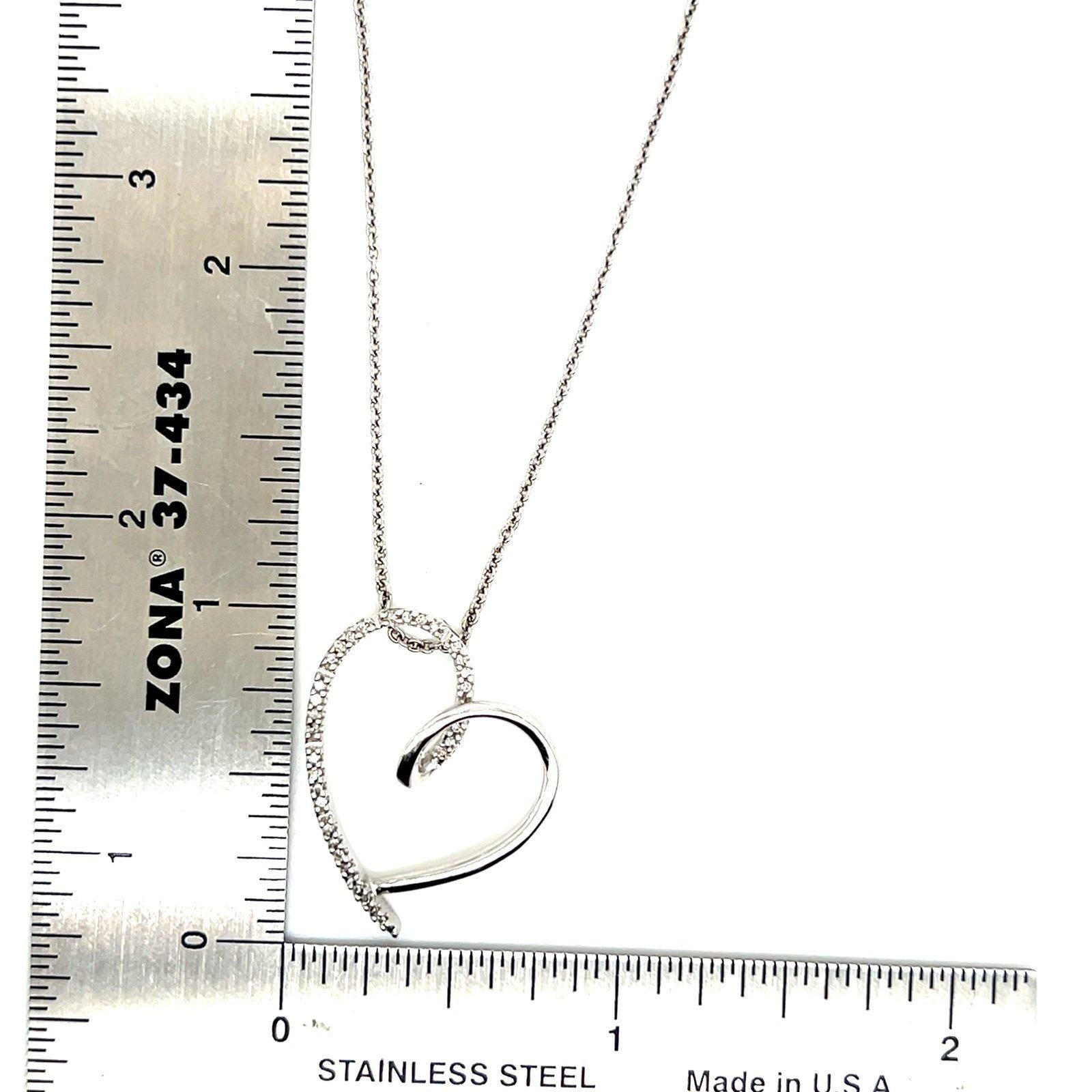 Sterling Silver 925 Pave Diamonds Heart Necklace.