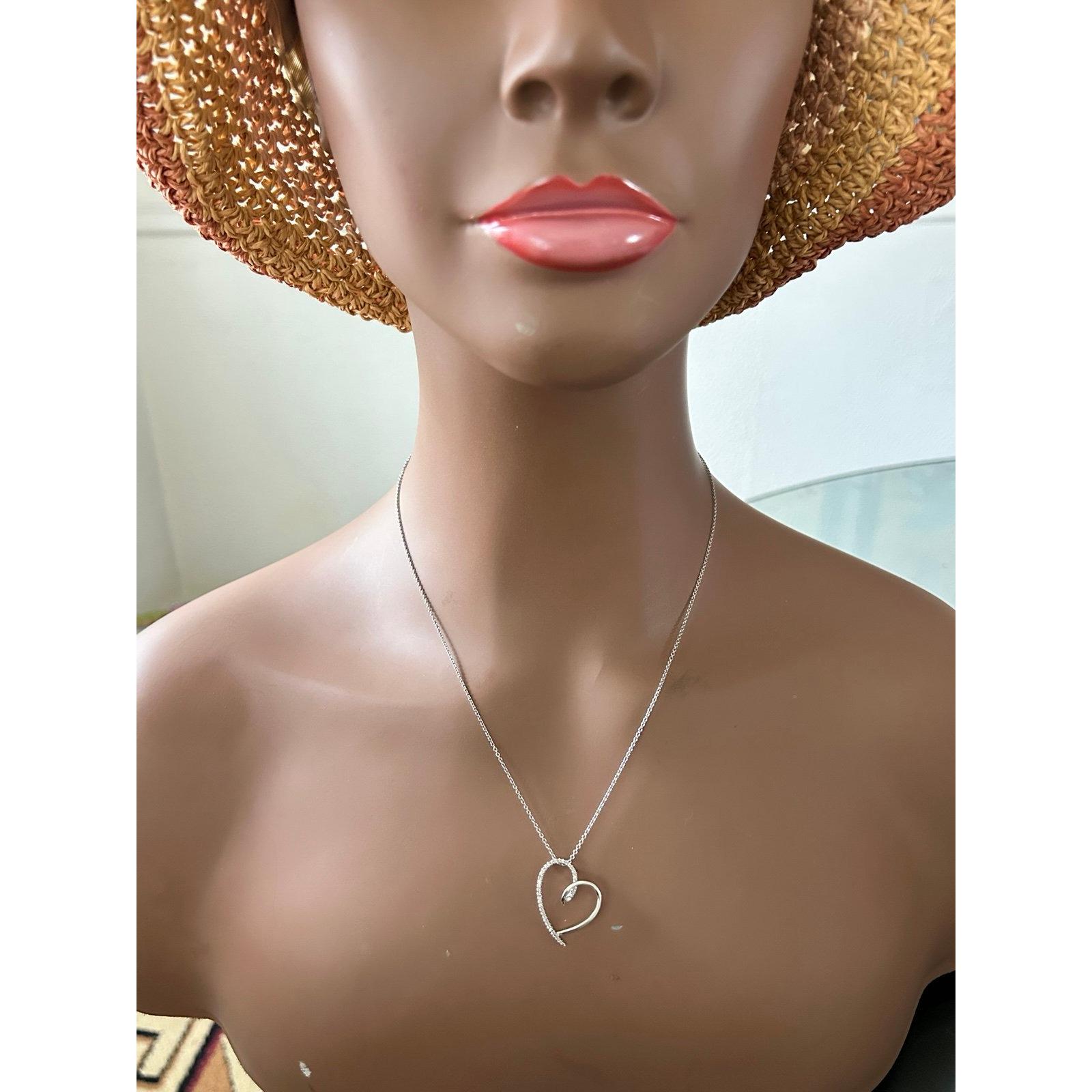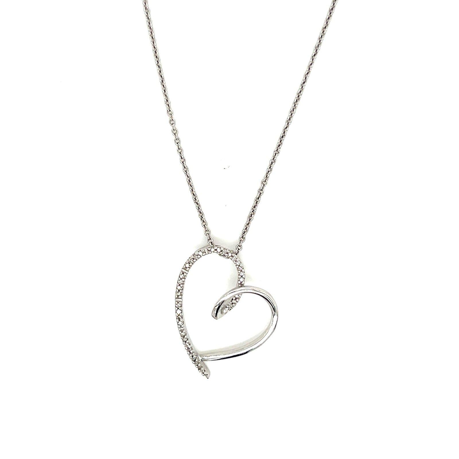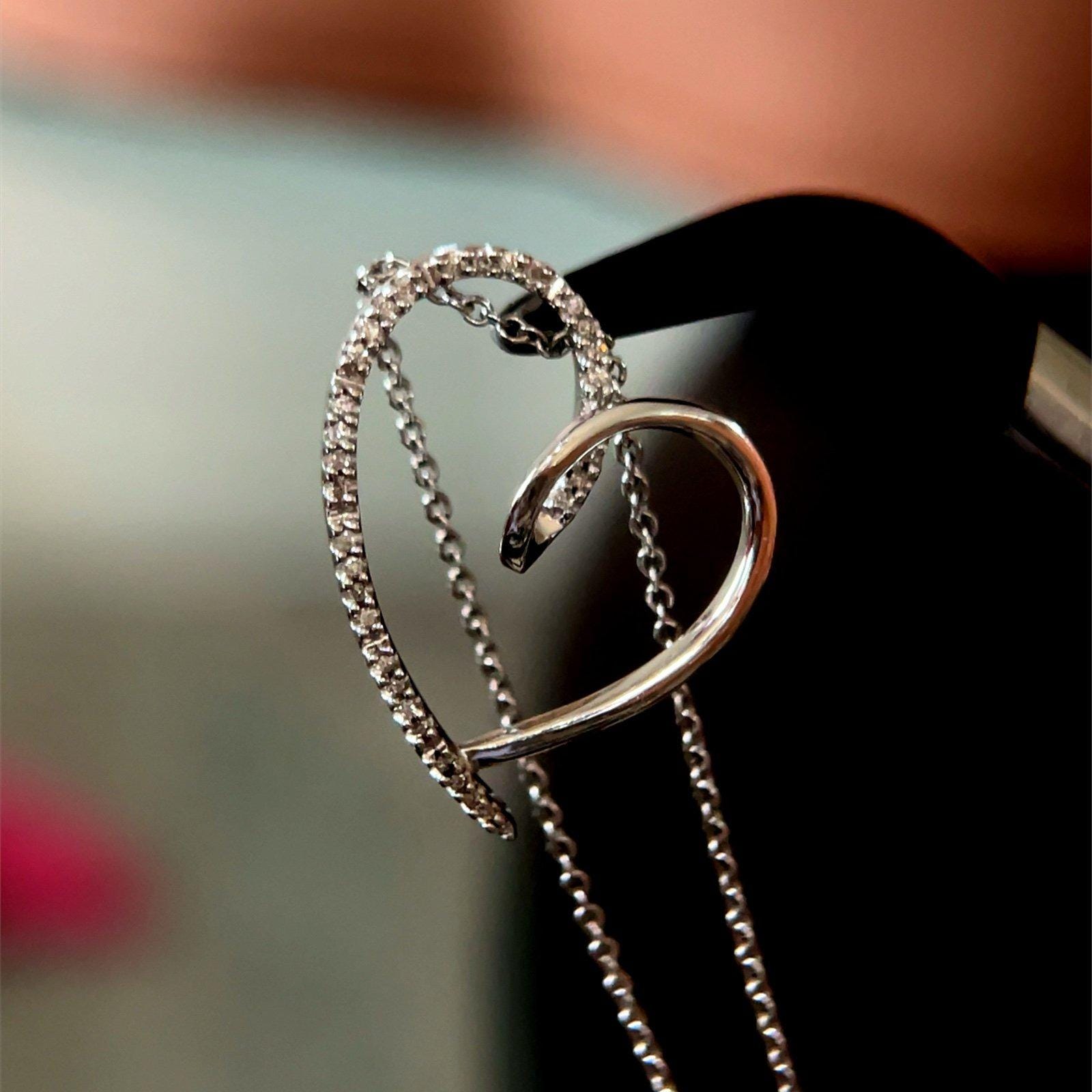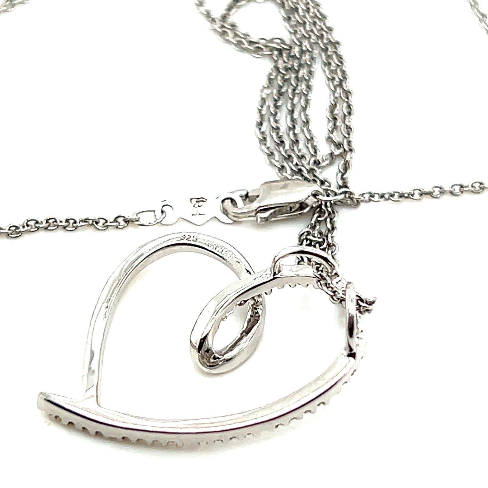Sterling Silver 925 Pave Diamonds Heart Necklace.