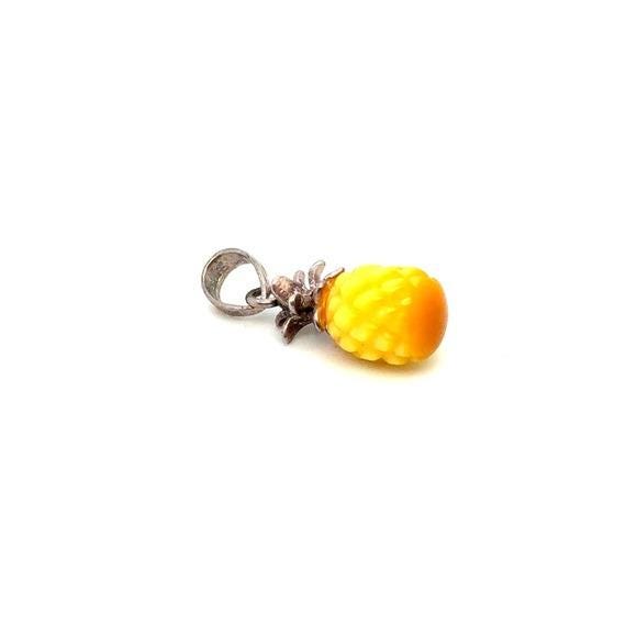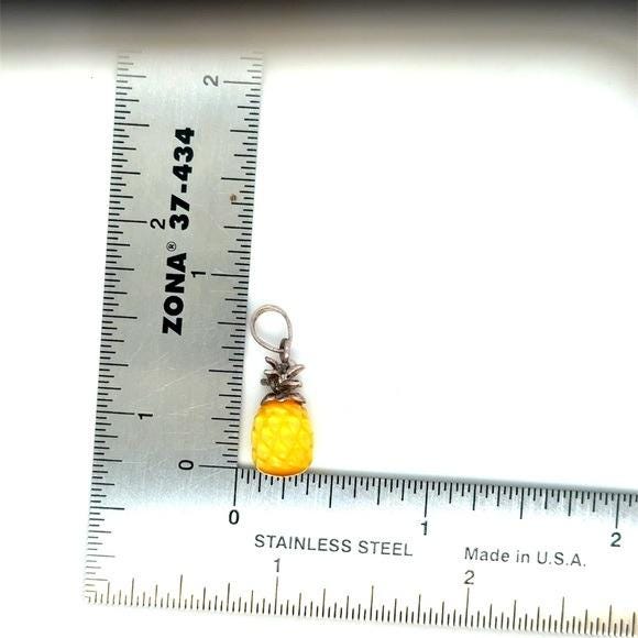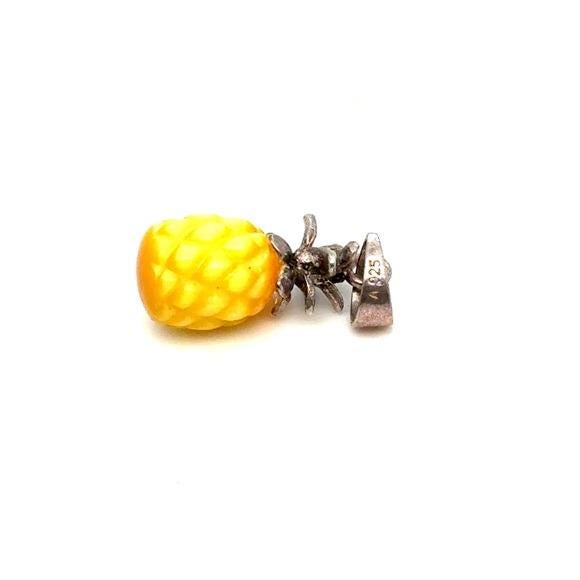 Bright yellow pineapple charm pendant with a sterling silver 925 bail. Lightweight and playful piece that adds a tropical touch to any necklace. Perfect for everyday wear or as a cheerful gift. Includes yellow color and silver 925 accents.