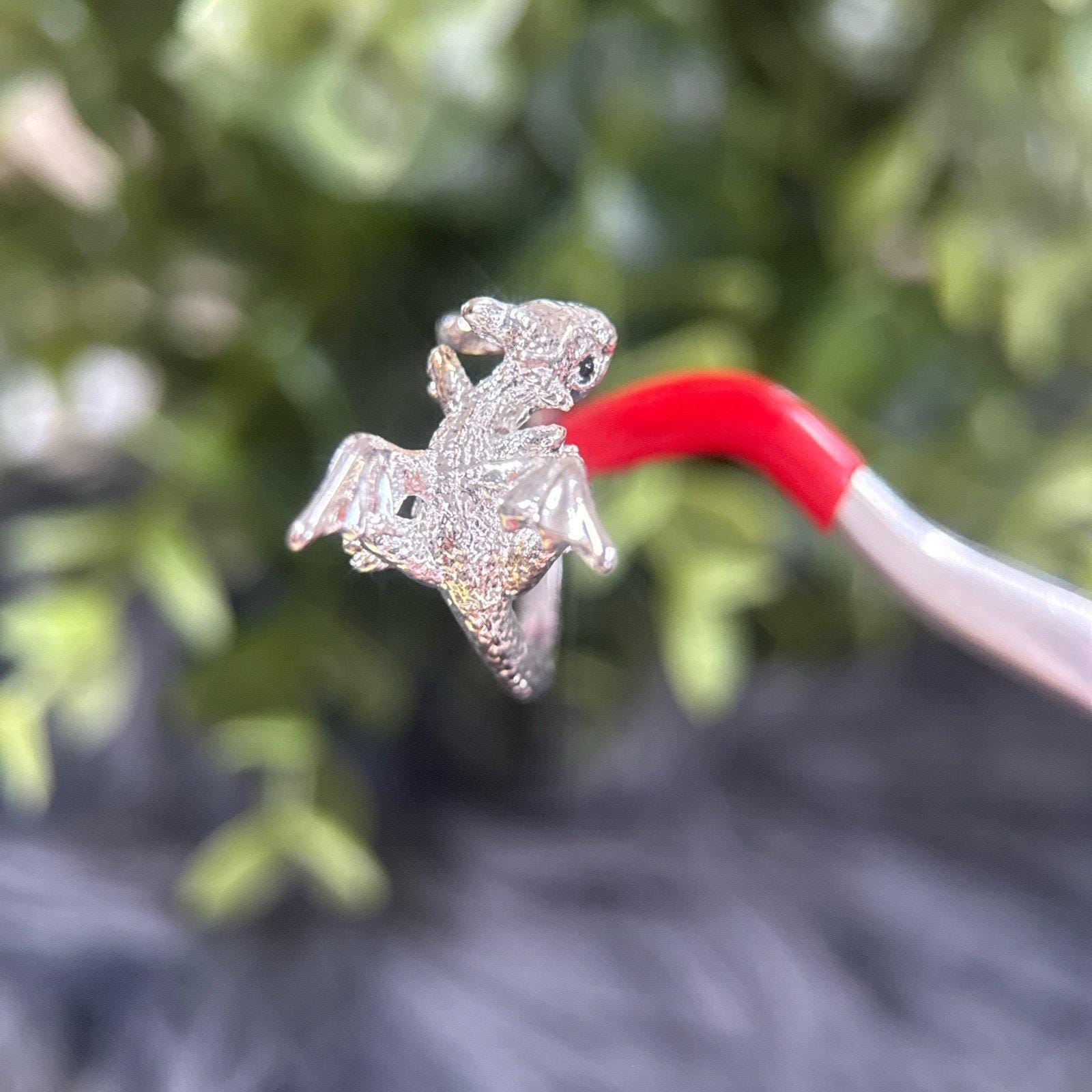 *Silver Baby Dragon Black Eyes Ring