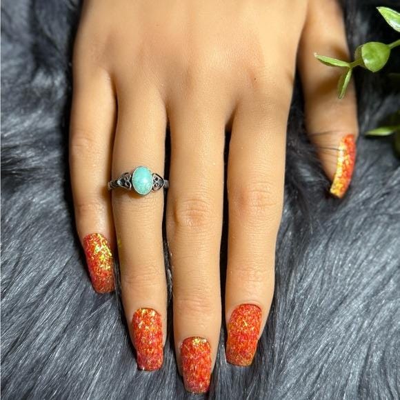 Be the first to review “Silver Turquoise Oval Ring with Heart Accents”