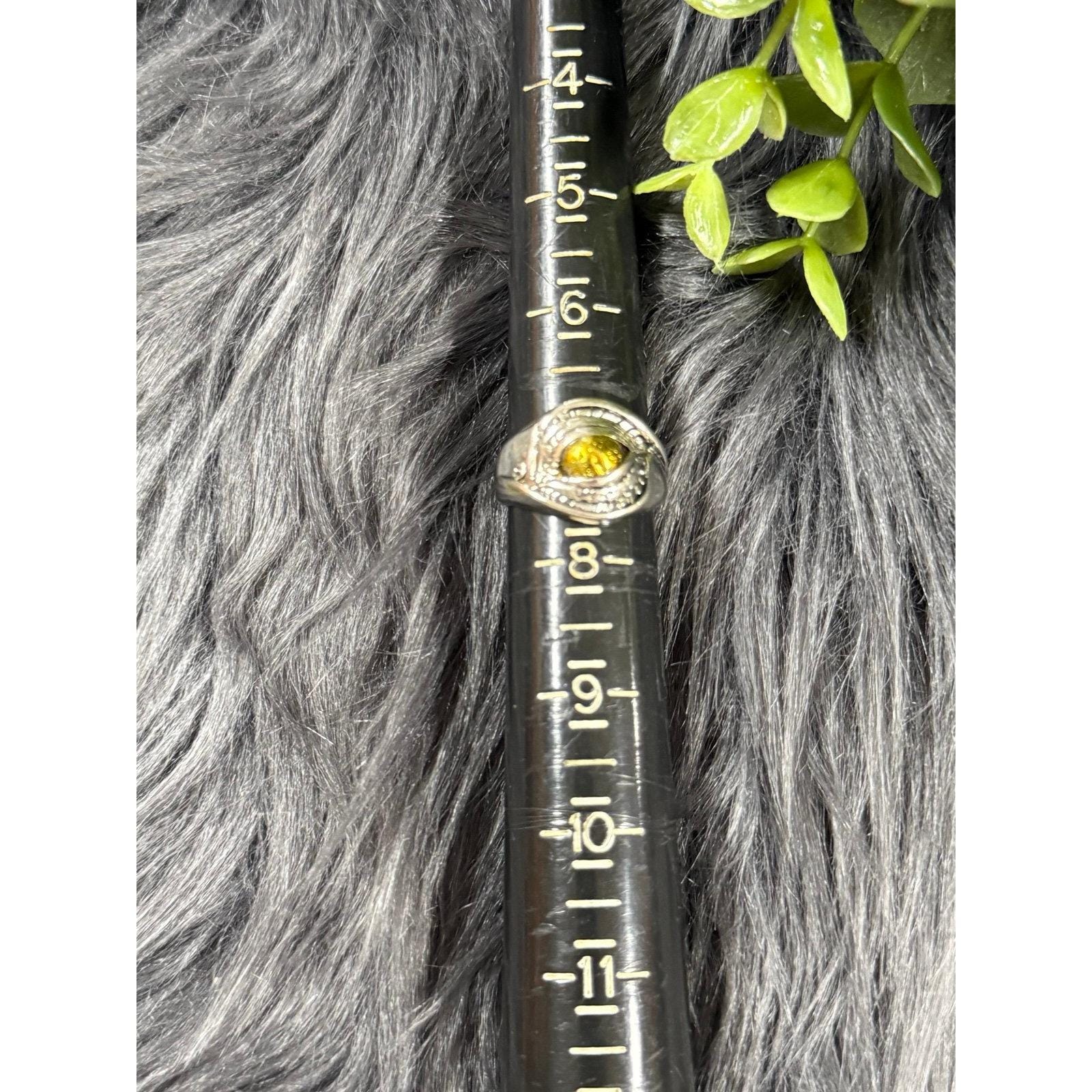 *Silver Yellow Eyeball Ring *Not real silver *Size 7 *Preowned