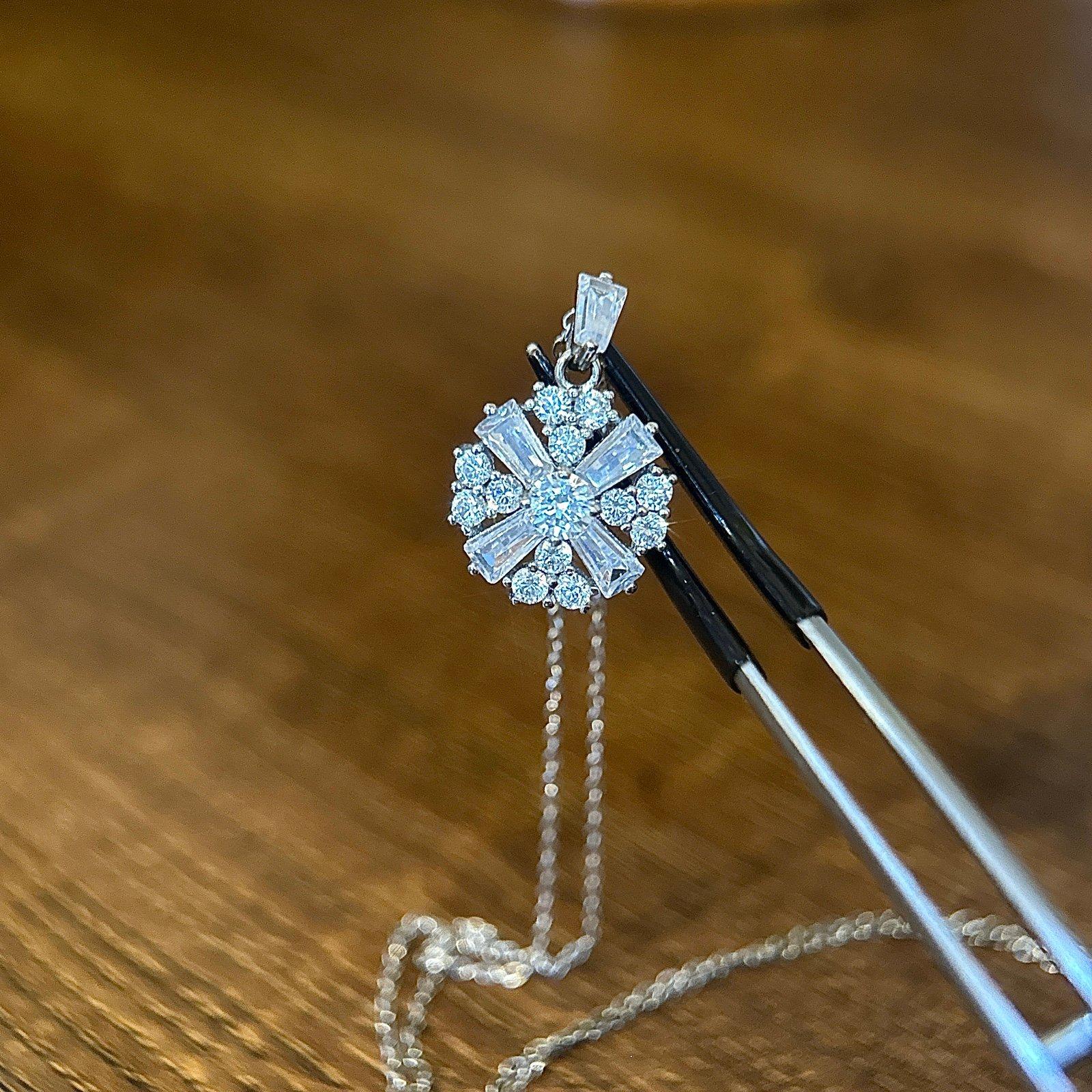 Snowflake 925 Silver Cz Pendant Necklace