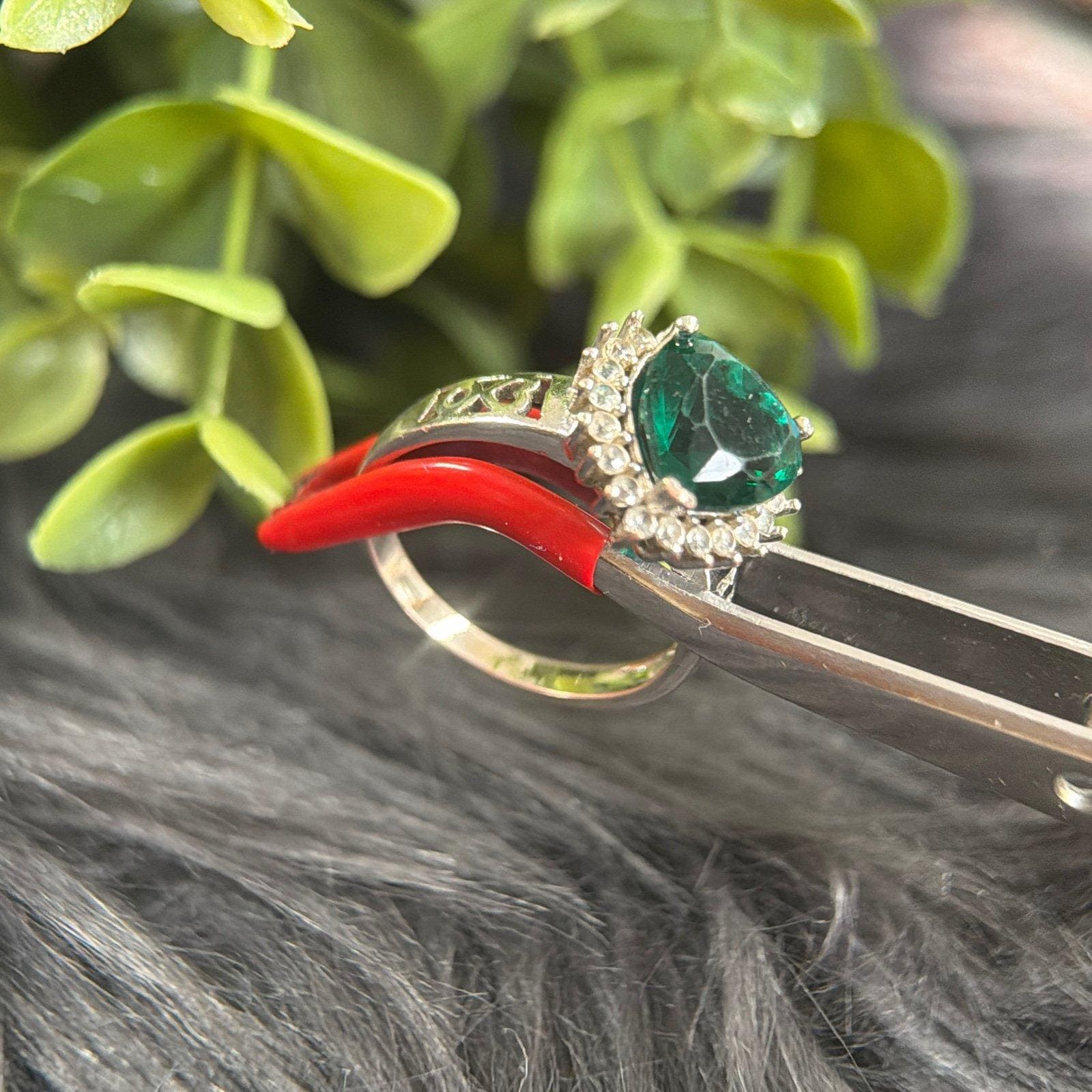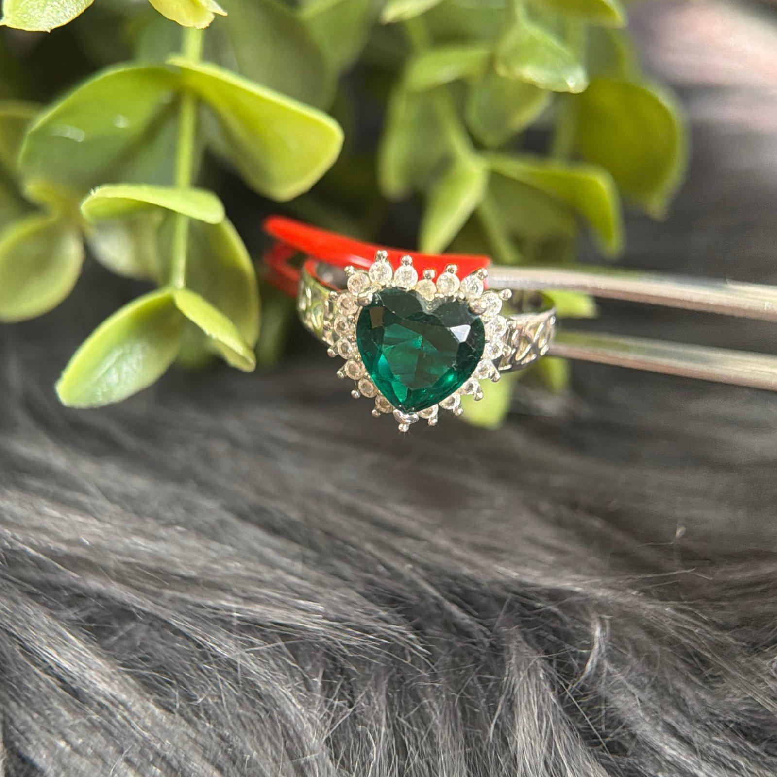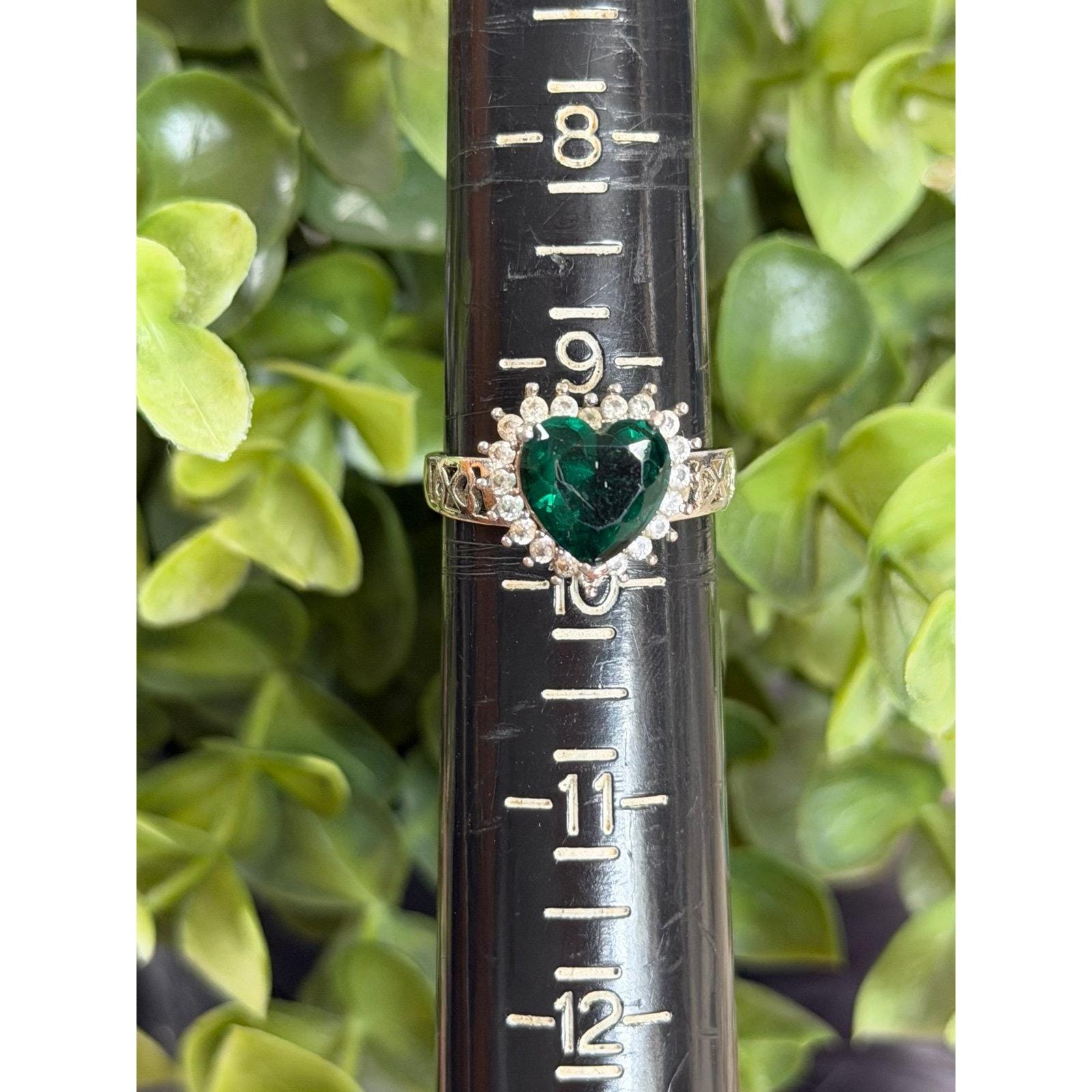 Signed 925 Heart Shaped Green Stone Ring.