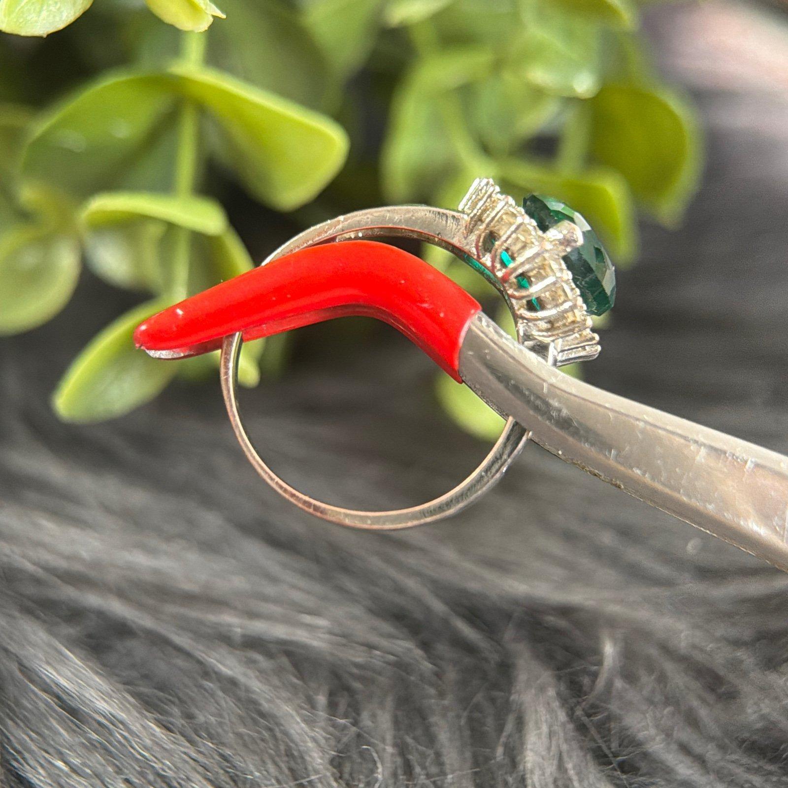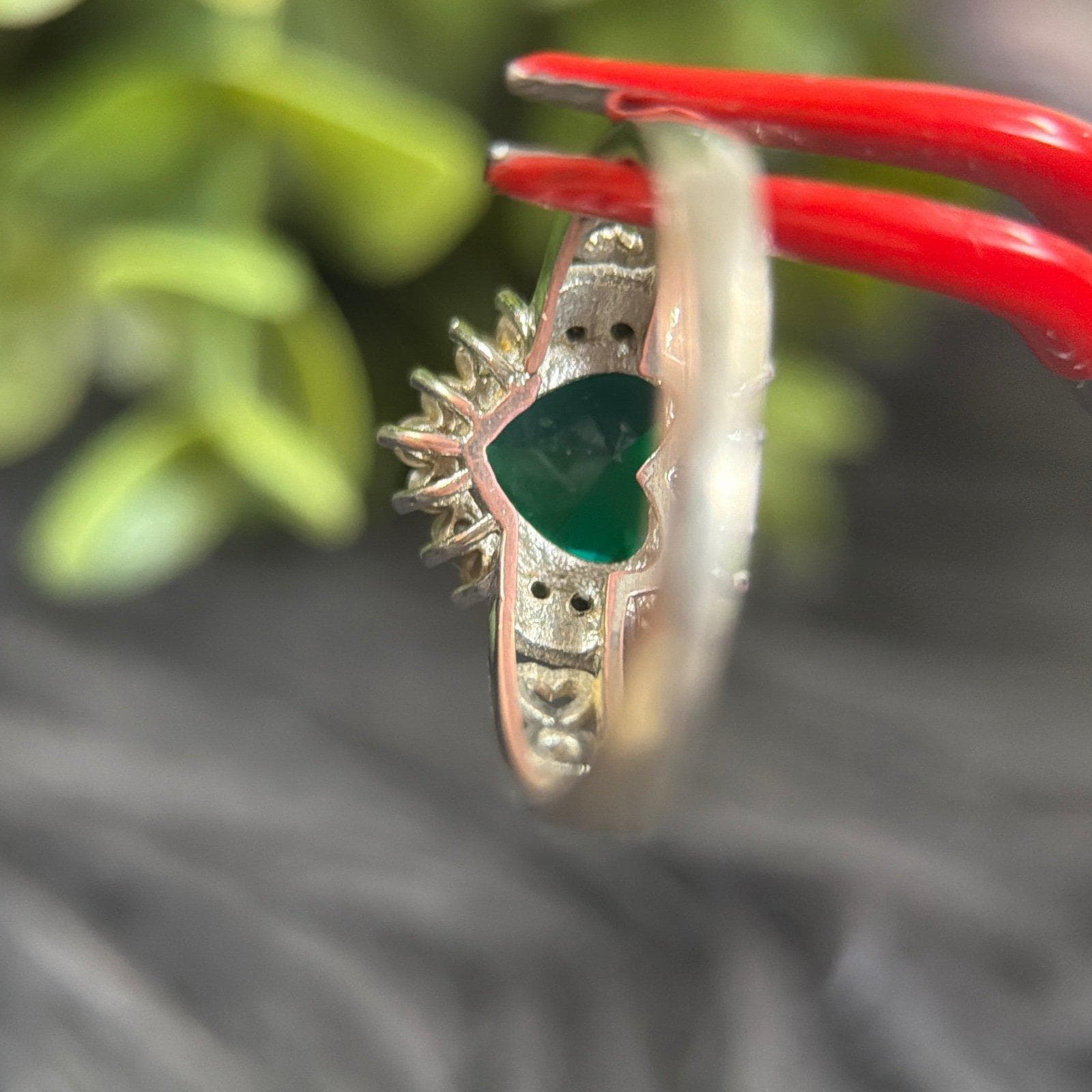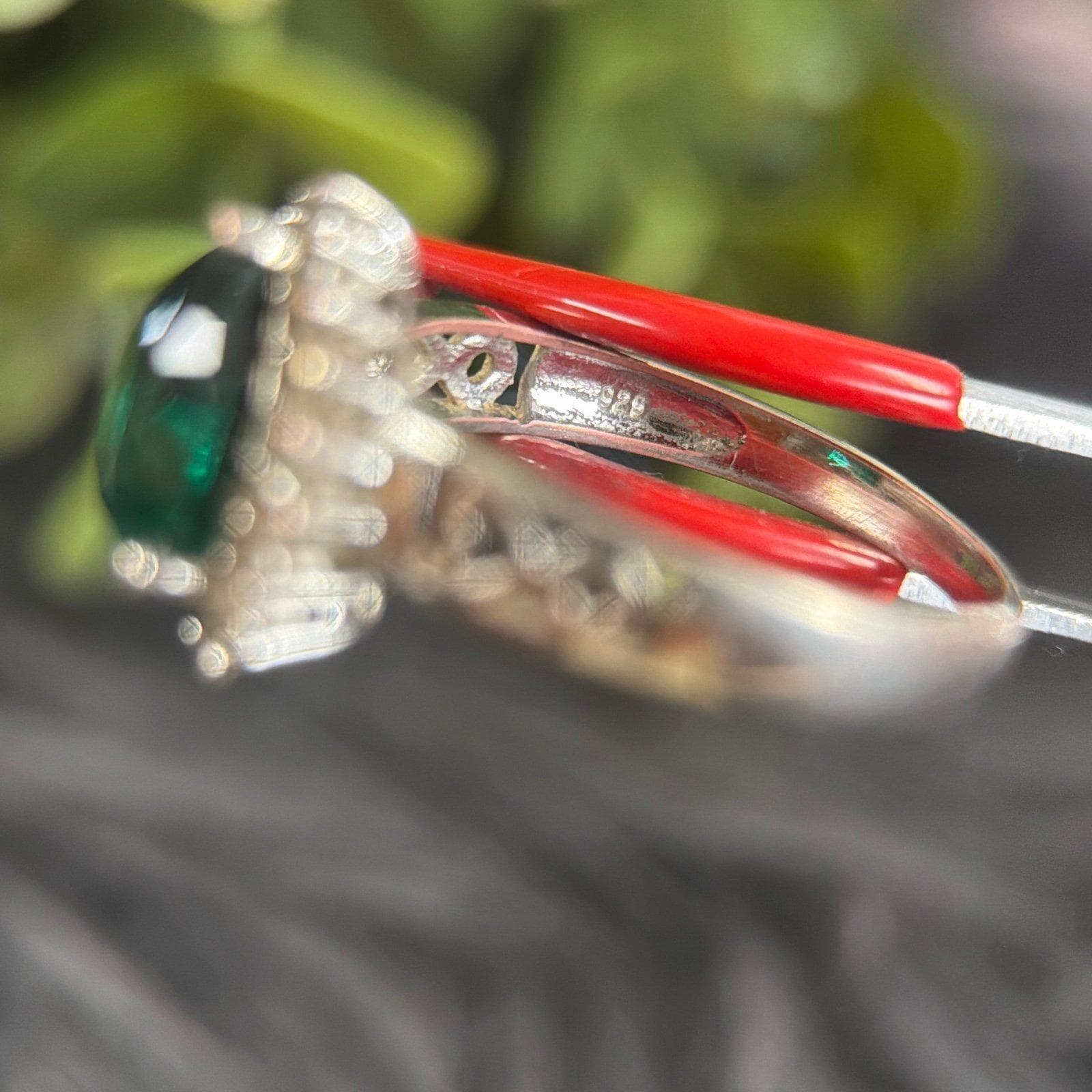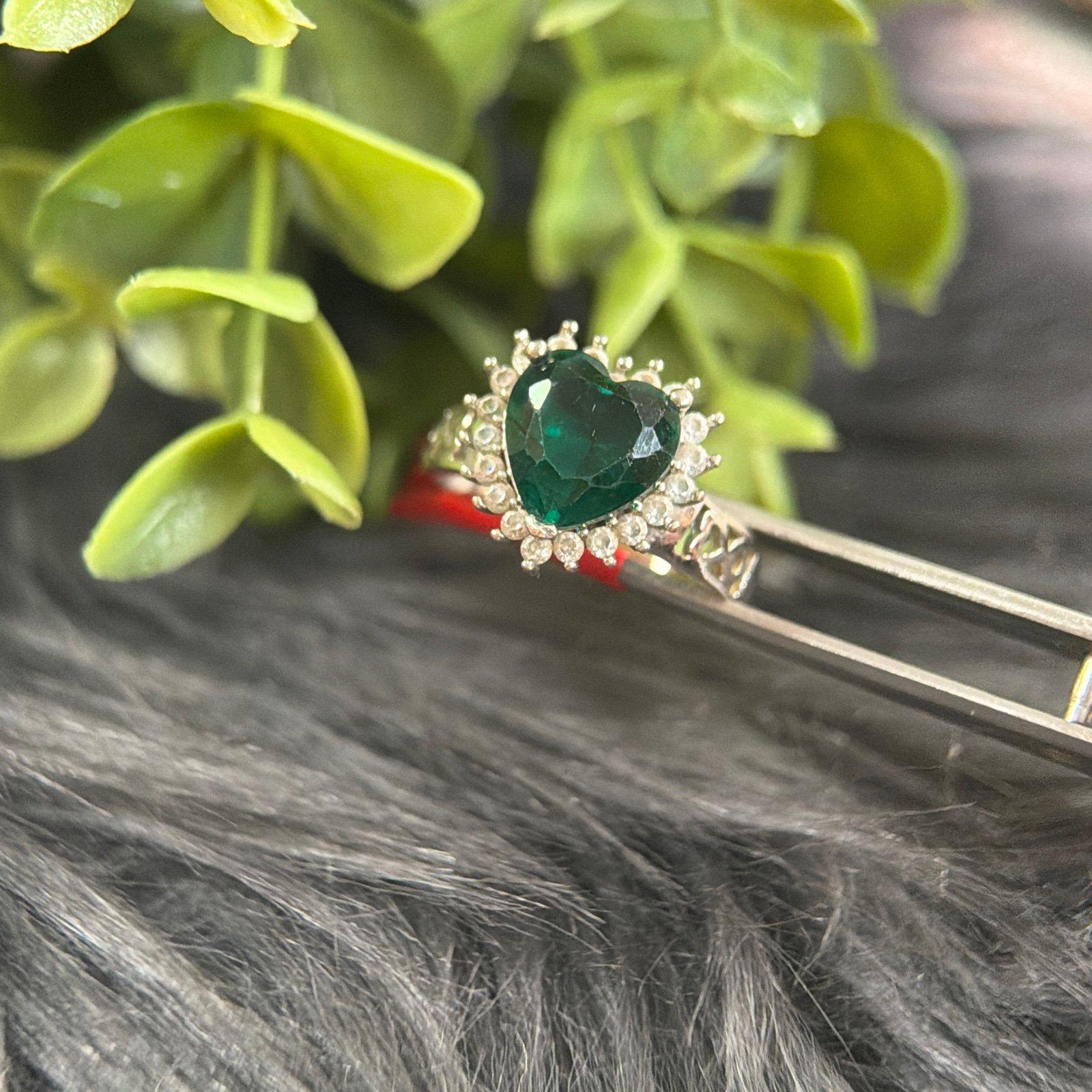 Signed 925 Heart Shaped Green Stone Ring.
