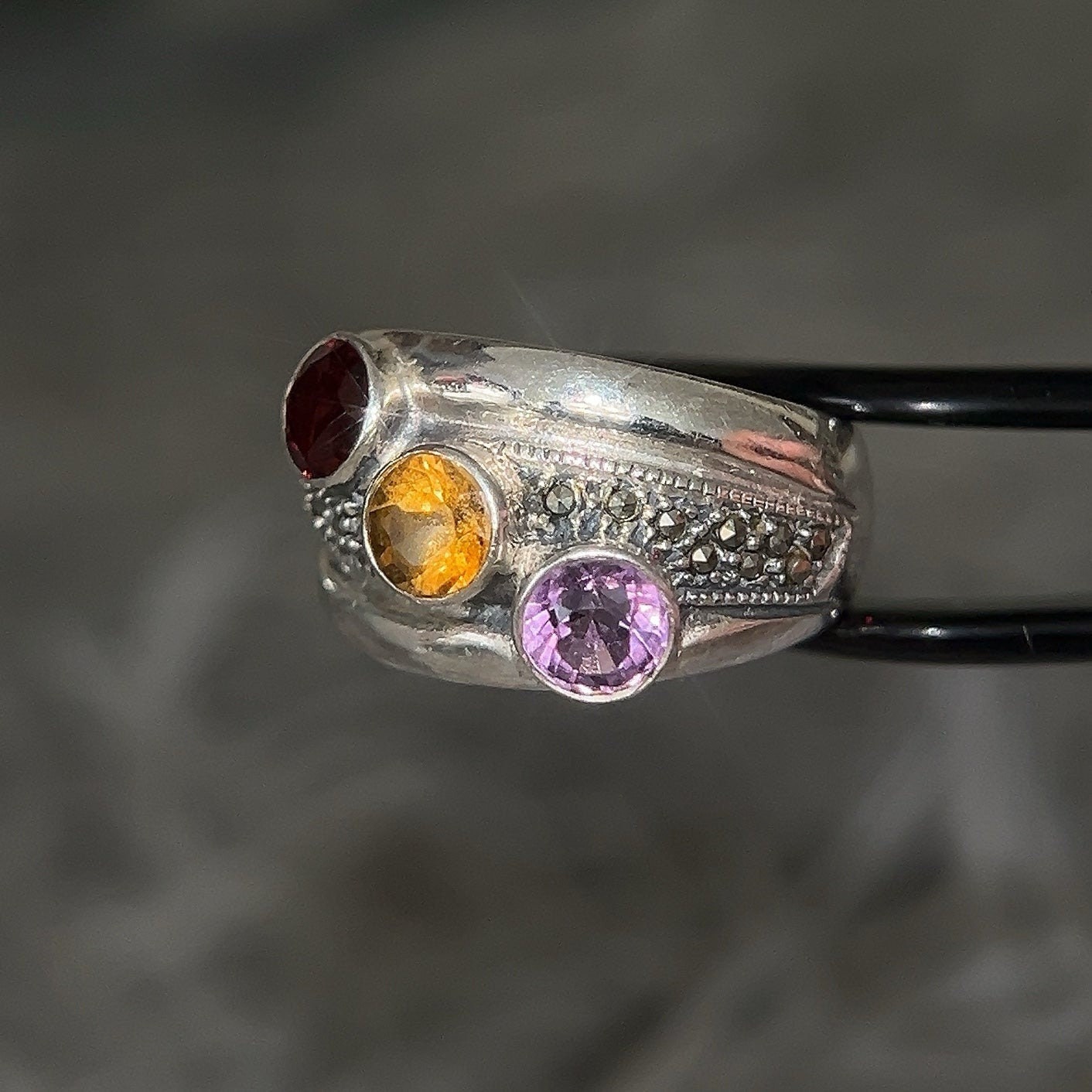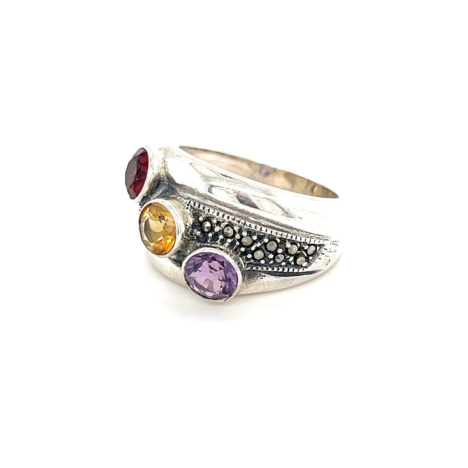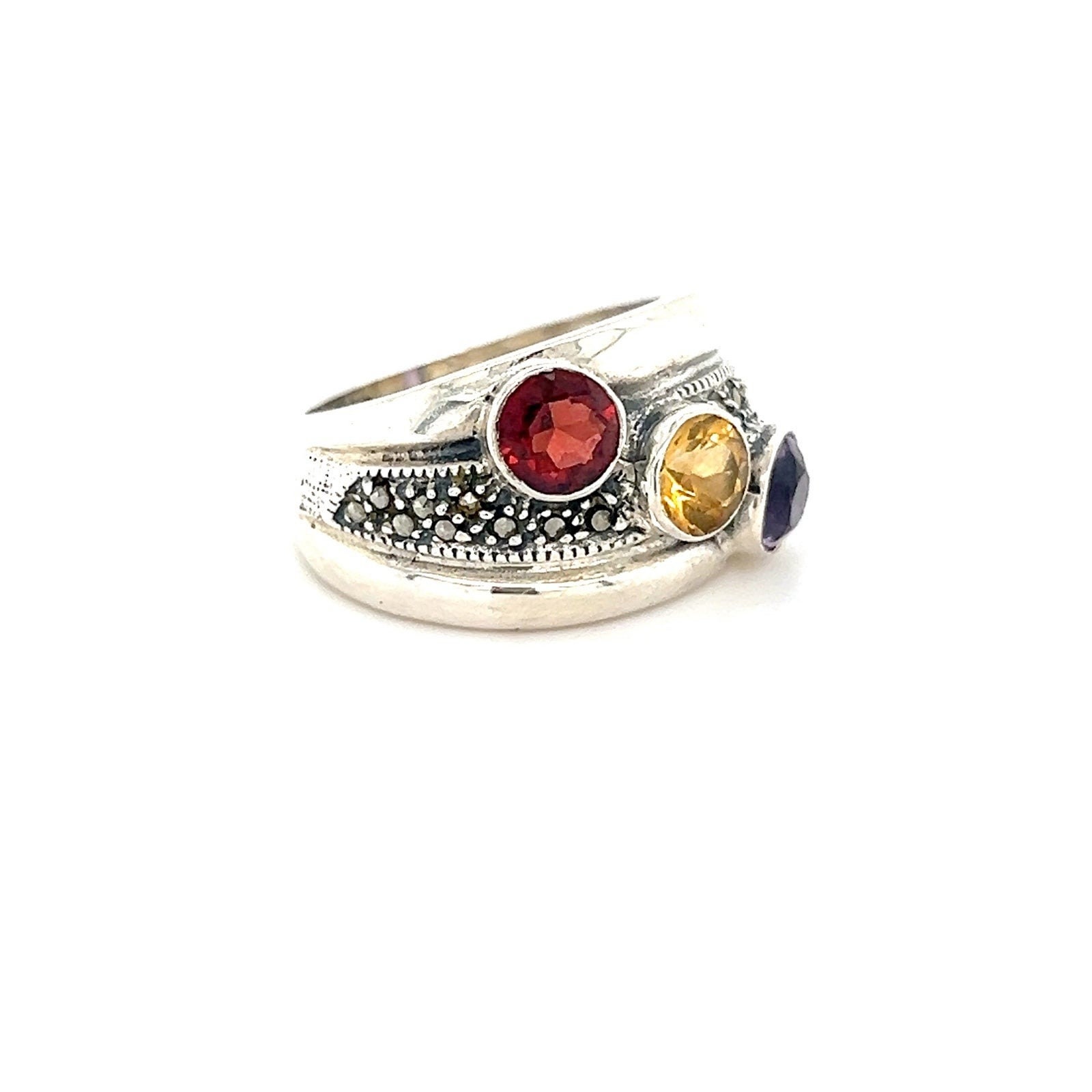 Sterling 3-Gemstones/Marcasites Ring