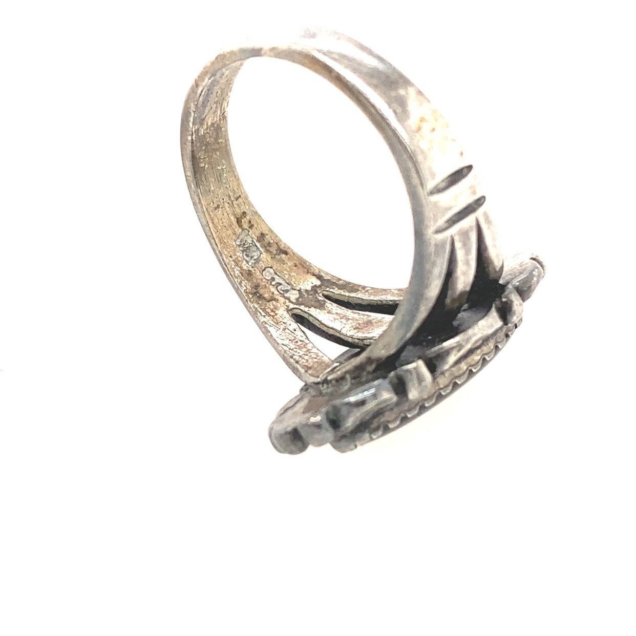 Not sure what the stone is but it’s stamped sterling and Initials that I cannot make out