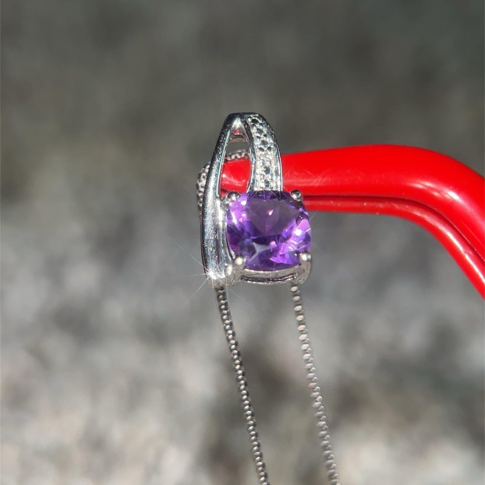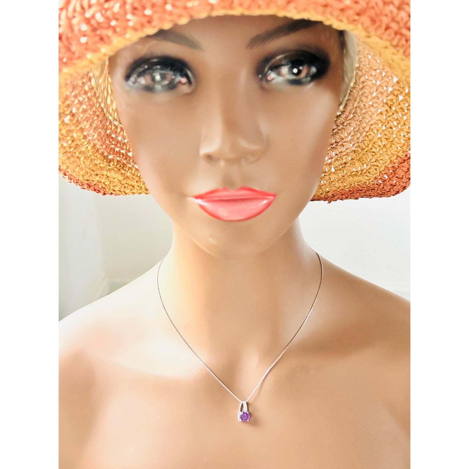 Sterling Silver 925 Amethyst Pendant Necklace .