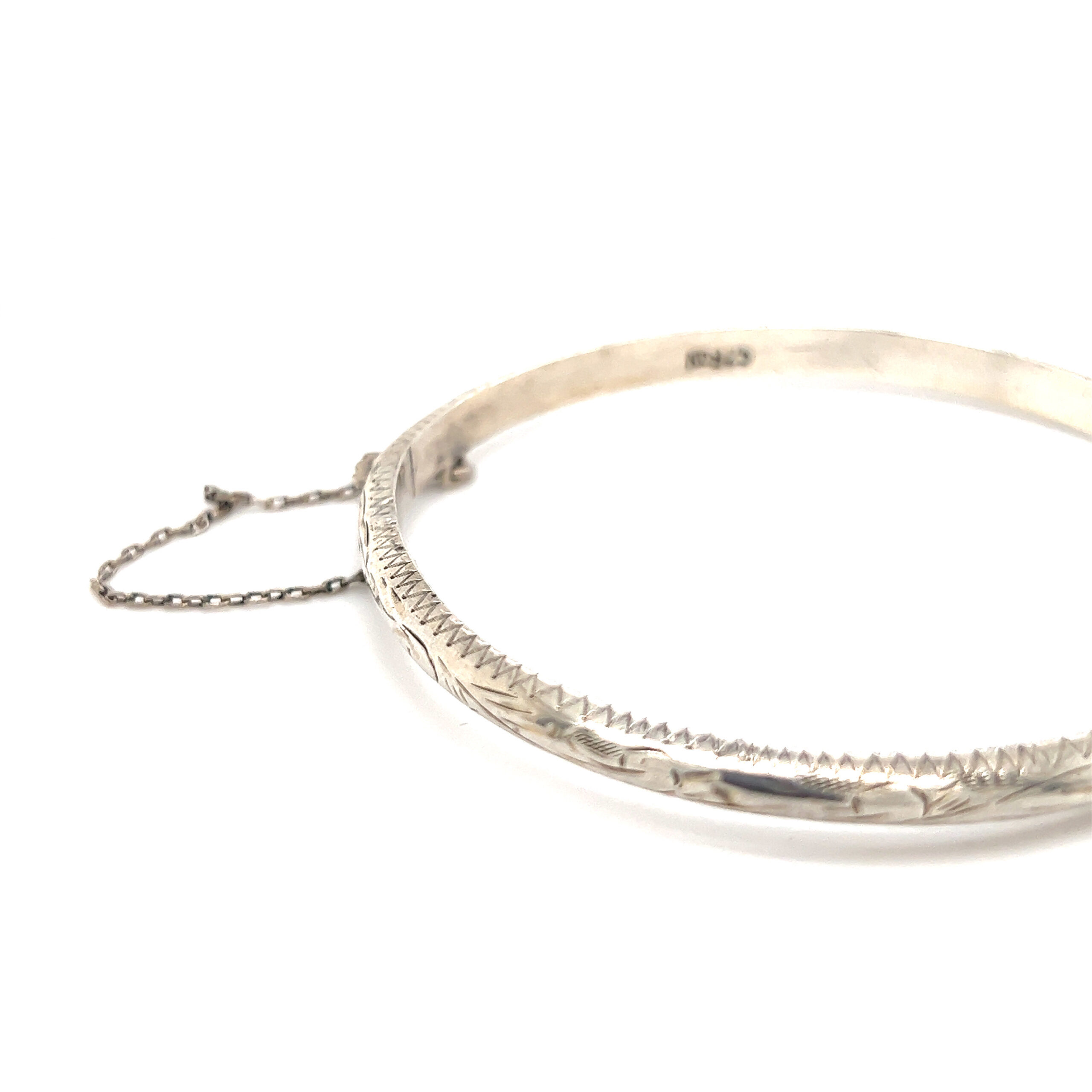 Sterling Silver 925 Bangle with Safety Chain. Vintage piece.