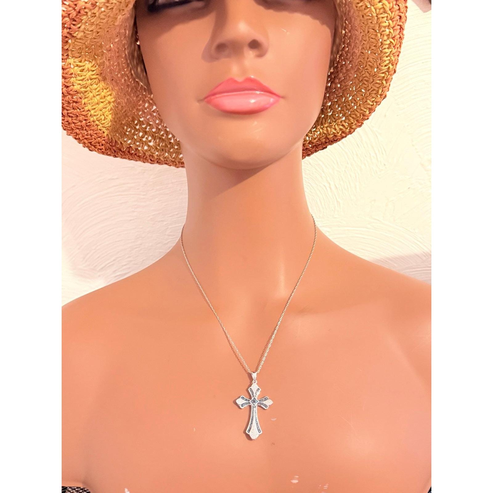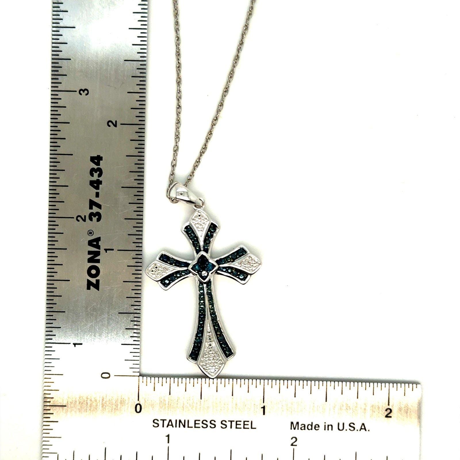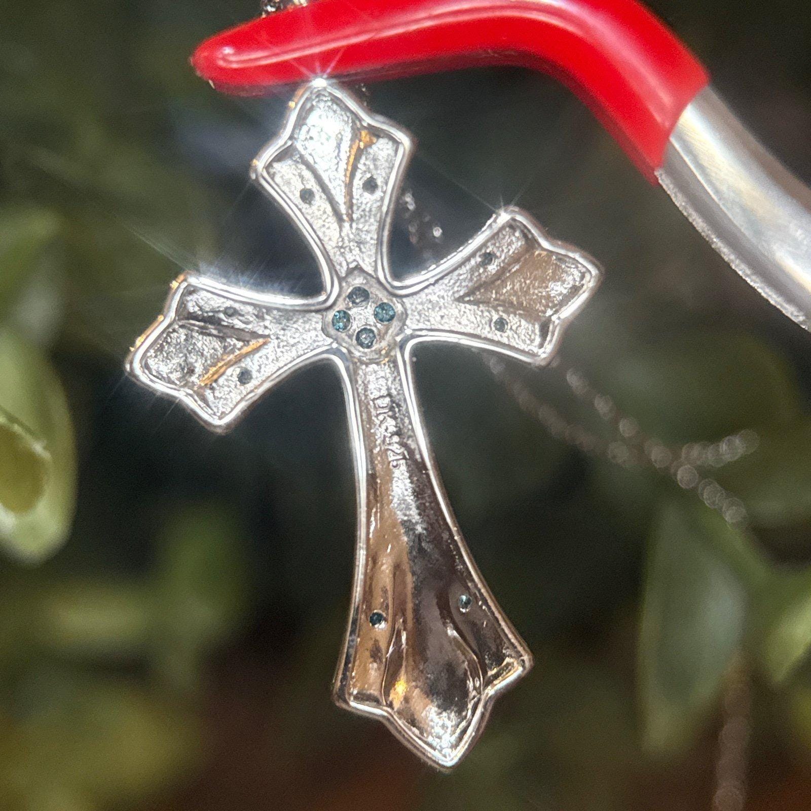 Sterling Silver 925 Real Blue Diamond Cross Necklace .