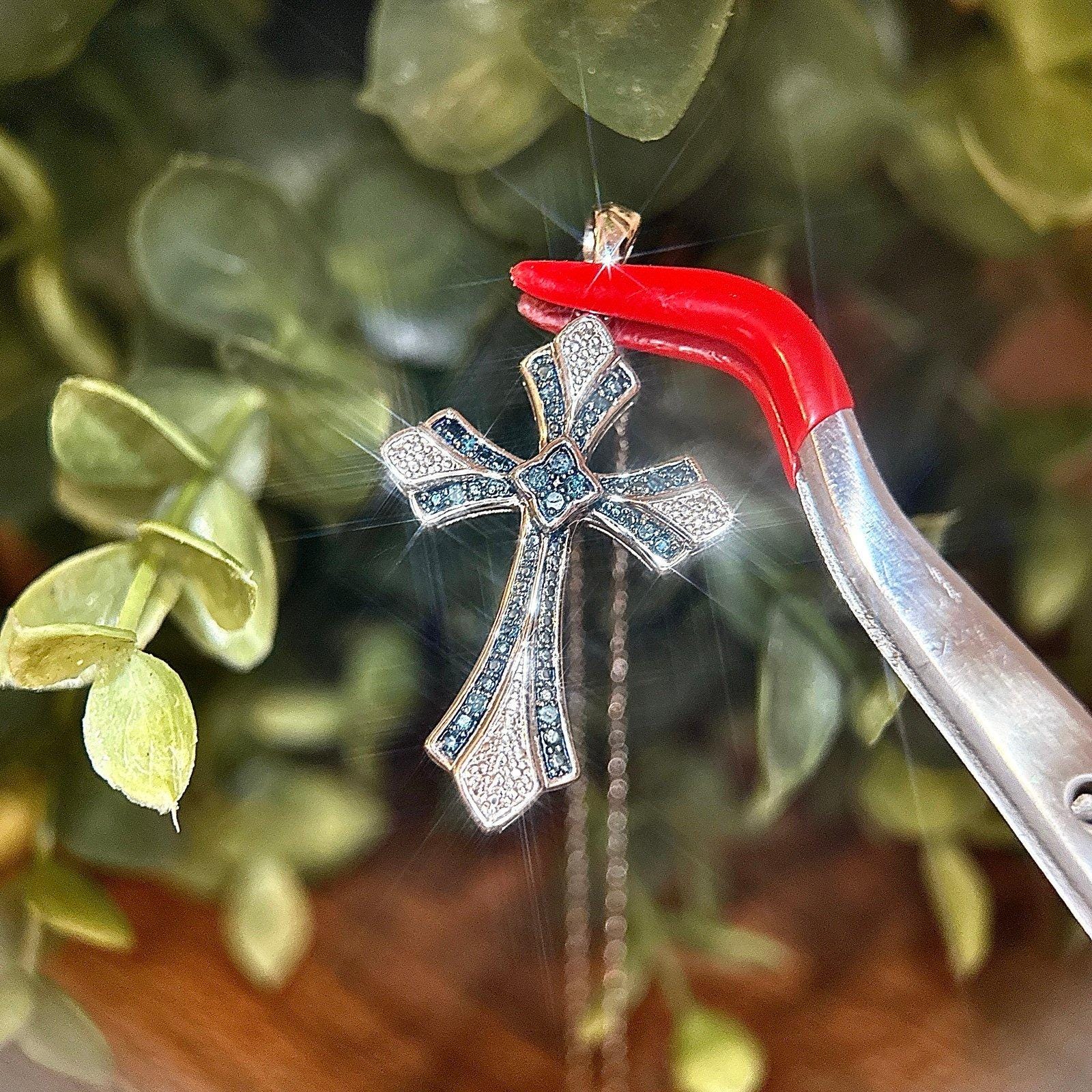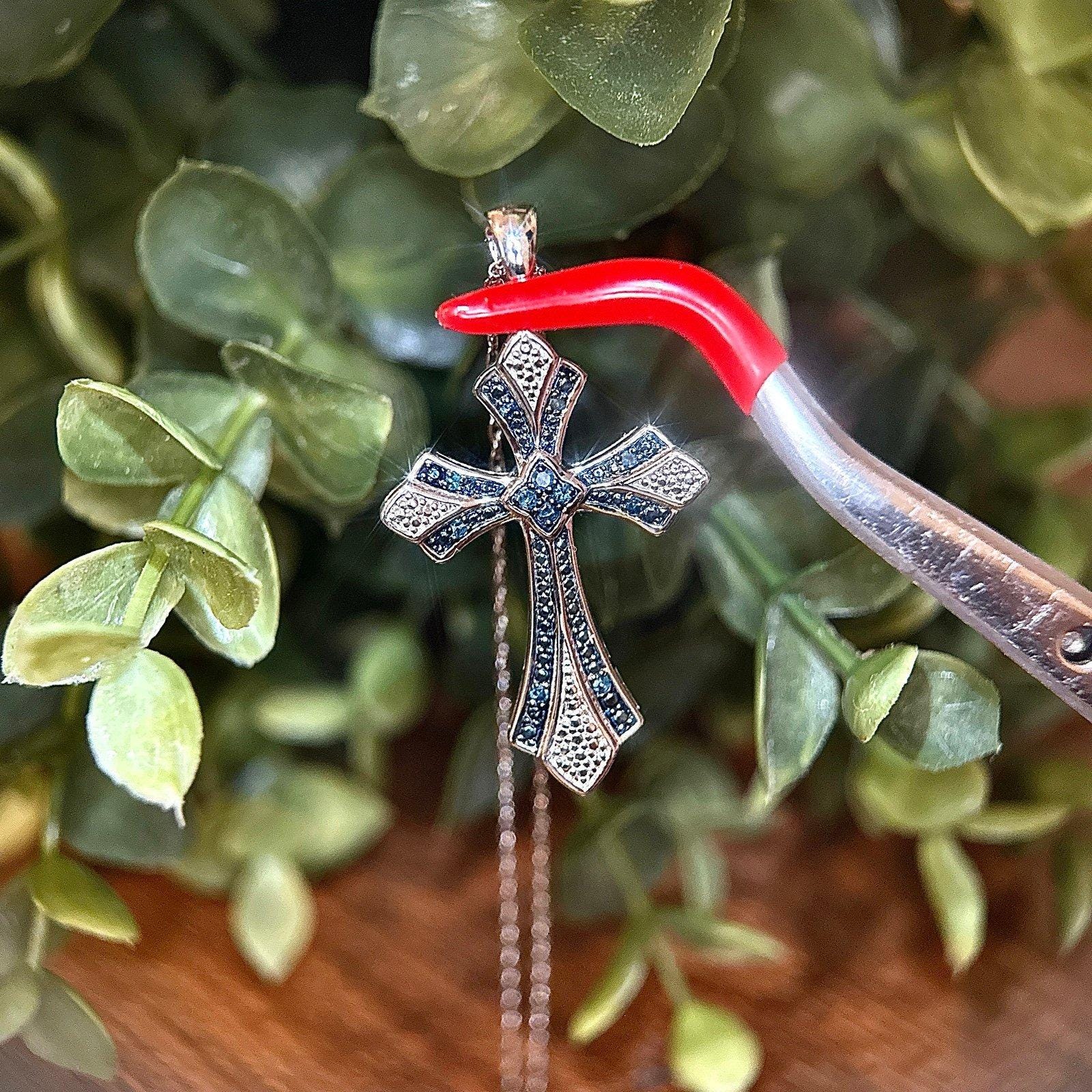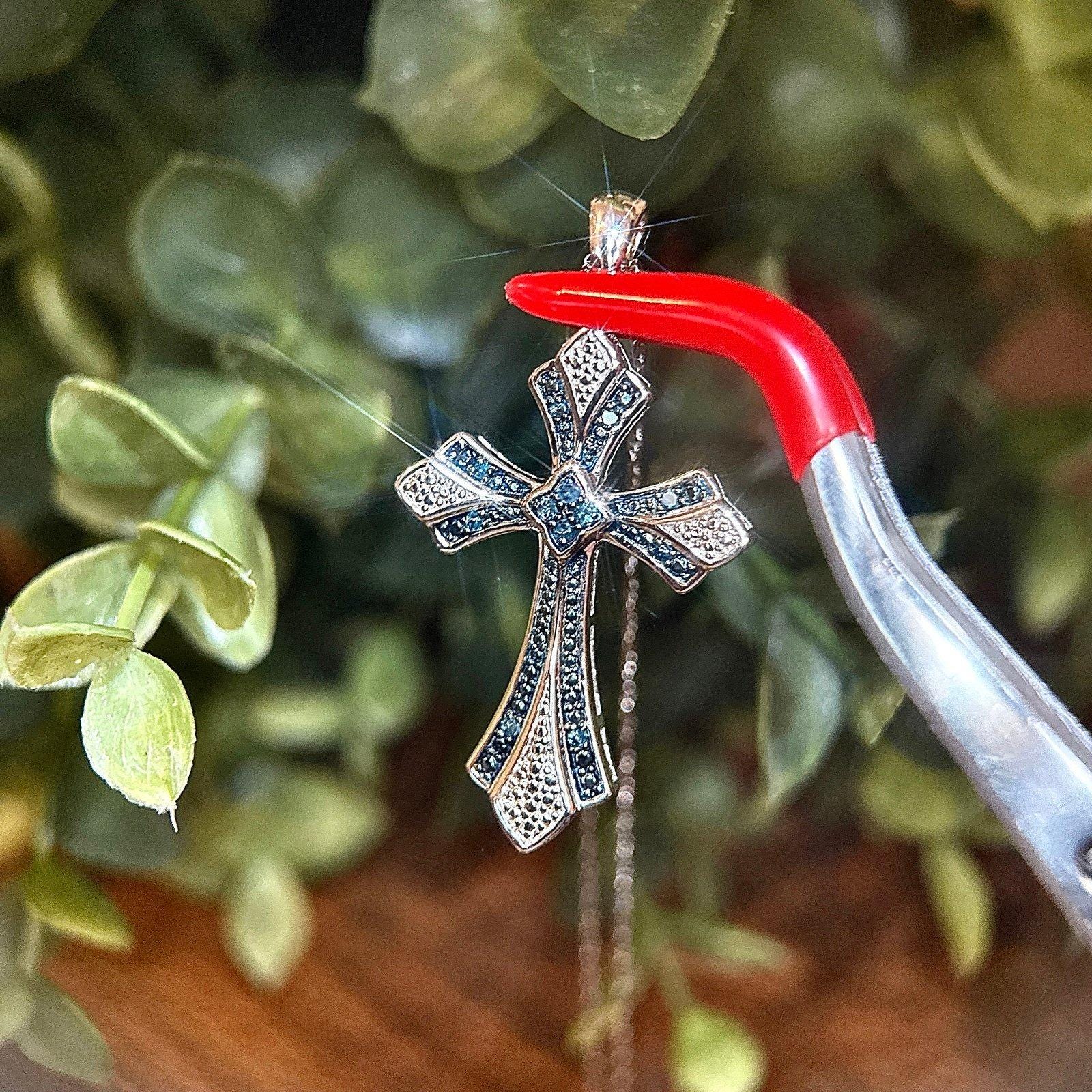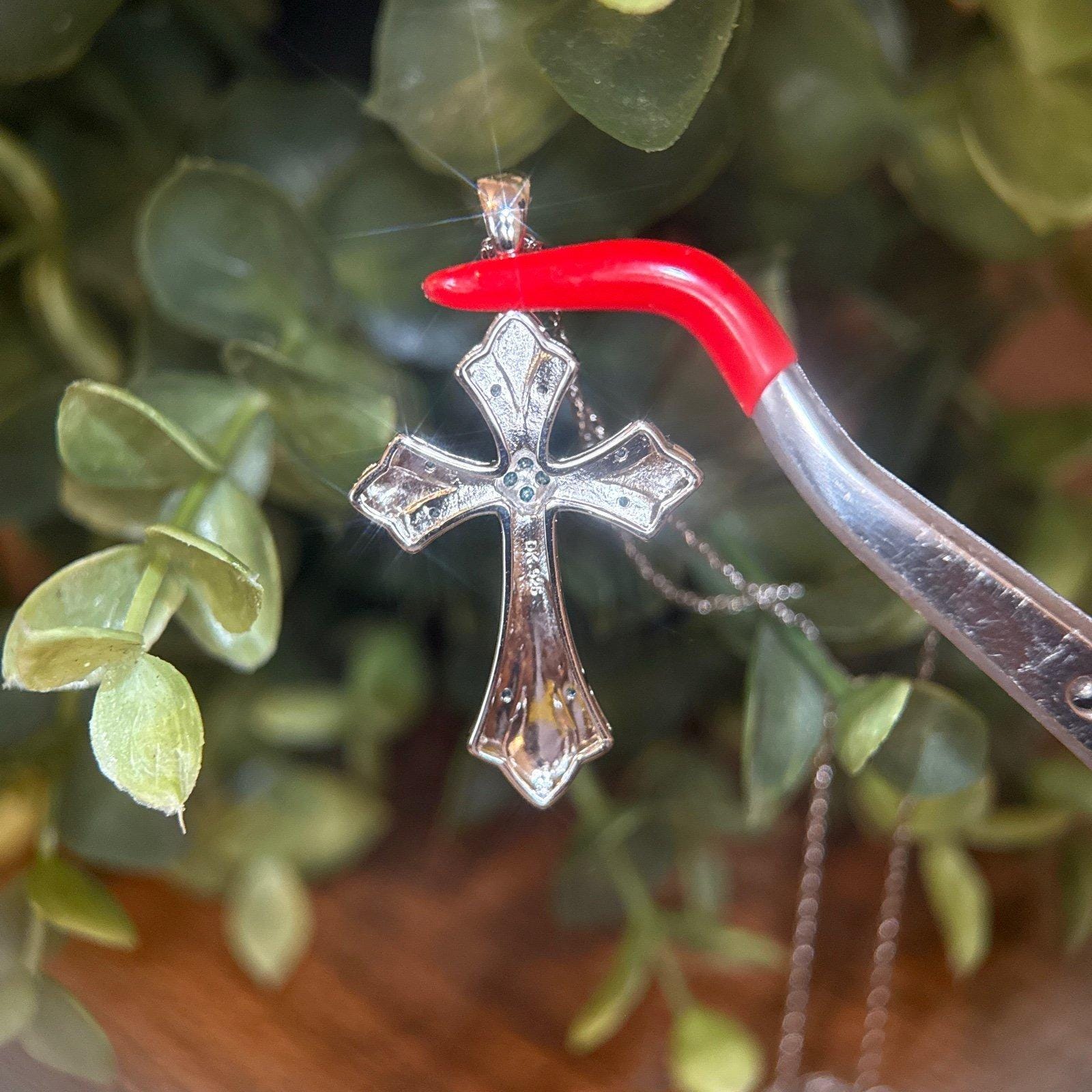 Sterling Silver 925 Real Blue Diamond Cross Necklace .