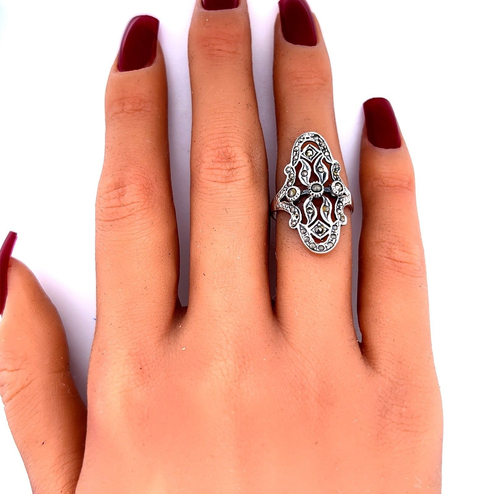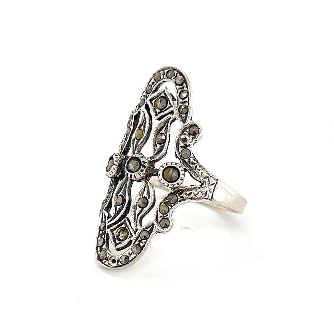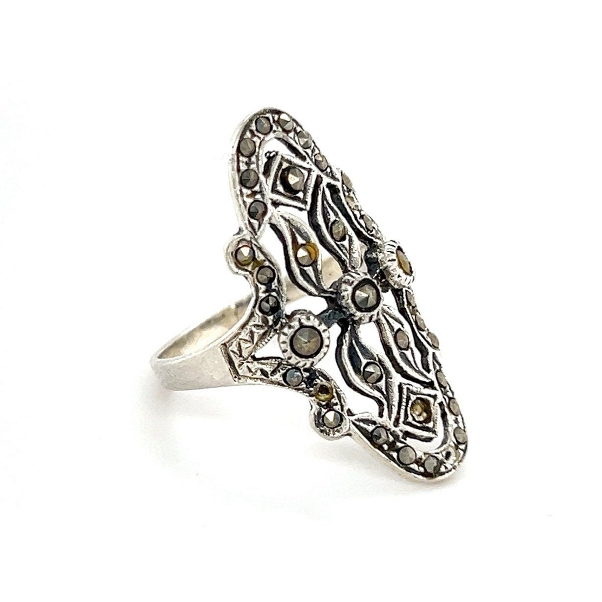 Sterling Silver 925 Oval Shaped Marcasites Ring.